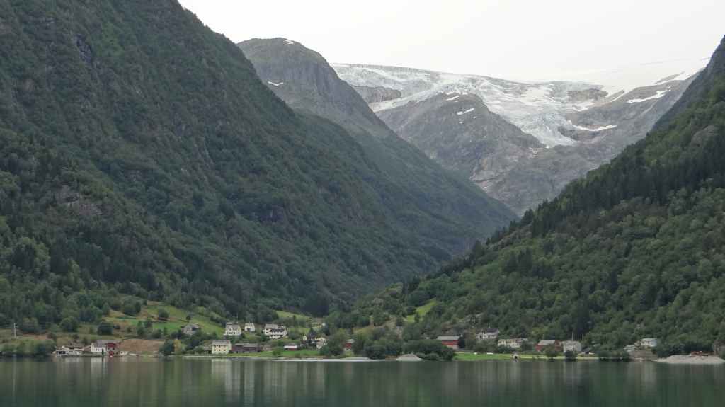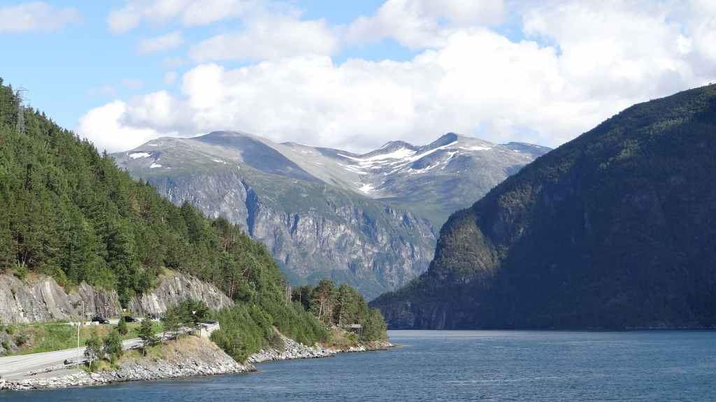 Puis, nous repartons en direction de la montagne et du plus haut massif norvégien. Malgré un plafond nuageux assez bas, on peut quand même admirer quelques glaciers depuis notre lieu de pique-nique. On emprunte ensuite une route de montagne privée et payante avant de redescendre vers Ovre-Ardal. Après un passage de ferry, on traverse une montagne via le plus grand tunnel routier (Laerdal) au monde : 24,5 km. Long mais entrecoupé de 2 grottes colorées… On arrive à Voss sous une petite pluie. Alors on trouve une chambre d’hôte dans les hauteurs de la ville. On en profite pour faire une séance de sauna, bienvenue dans la fraîcheur ambiante !