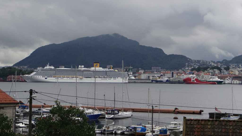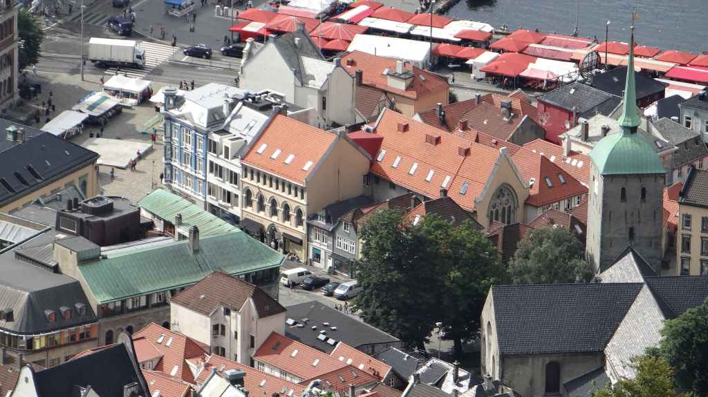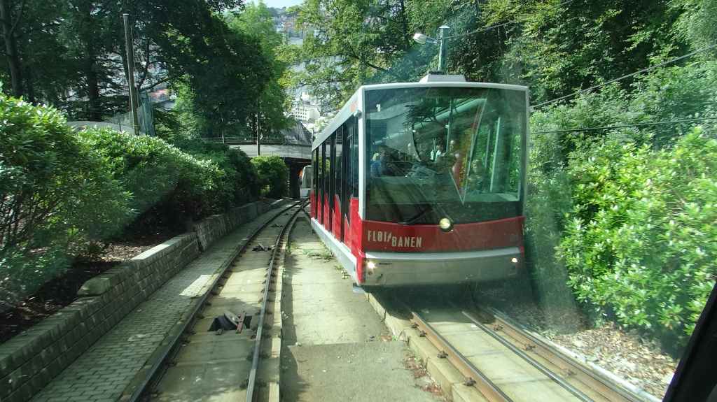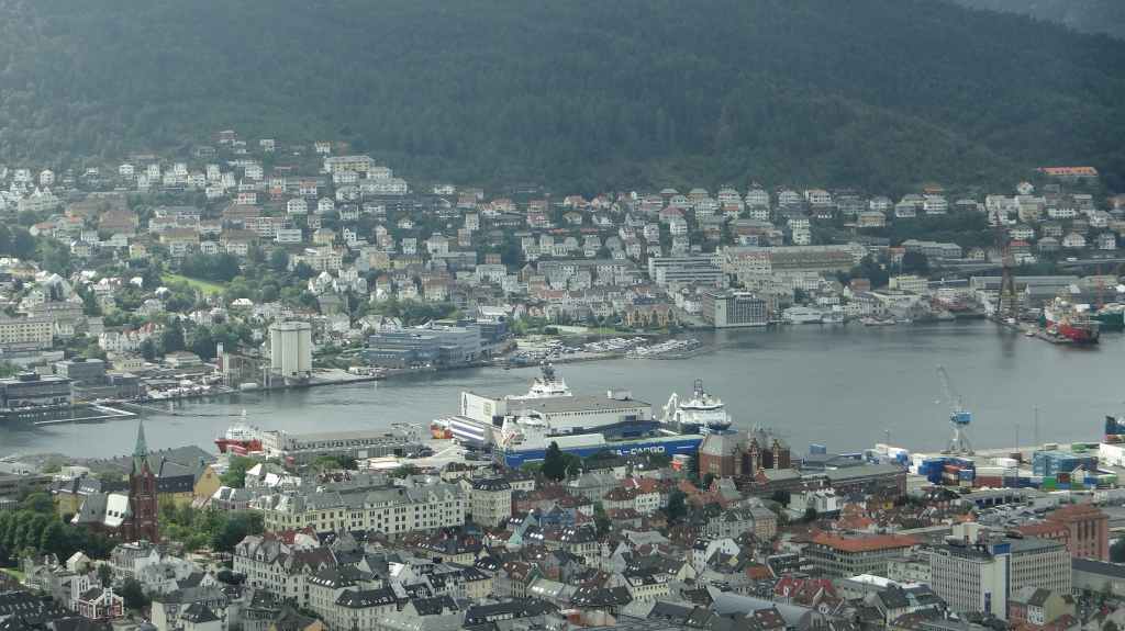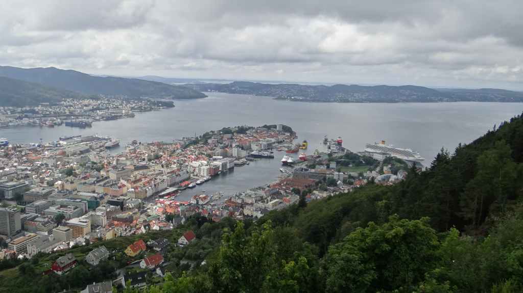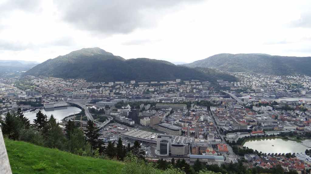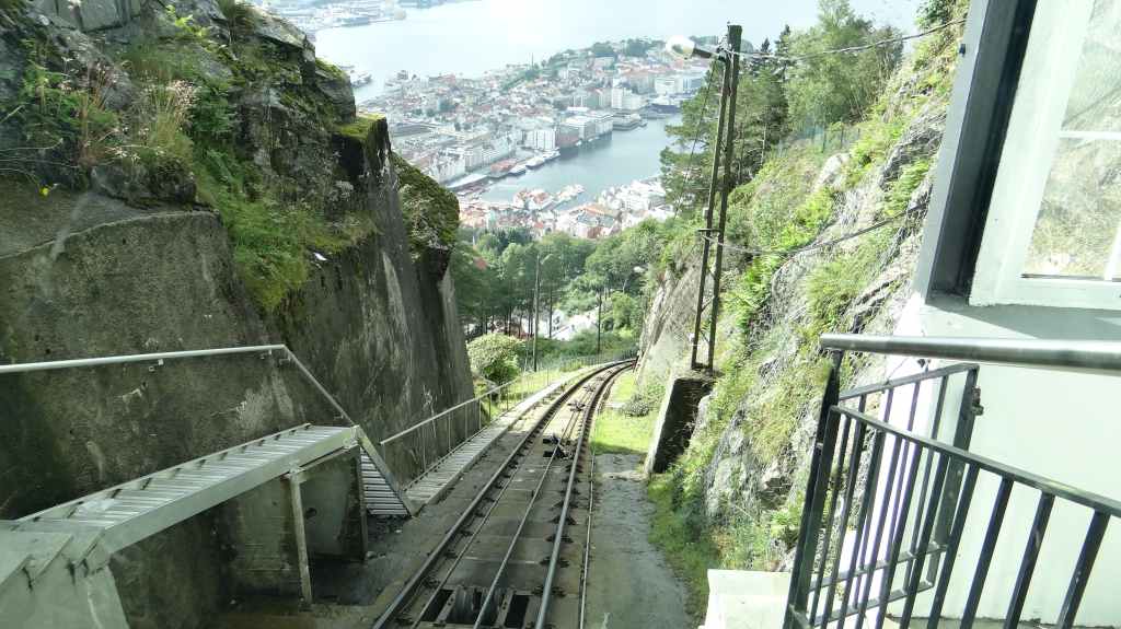 Il y a le funiculaire qui grimpe dans les hauteurs de la ville. On l’emprunte pour admirer la ville : c’est beau malgré le ciel couvert. Cette ville mérite un détour, même si le centre touristique est finalement assez petit. Restent plusieurs quartiers anciens où l’on peut flâner. On reprend la route, plein est, jusqu’à Kvanndal.