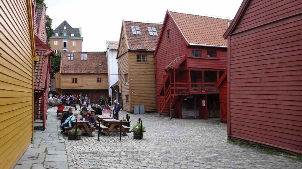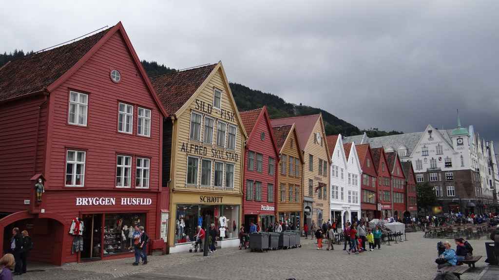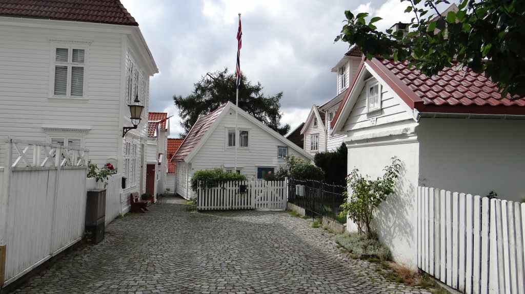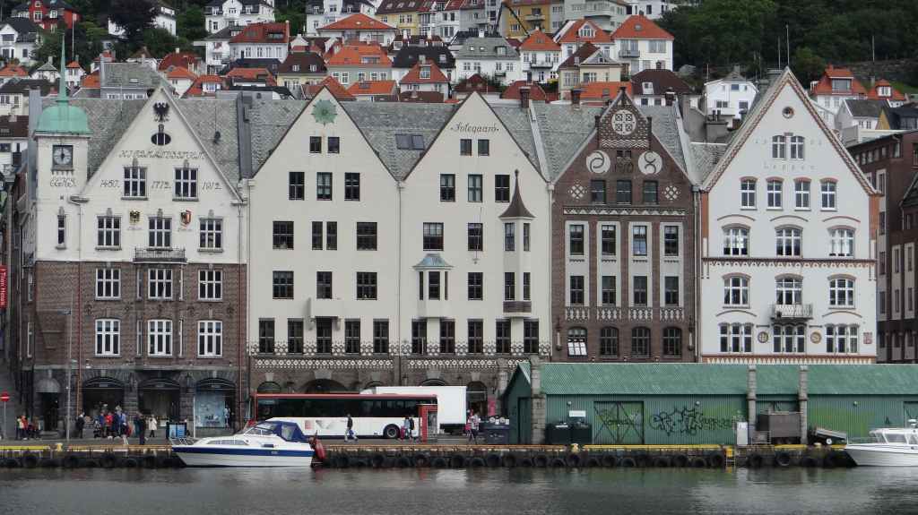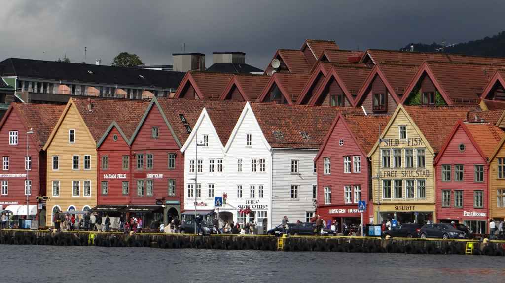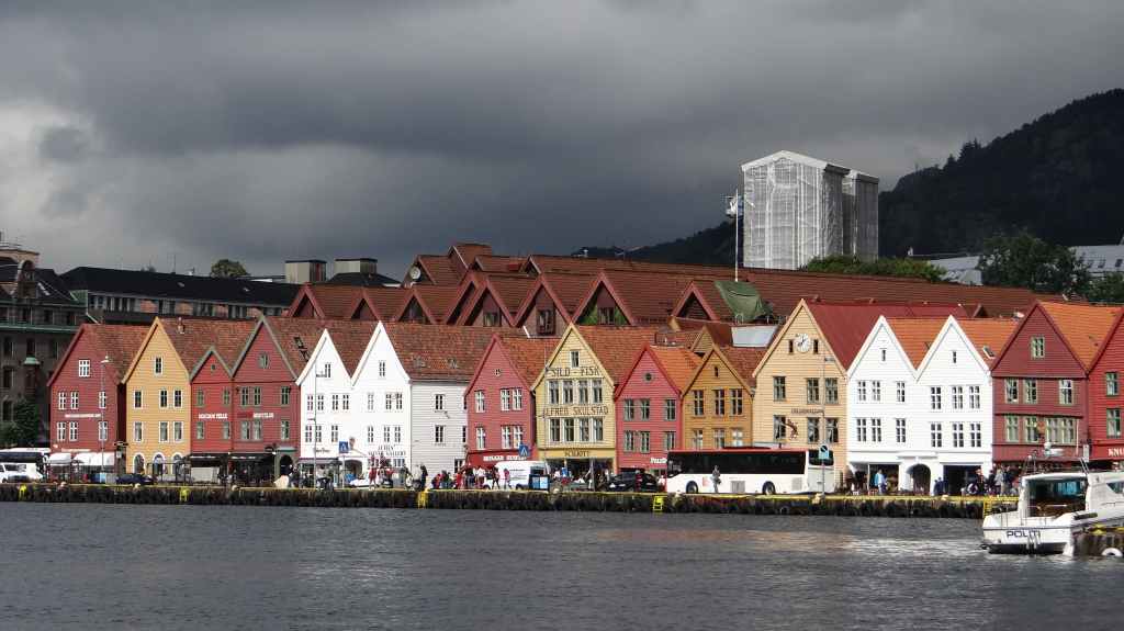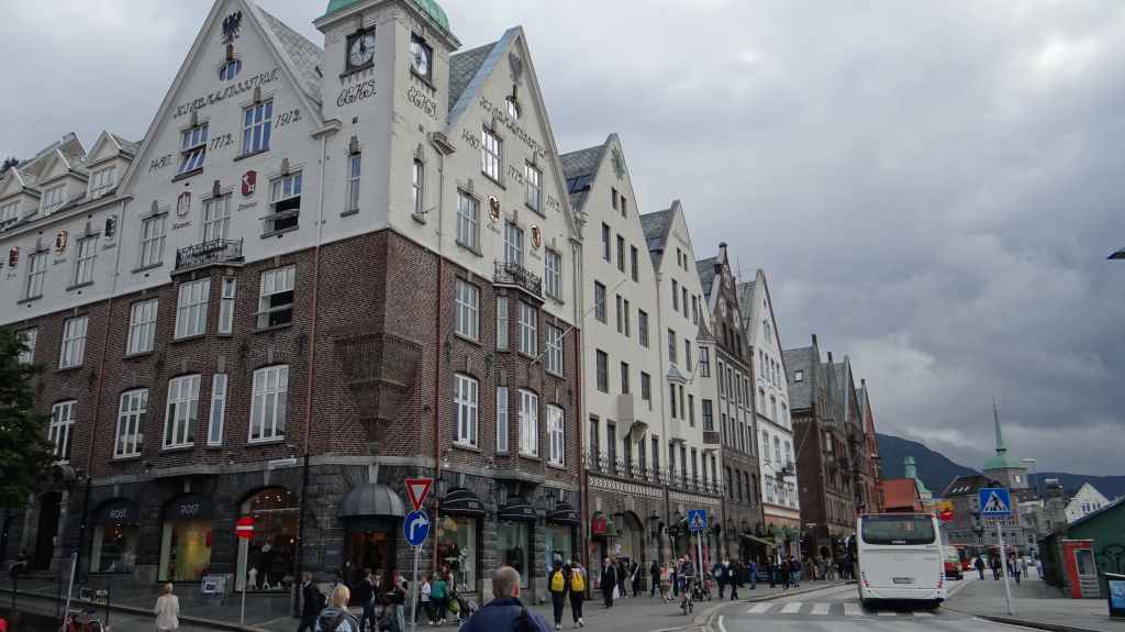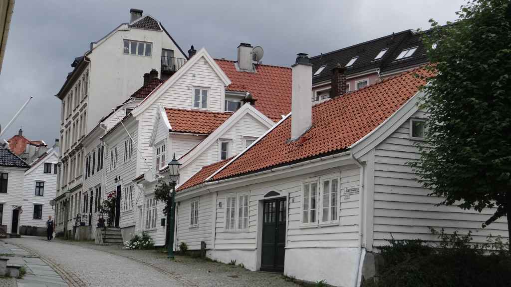 Ce matin, on part en direction de la jolie ville de Bergen. Pour éviter de payer l’entrée de la ville, on laisse la voiture à une heure de marche du centre-ville et du port. On longe un vieux quartier de maisons en bois peintes en blanc avant d’arriver au port.