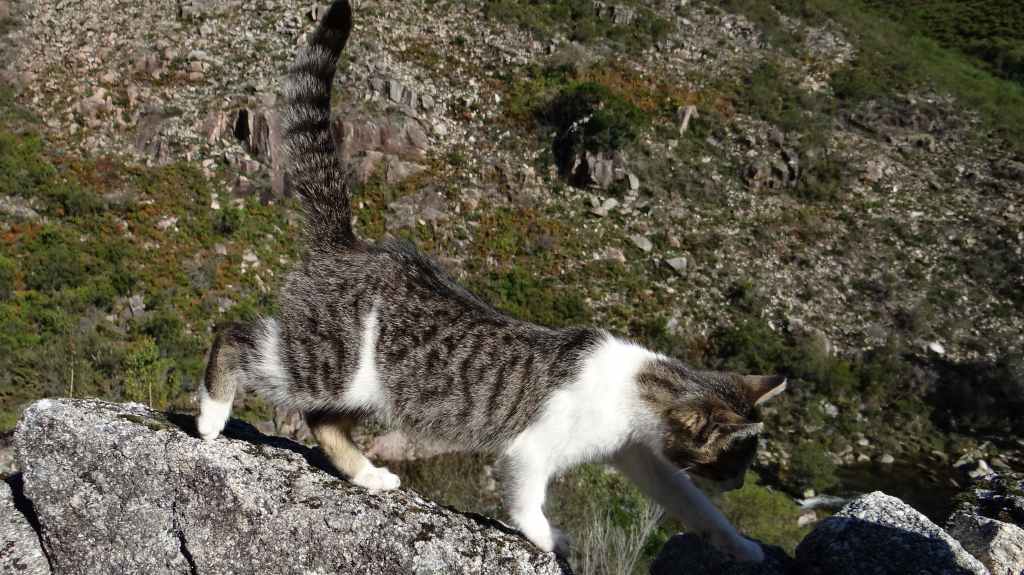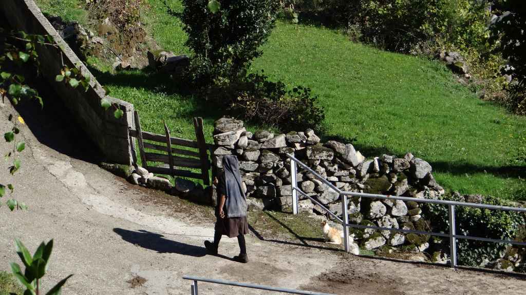 Il y a beaucoup de fougères fanées et rousses, des chevaux et des vaches en libertés, et encore quelques fleurs. On redescend en direction d’une rivière et c’est dans le village qu’un petit chat de 3 mois nous prend en affection. Il nous suivra jusqu’au hameau suivant à 2 km. Là, et las, il nous abandonne… avec ses puces ! Nous aurons mis 4 heures pour faire la boucle qui n’est pas de 7 km comme indiquée mais d’au moins 12 km, voire 15. Bonjour la précision ! On reprend la voiture pour encore 2 heures de route.