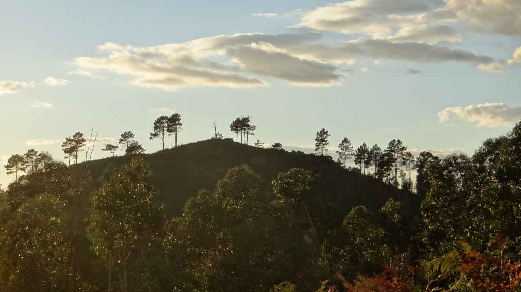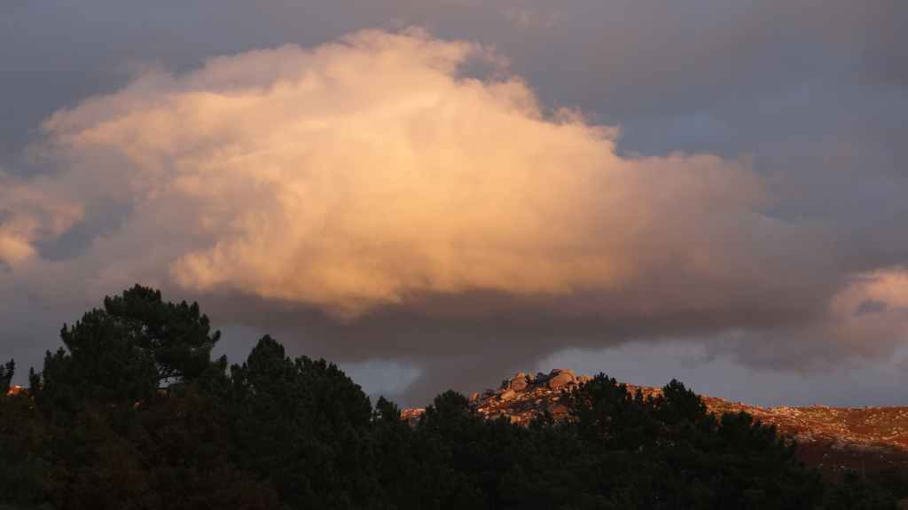 Le ciel est de nouveau couvert. Nous avons prévu d’aller marcher non loin de notre village, pour voir un village englouti par les eaux d’un lac artificiel de Vilarinho, mais normalement visible à l’automne. Arrivés près du lac, aucun panneau n’indique le réputé village ruiné. Alors après maintes hésitations, nous posons la voiture près d’un chemin qui descend vers le lac. Le lac est plus haut que prévu et malgré nos recherches, on ne voit rien à l’horizon. C’est à nos pieds que ça devient intéressant ! De magnifiques châtaignes et ensuite de très belles chanterelles, suffisamment nombreuses pour en faire un plat… que l’on cuisine le midi même avec escalope de porc à la crème : un délice ! L’après-midi est consacré au Scrabble en écoutant la pluie tomber sur le toit…