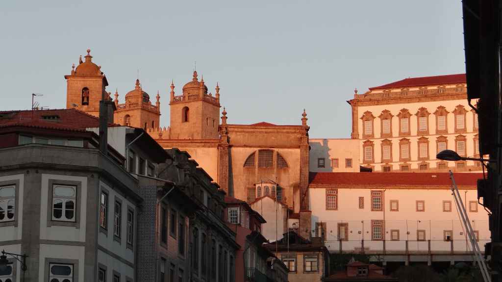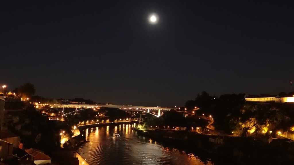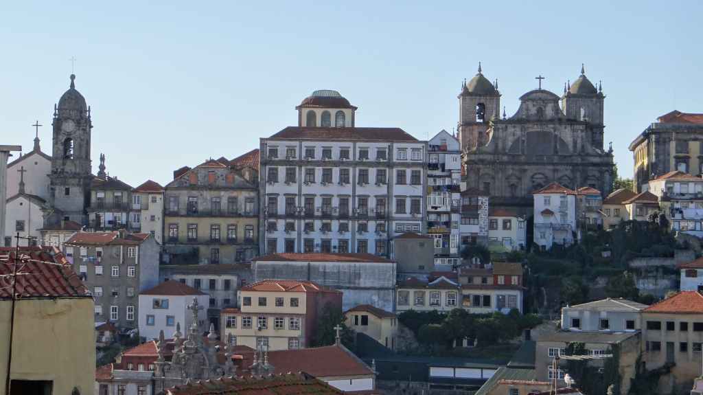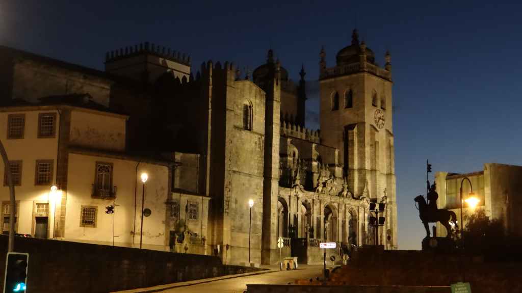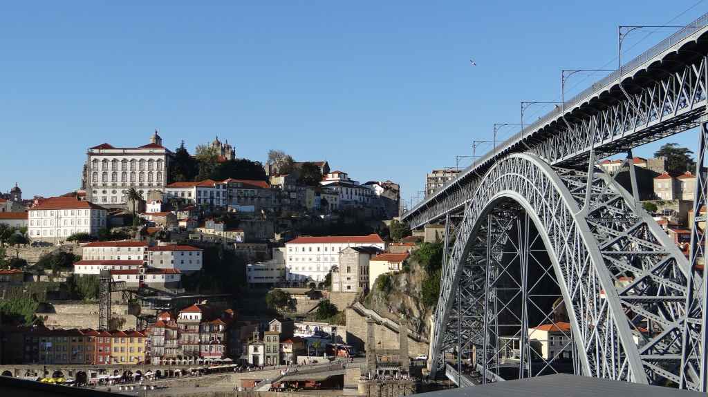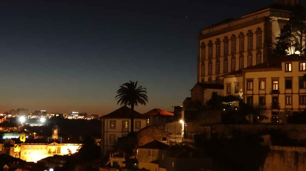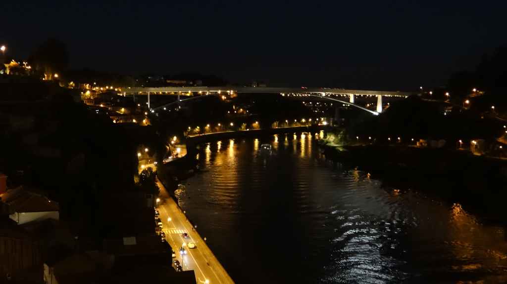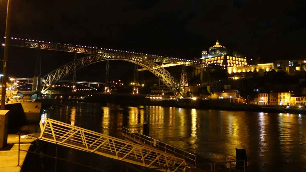 On arrive au centre-ville vers 15h00, on en ressortira vers 22h00 : églises et cathédrale, fortifications, quai près du fleuve Douro, vieilles maisons, pont routier et ferroviaire façon Eiffel, chais de Porto, coucher de soleil sur la ville, Porto by night et bon repas « chez Lapin ».