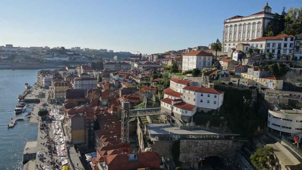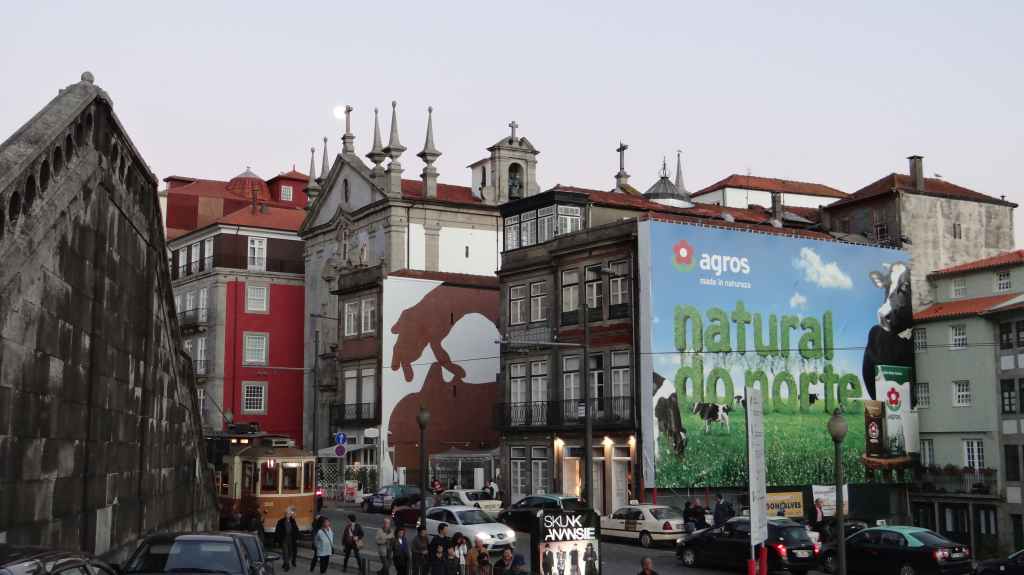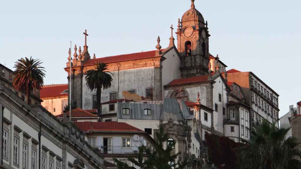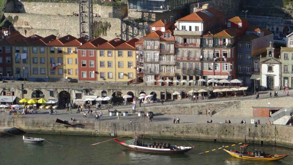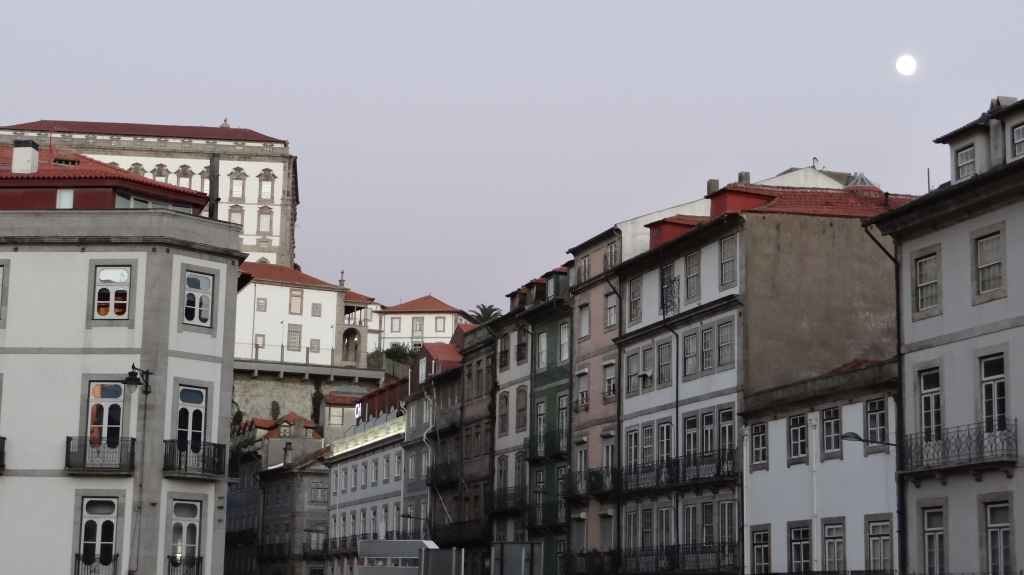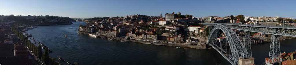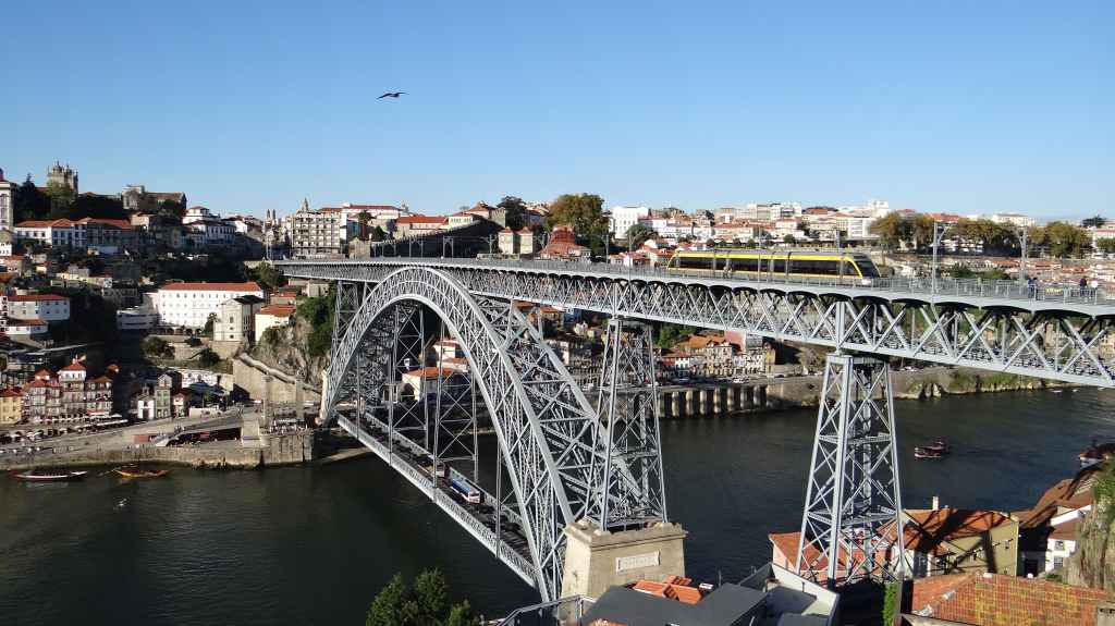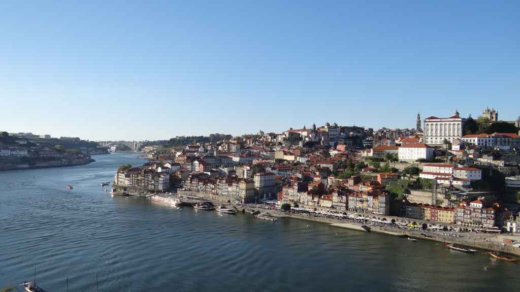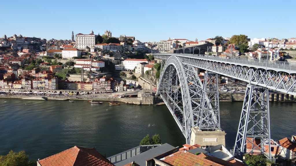 On arrive au centre-ville vers 15h00, on en ressortira vers 22h00 : églises et cathédrale, fortifications, quai près du fleuve Douro, vieilles maisons, pont routier et ferroviaire façon Eiffel, chais de Porto, coucher de soleil sur la ville, Porto by night et bon repas « chez Lapin ».