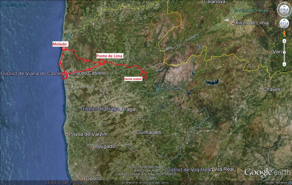 Ce matin, nous partons en direction de l’Atlantique. Nous passons d’abord par Ponte de Lima. C’est une jolie petite ville très ancienne avec son long pont, en partie romain.