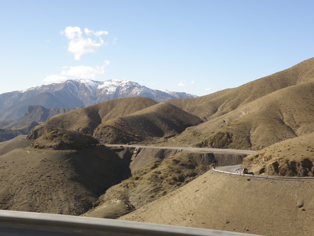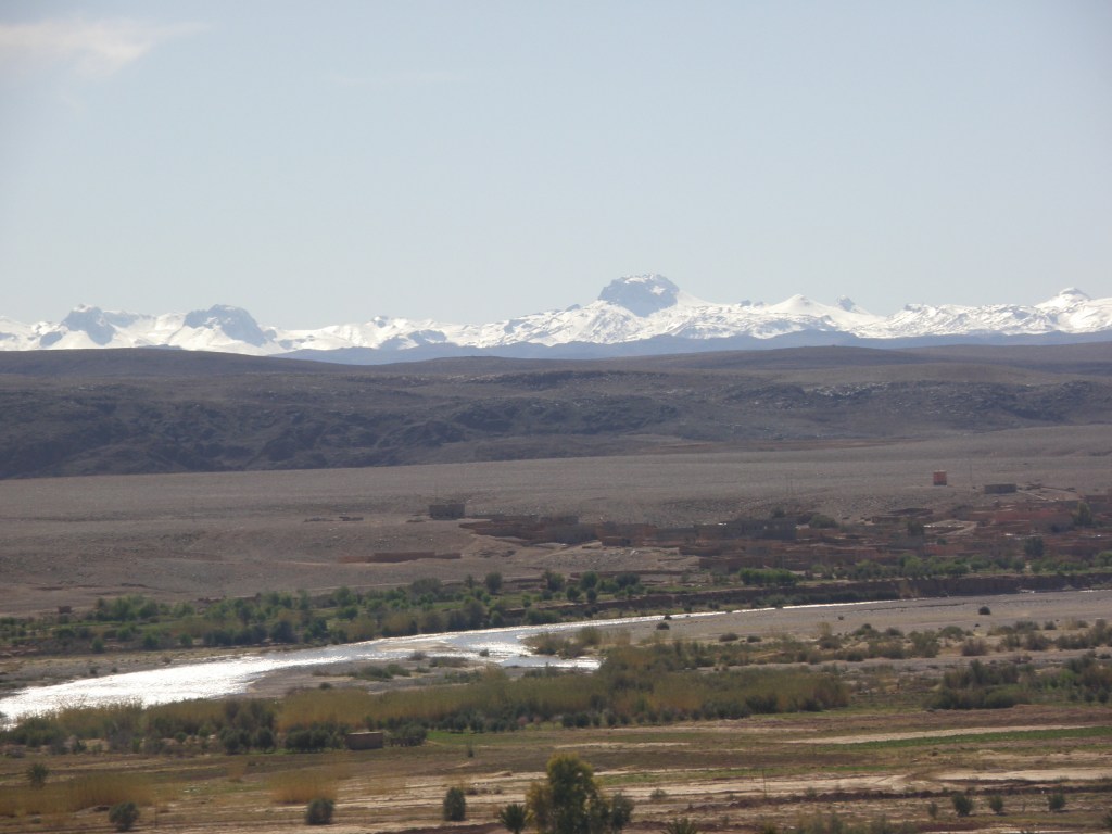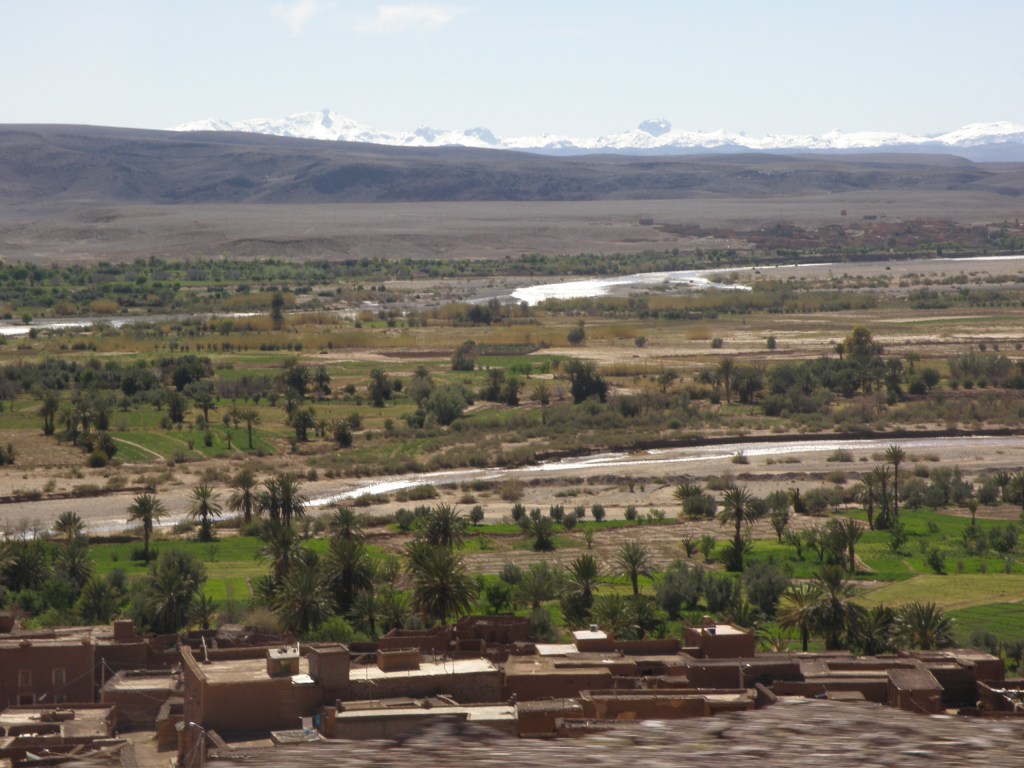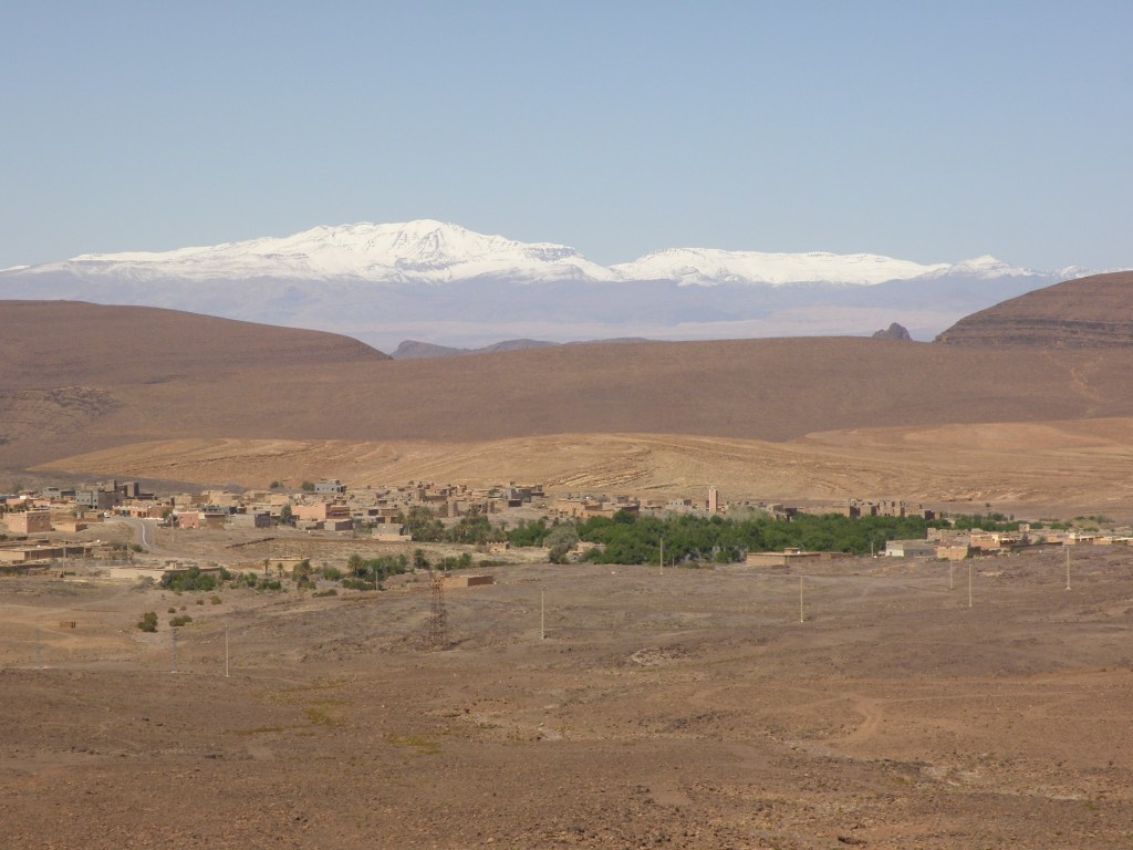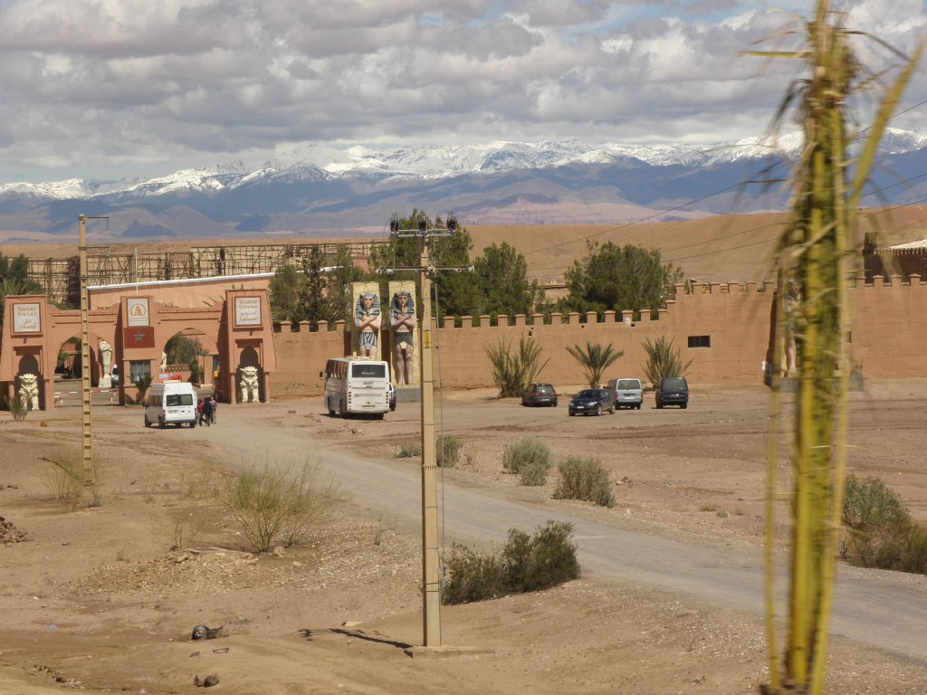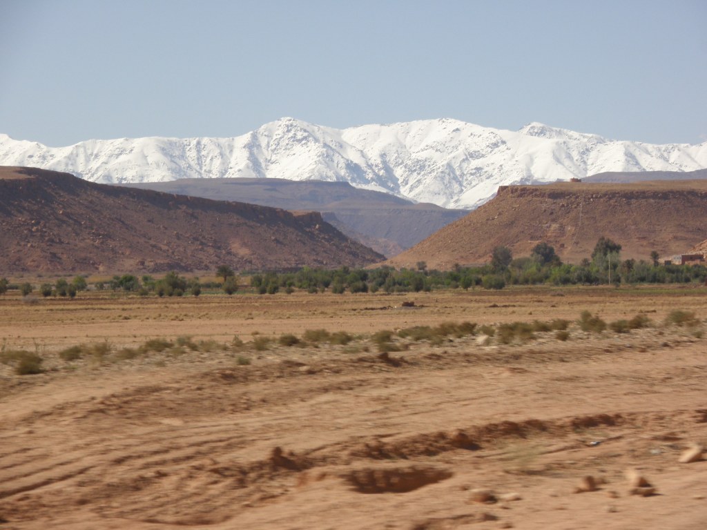 Petit-déjeuner et départ à 8h00 dans 2 minibus pour rejoindre M’Hamid à 450 km de Marrakech. La route est longue mais nous traversons de magnifiques paysages. Nous grimpons le col Tiscka dans l’Atlas à 2260 m d’altitude. La neige est encore présente. De l’autre côté, c’est déjà l’approche du désert à Ouarzazate puis Zagora.