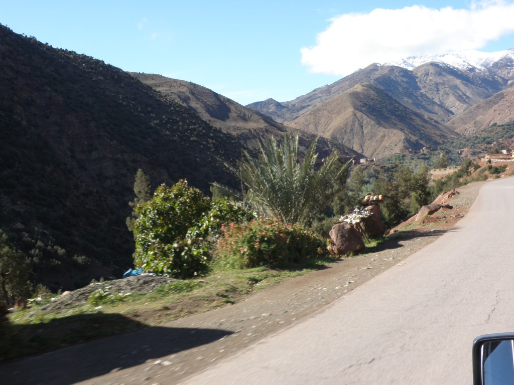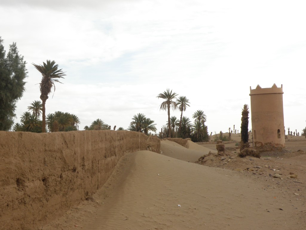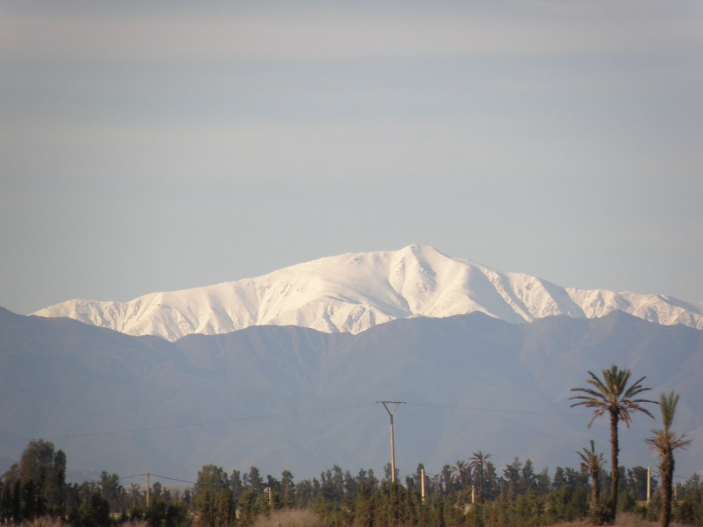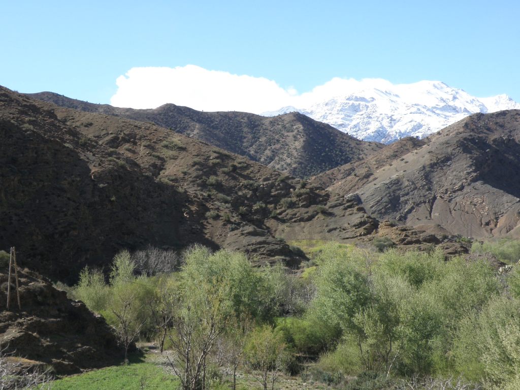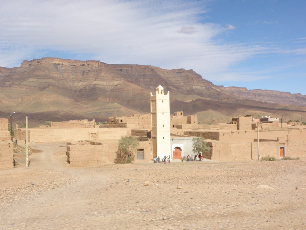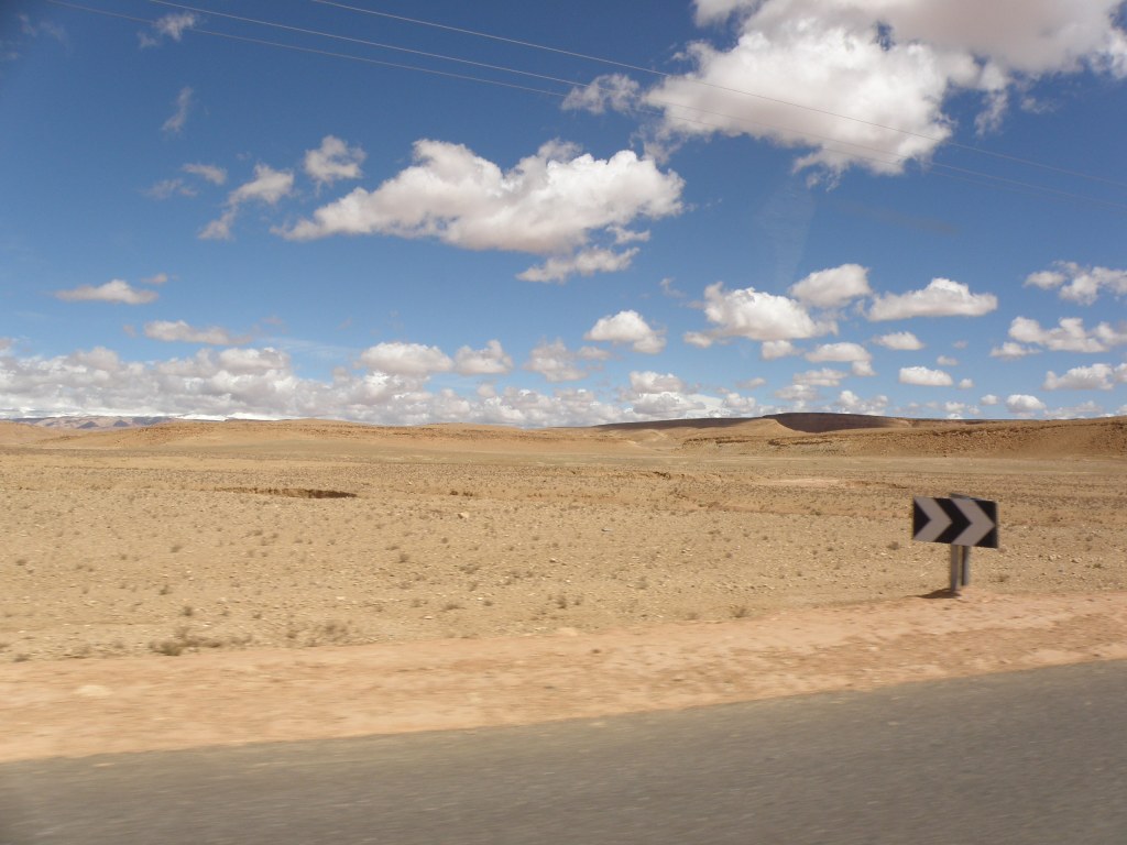 Petit-déjeuner et départ à 8h00 dans 2 minibus pour rejoindre M’Hamid à 450 km de Marrakech. La route est longue mais nous traversons de magnifiques paysages. Nous grimpons le col Tiscka dans l’Atlas à 2260 m d’altitude. La neige est encore présente. De l’autre côté, c’est déjà l’approche du désert à Ouarzazate puis Zagora.