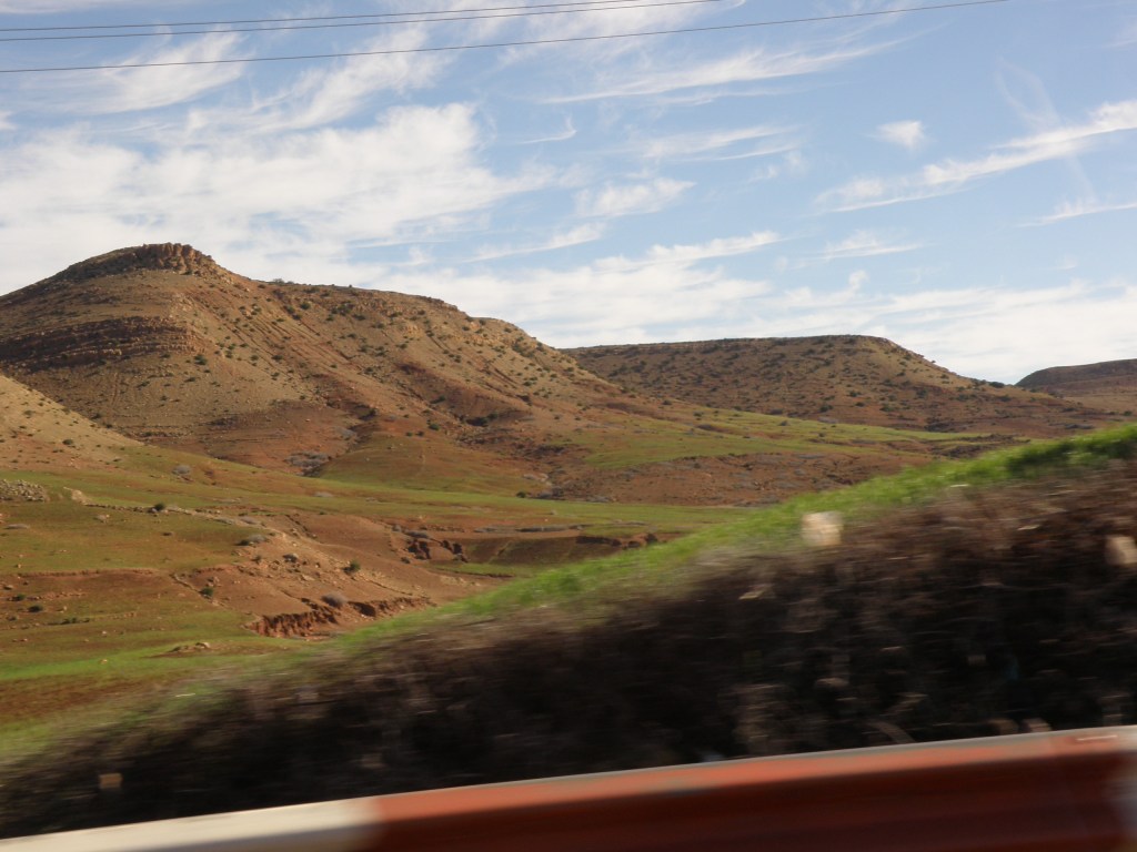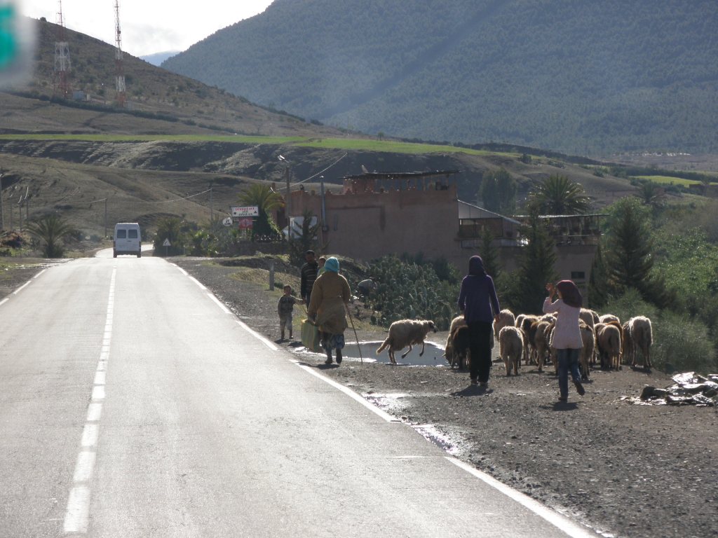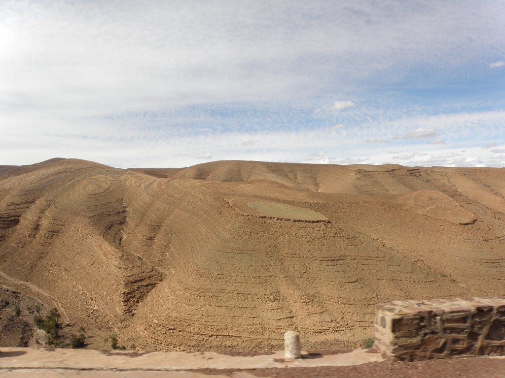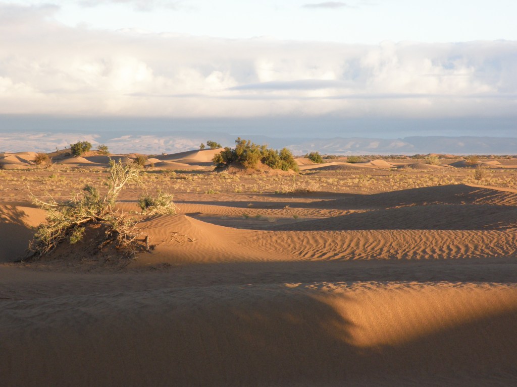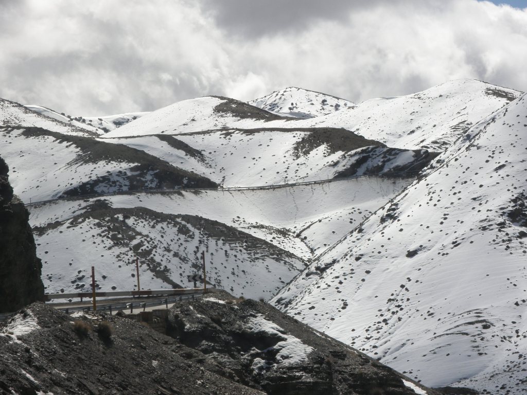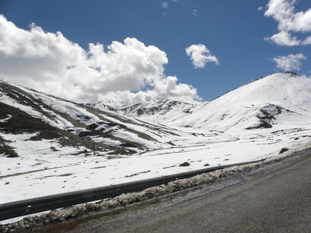 Petit-déjeuner et départ à 8h00 dans 2 minibus pour rejoindre M’Hamid à 450 km de Marrakech. La route est longue mais nous traversons de magnifiques paysages. Nous grimpons le col Tiscka dans l’Atlas à 2260 m d’altitude. La neige est encore présente. De l’autre côté, c’est déjà l’approche du désert à Ouarzazate puis Zagora.