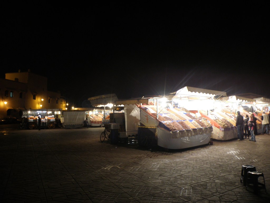 En soirée on rejoint donc notre hôtel du premier soir. Repas typique sur la place Djemaa el Fna.