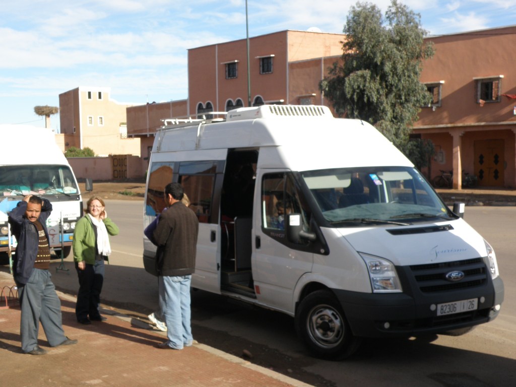 Séquence émotion avec les adieux aux chameliers et cuisiniers avant de rejoindre en une 1/2 heure les minibus pour le fastidieux retour. Après des arrêts à Zagora et Ouarzazate, nous arrivons enfin à Marrakech après 8h30 de route parfois épique. Il faut bien avouer que la conduite des marocains est parfois délicate : lignes blanches et virages sans visibilité ne les gênent pas pour doubler et c’est parfois limite !