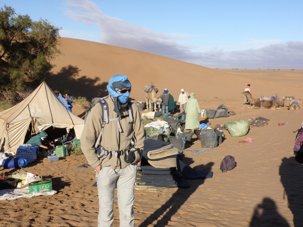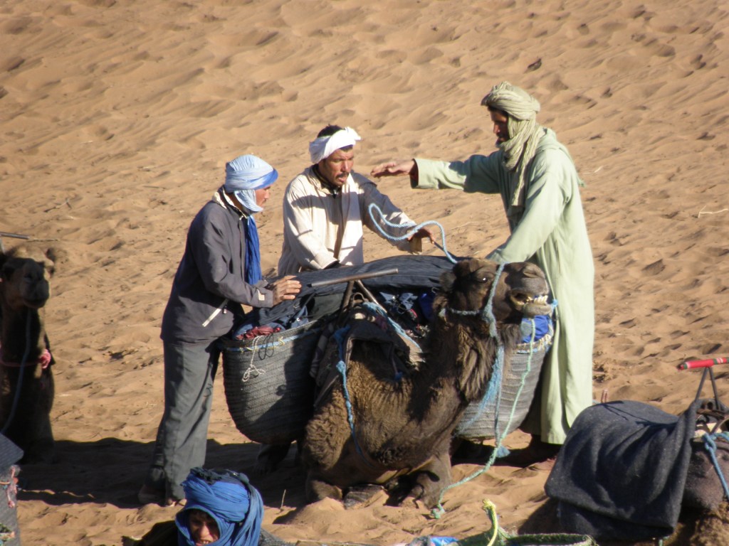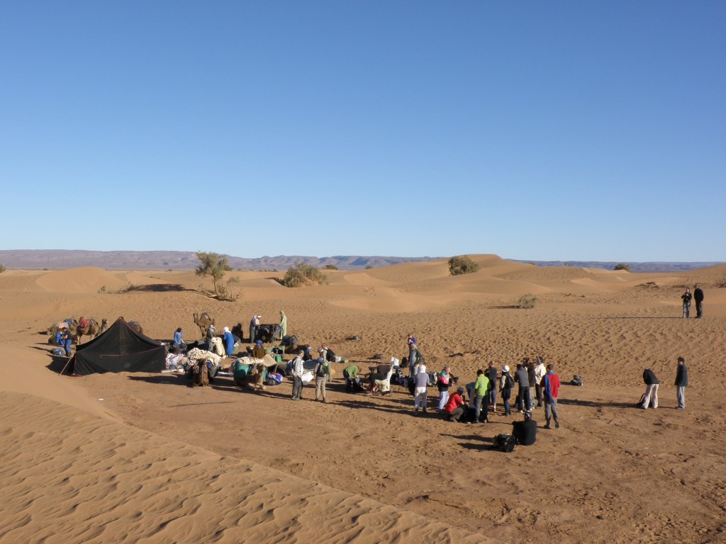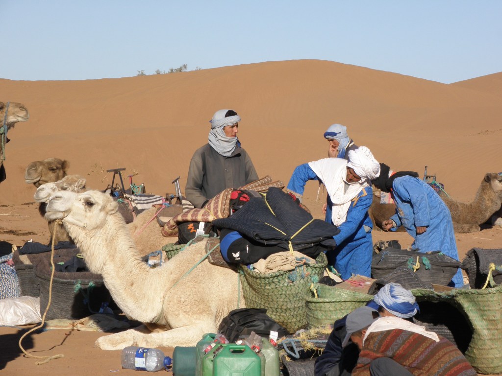 N’ayant pas l’habitude des voyages organisés à 100 %, j’appréhendais un peu. Mais le professionnalisme de nos guides et de leurs équipes de chameliers et de cuisiniers m’a converti. Saïd et ses cuisiniers sont capables de faire des exploits pour nous nous garantir des repas équilibrés et délicieux. Toute l’équipe était aux petits soins pour nous, touristes français… Saïd, encore lui, vaut le déplacement à lui tout seul par sa gentillesse, son dévouement et son humour incessant. Quant à Hussein qui à été notre guide pendant les 4 jours du trek, nous le remercions de sa bonne humeur et de son professionnalisme. Nous remercions également Lahcen qui a magnifiquement organisé et géré ce séjour et nous ne manquerons pas de faire appel à ses services lors d’un prochain voyage au Maroc. Simplement peut-être pourrait-il renouveler quelques tentes… ?