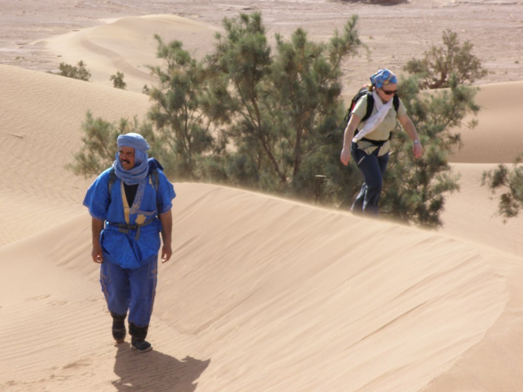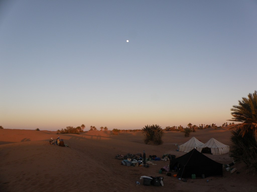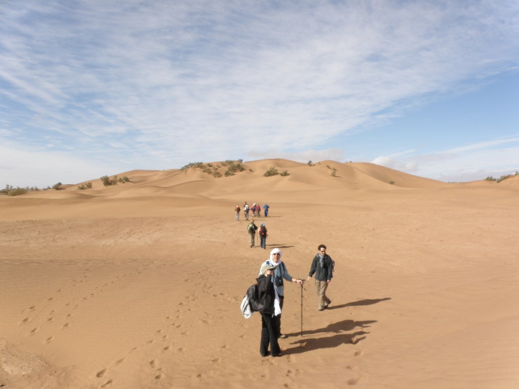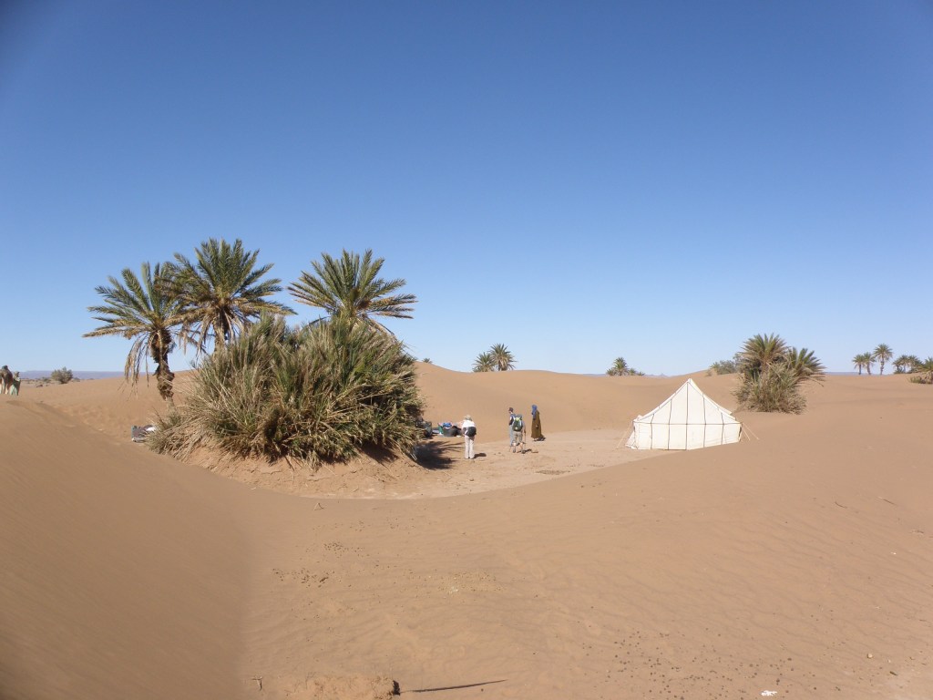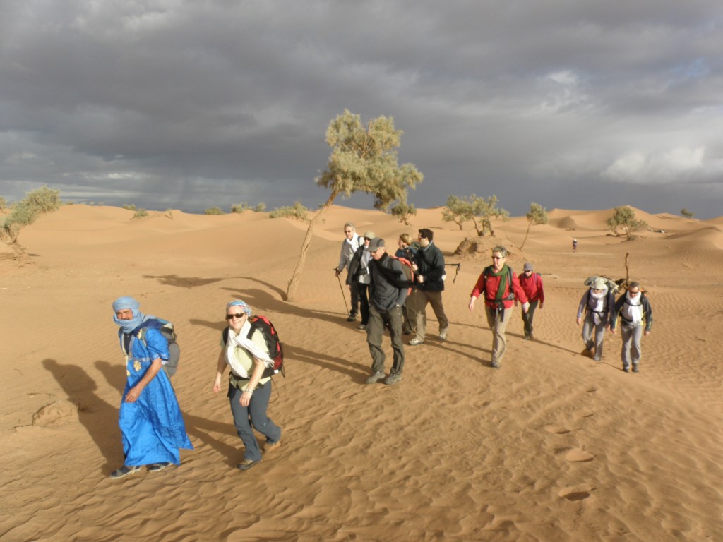 N’ayant pas l’habitude des voyages organisés à 100 %, j’appréhendais un peu. Mais le professionnalisme de nos guides et de leurs équipes de chameliers et de cuisiniers m’a converti. Saïd et ses cuisiniers sont capables de faire des exploits pour nous nous garantir des repas équilibrés et délicieux. Toute l’équipe était aux petits soins pour nous, touristes français… Saïd, encore lui, vaut le déplacement à lui tout seul par sa gentillesse, son dévouement et son humour incessant. Quant à Hussein qui à été notre guide pendant les 4 jours du trek, nous le remercions de sa bonne humeur et de son professionnalisme. Nous remercions également Lahcen qui a magnifiquement organisé et géré ce séjour et nous ne manquerons pas de faire appel à ses services lors d’un prochain voyage au Maroc. Simplement peut-être pourrait-il renouveler quelques tentes… ?