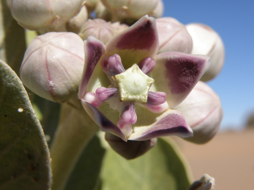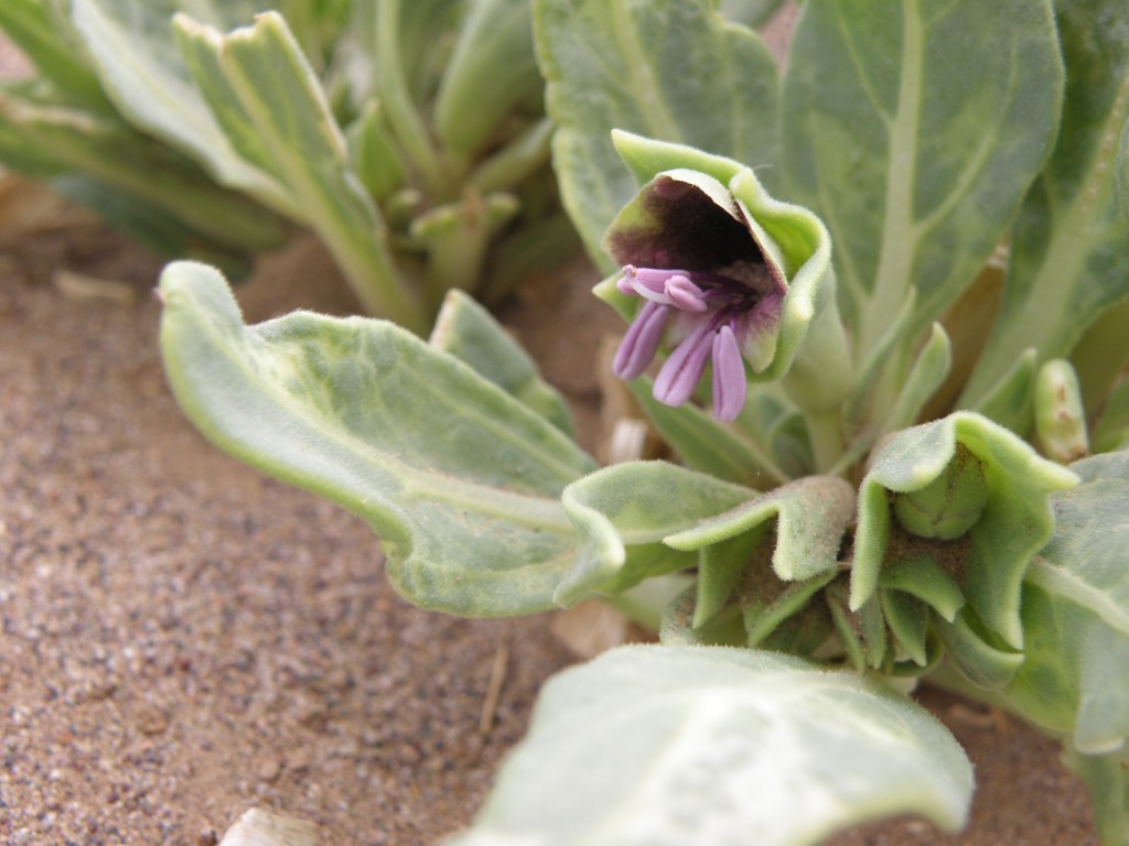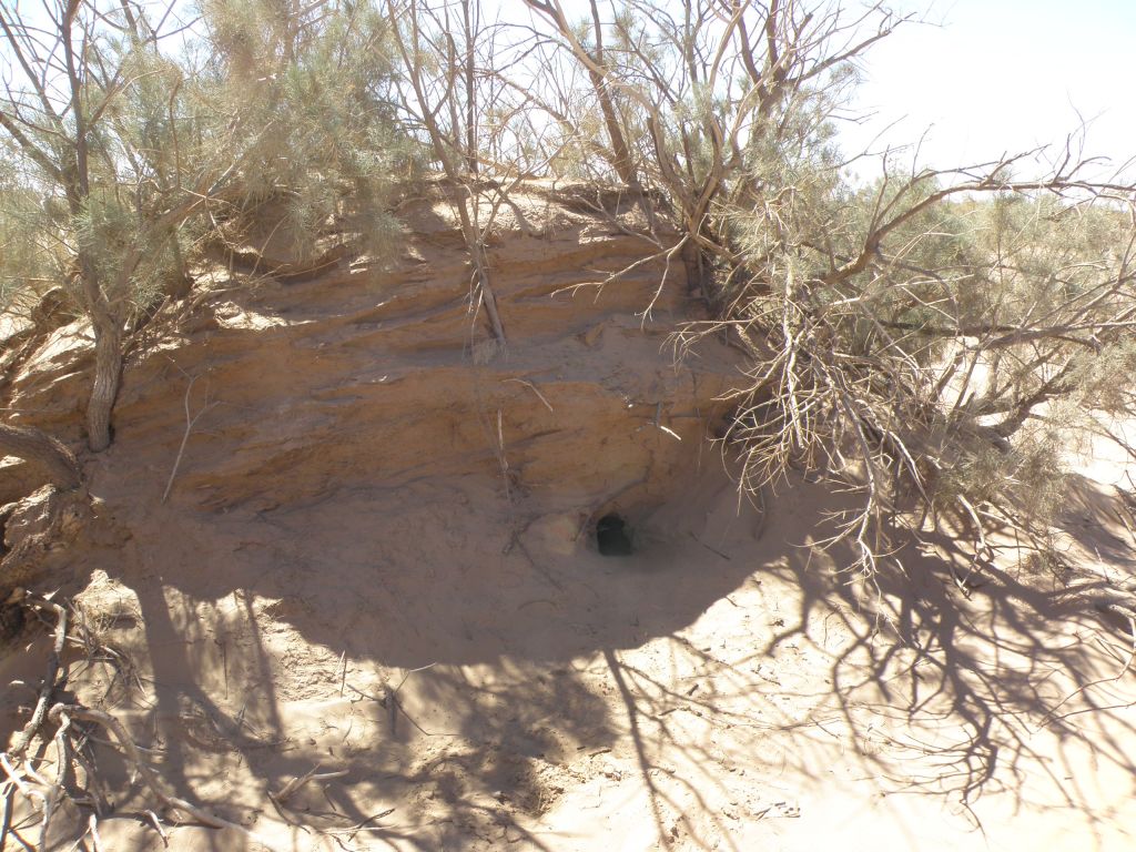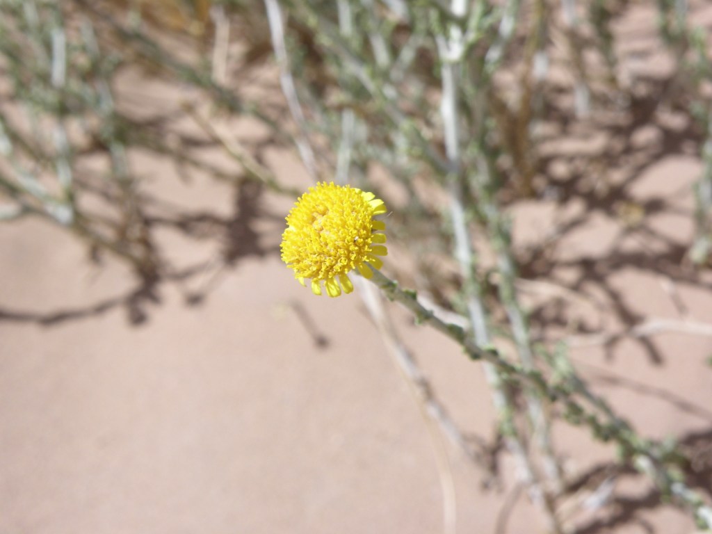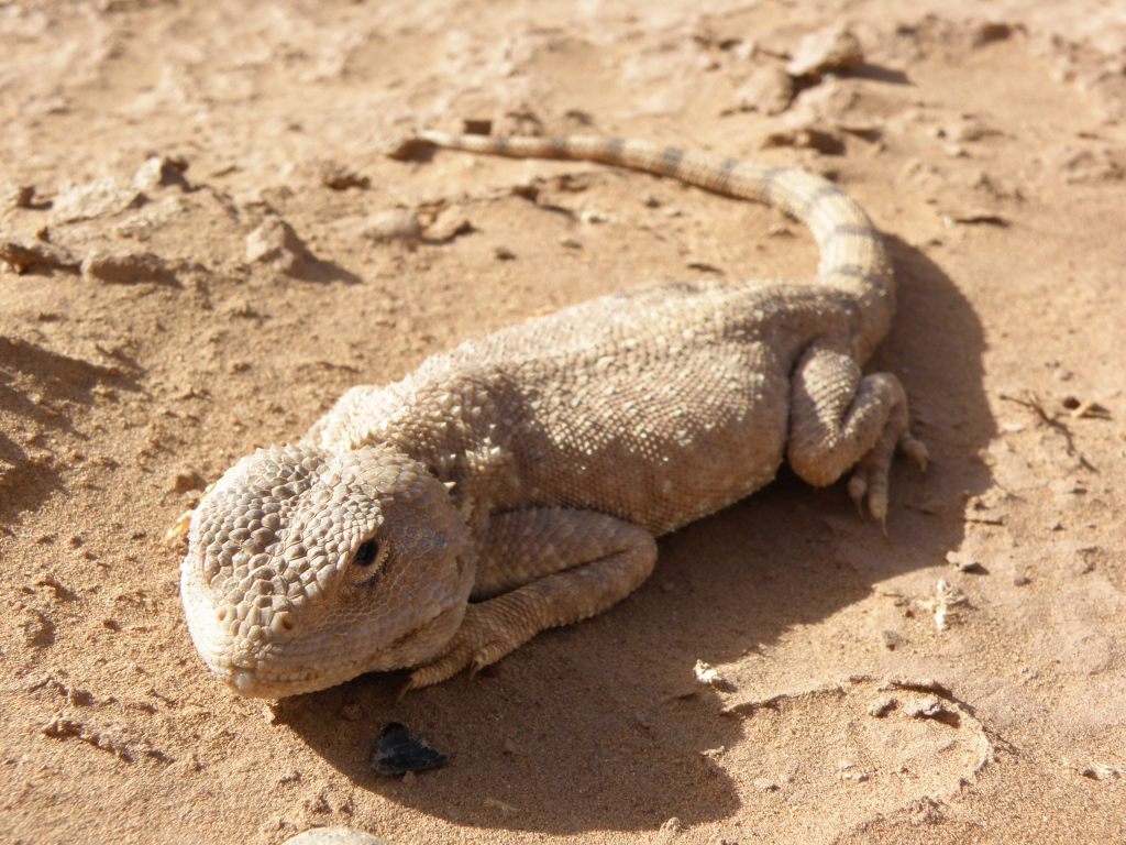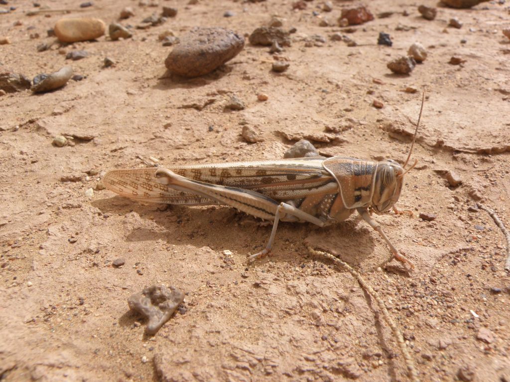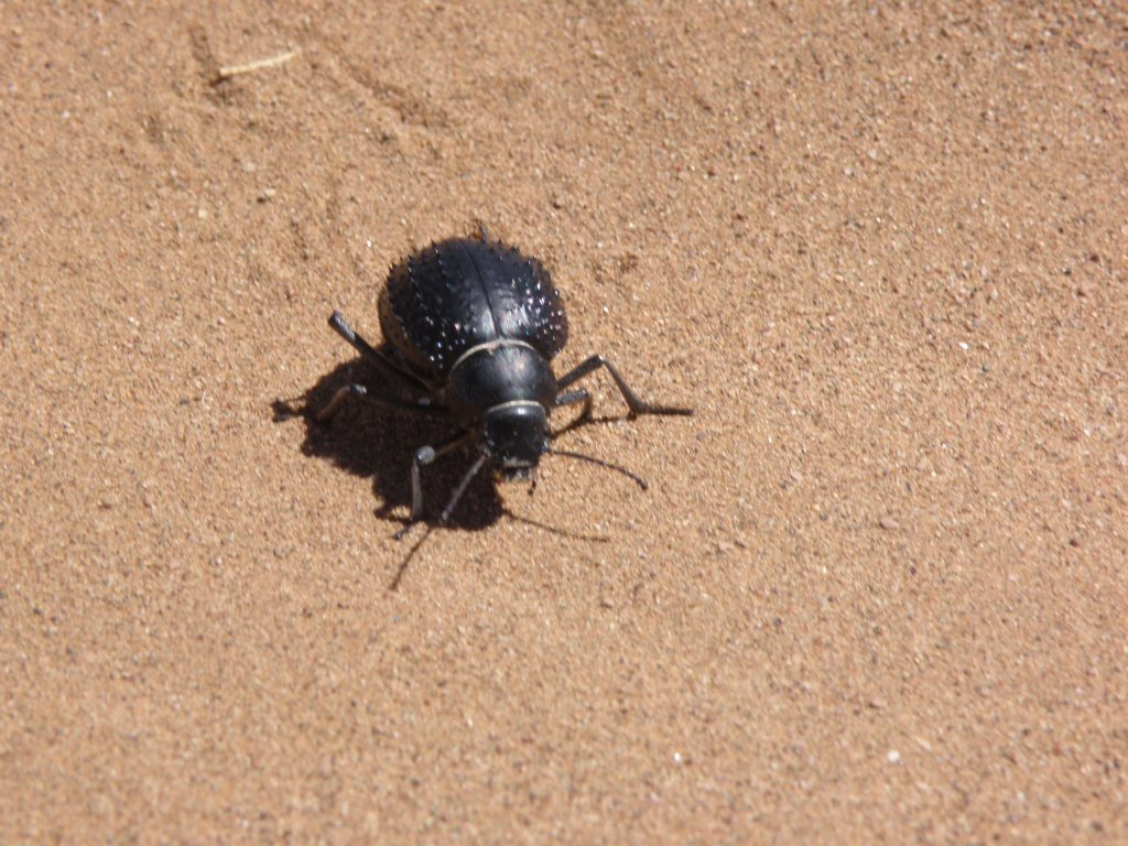 Après un magnifique lever de soleil, nous repartons pour une nouvelle étape de désert. Les paysages sont peu variés mais la végétation change de temps à autre et surtout, la visibilité est désormais excellente et nous permet de voir très loin à chaque montée de dune. On peu également observer les traces d’animaux dans le sable, comme on les verrait sur la neige : coléoptères, rongeurs, fennec, chacal… En dehors du traditionnel tamaris, la végétation se compose aussi de lacalutropis (son lait peut rendre aveugle), datorale (plante hallucinogène), acacia, houria et quelques autres fleurs.