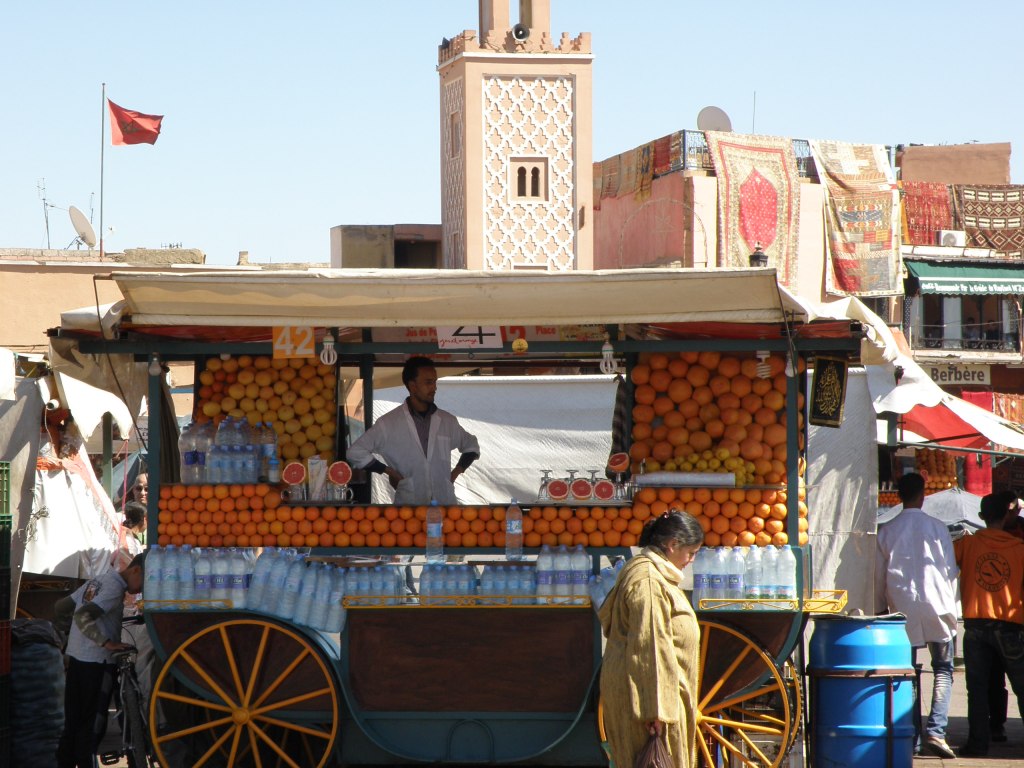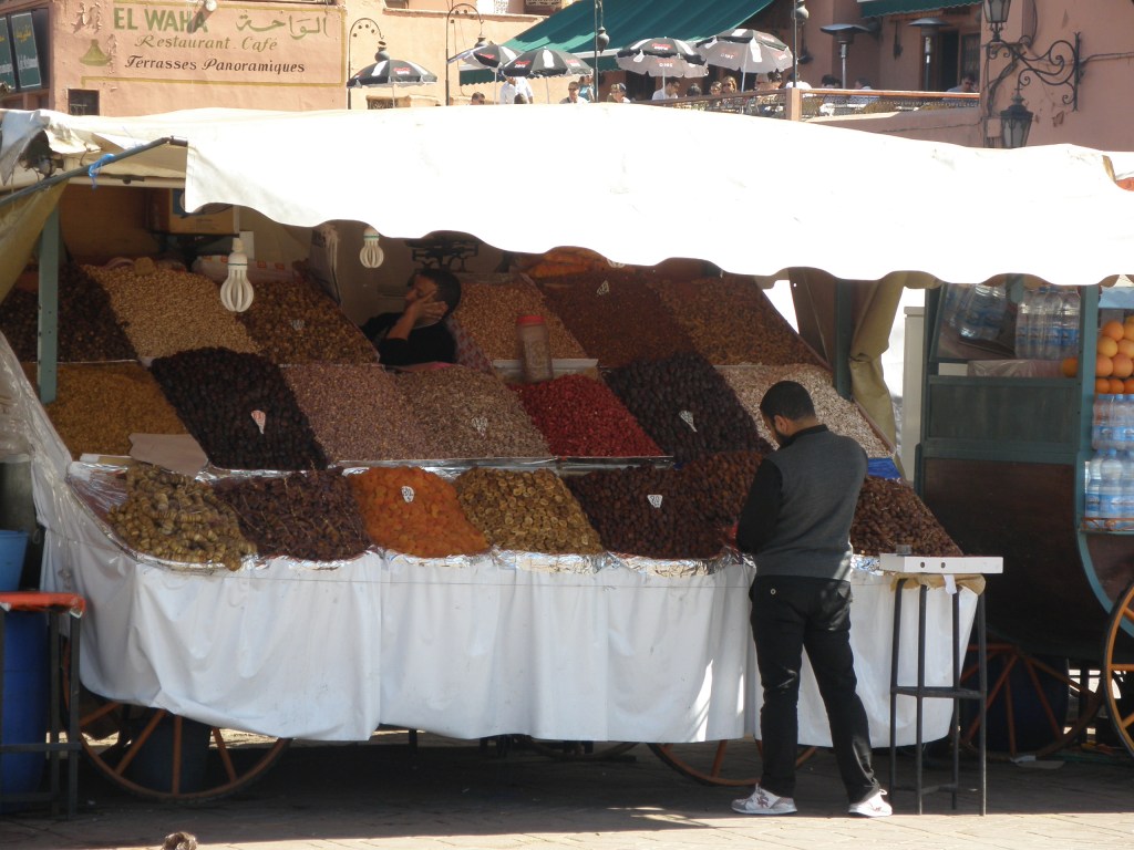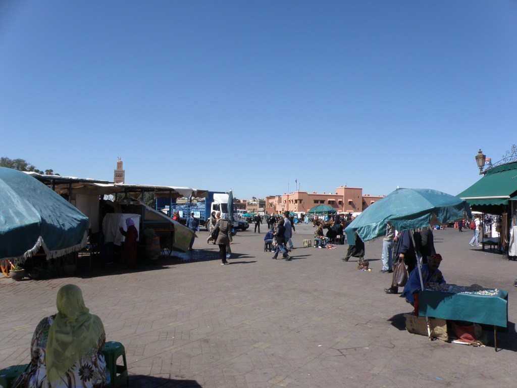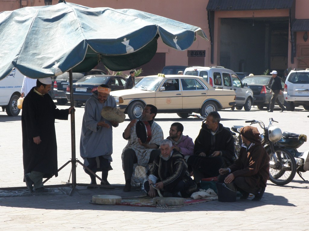 Petit tour sur la place Djamaa El Fna pour observer les charmeurs de serpents, les marchands de fruits, d’épices, les acrobates… etc.