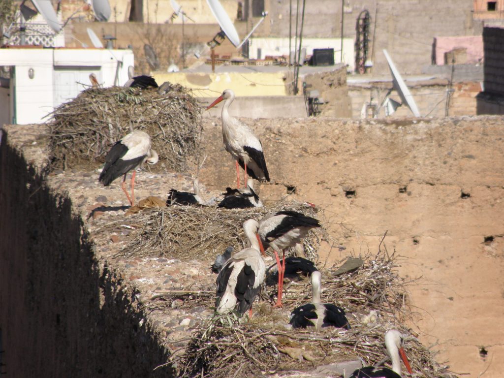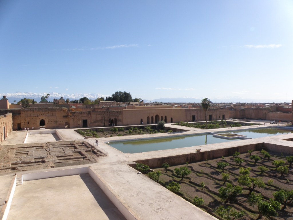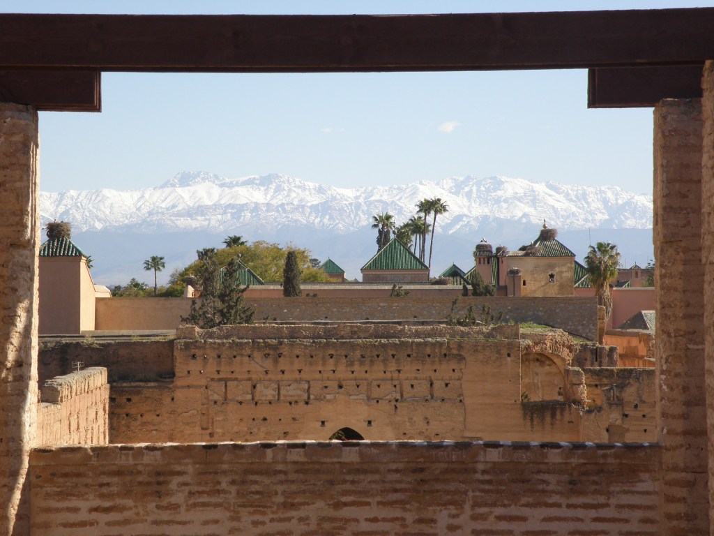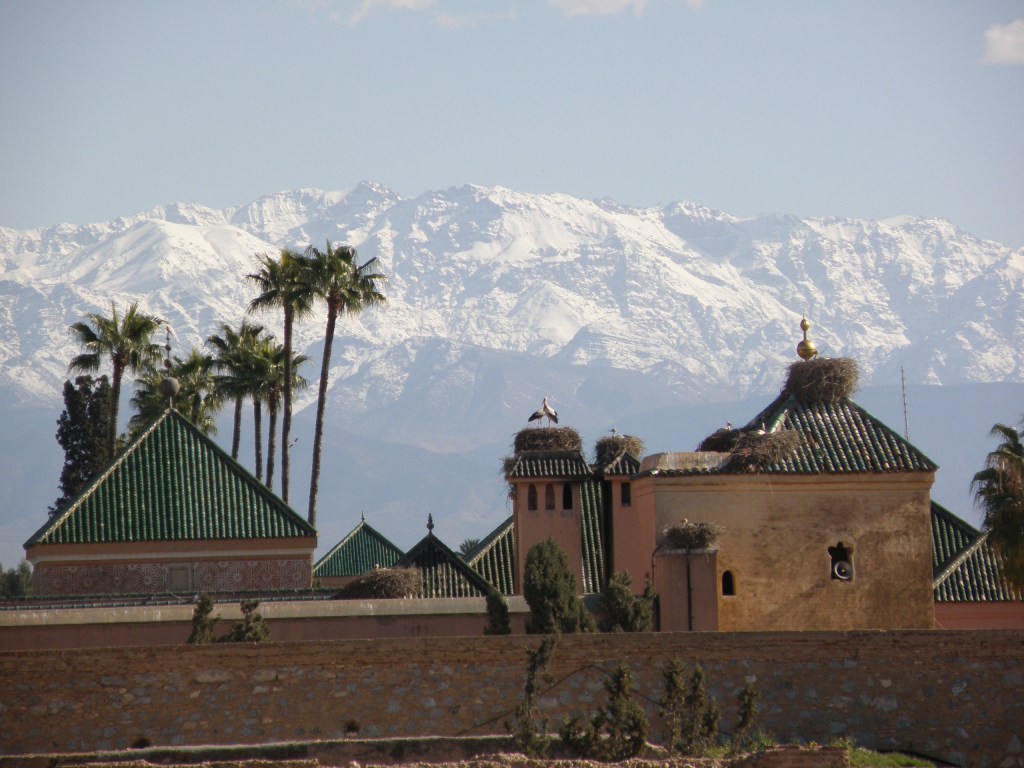 L’après-midi, on visite le palais El Bani. De la terrasse, on admire l’Atlas enneigé et les toits (de paraboles) de Marrakech, ainsi que les nombreuses cigognes qui ont élu domicile sur la forteresse.