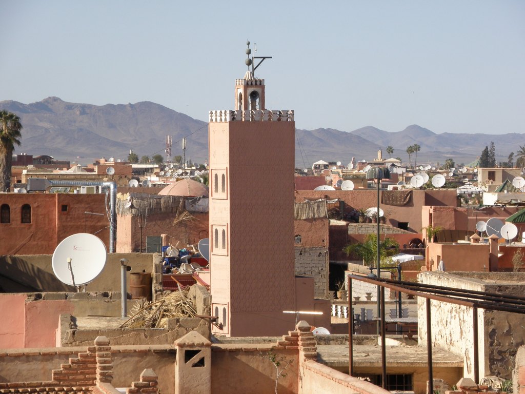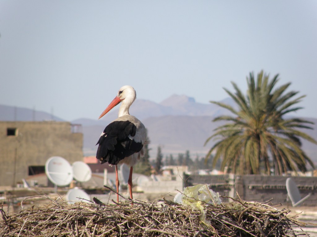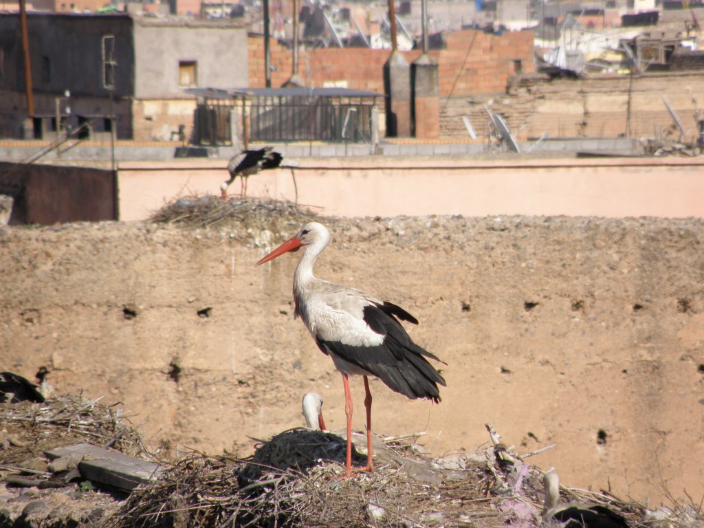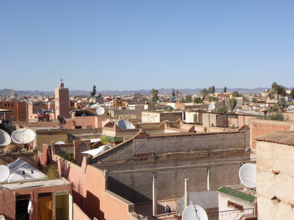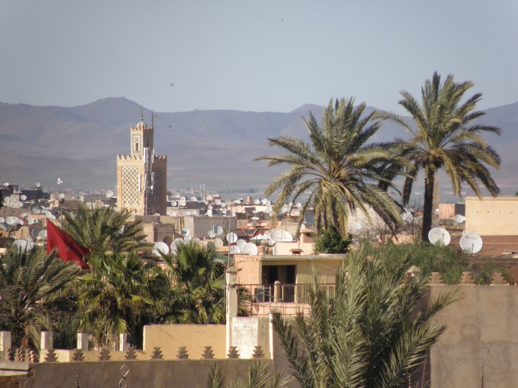 L’après-midi, on visite le palais El Bani. De la terrasse, on admire l’Atlas enneigé et les toits (de paraboles) de Marrakech, ainsi que les nombreuses cigognes qui ont élu domicile sur la forteresse.