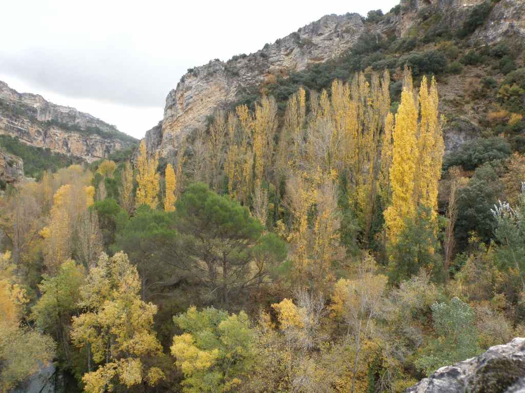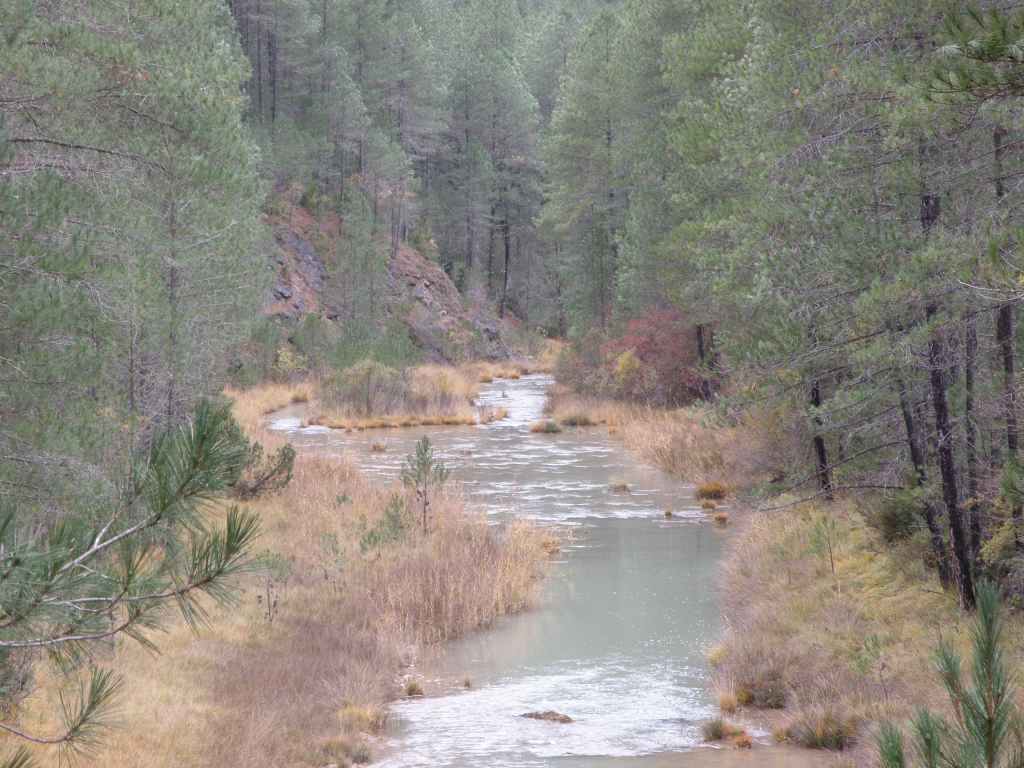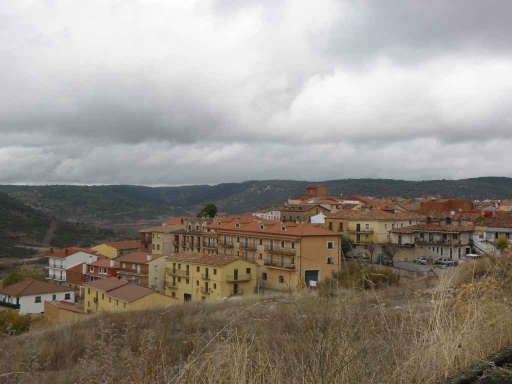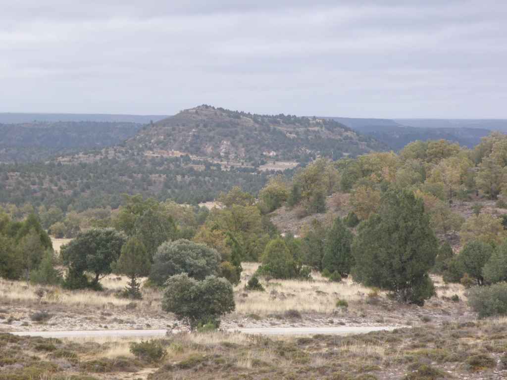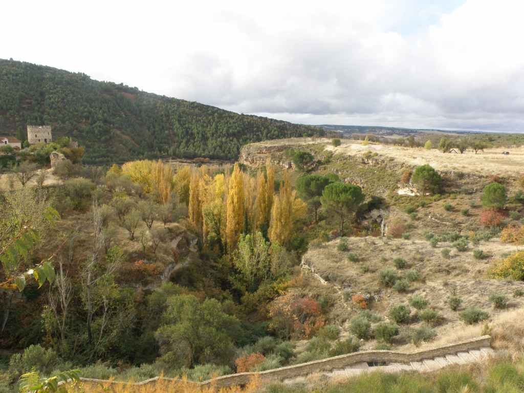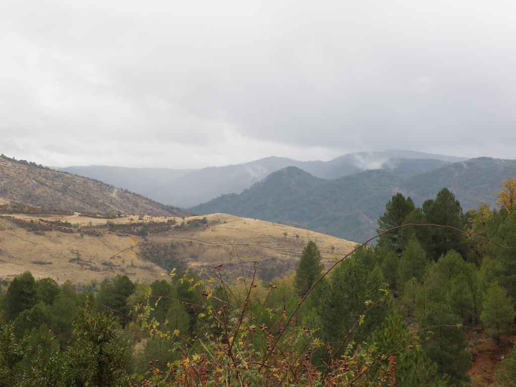 La pluie s’est calmée mais le ciel reste chargé toute la matinée. Nous avons prévu une excursion en voiture dans les montagnes à l’est de Sacedon : la Serrania de Cuenca. Le sommet culmine à 1839 m, mais nous n’irons pas jusque-là. Au pied de ce sommet nait le Tage (Tajo), un des plus gros fleuves d’Espagne. Nous faisons une petite halte dans le bourg de Priego puis empruntons les gorges d’Hoz de Beteta.