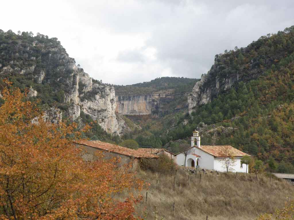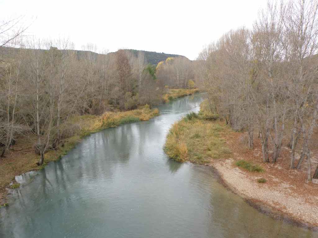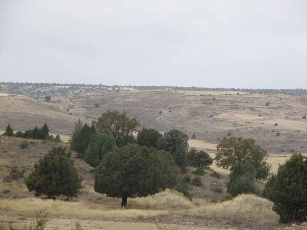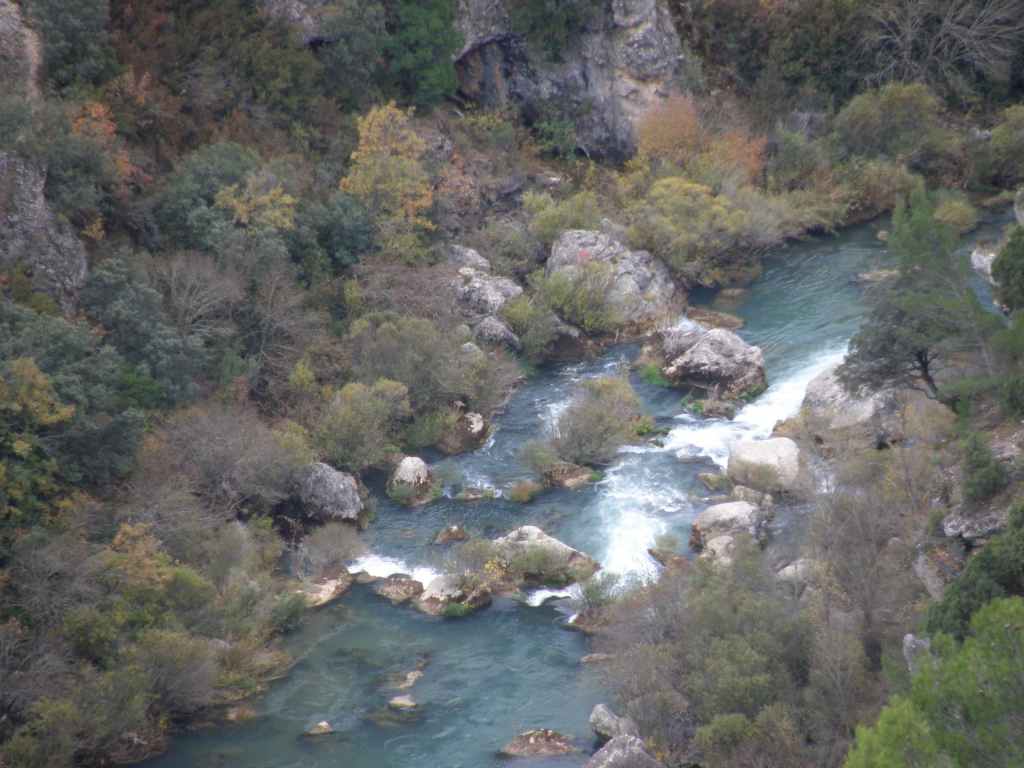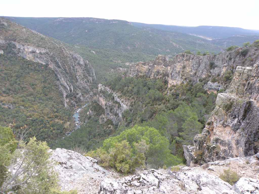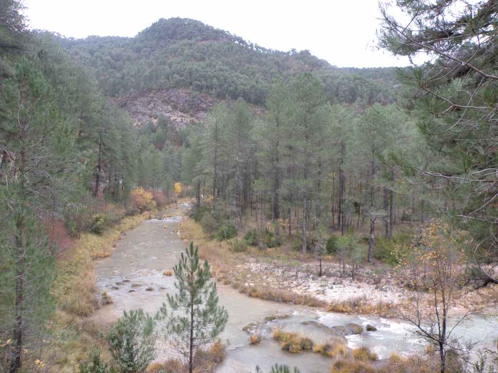La pluie s’est calmée mais le ciel reste chargé toute la matinée. Nous avons prévu une excursion en voiture dans les montagnes à l’est de Sacedon : la Serrania de Cuenca. Le sommet culmine à 1839 m, mais nous n’irons pas jusque-là. Au pied de ce sommet nait le Tage (Tajo), un des plus gros fleuves d’Espagne. Nous faisons une petite halte dans le bourg de Priego puis empruntons les gorges d’Hoz de Beteta.