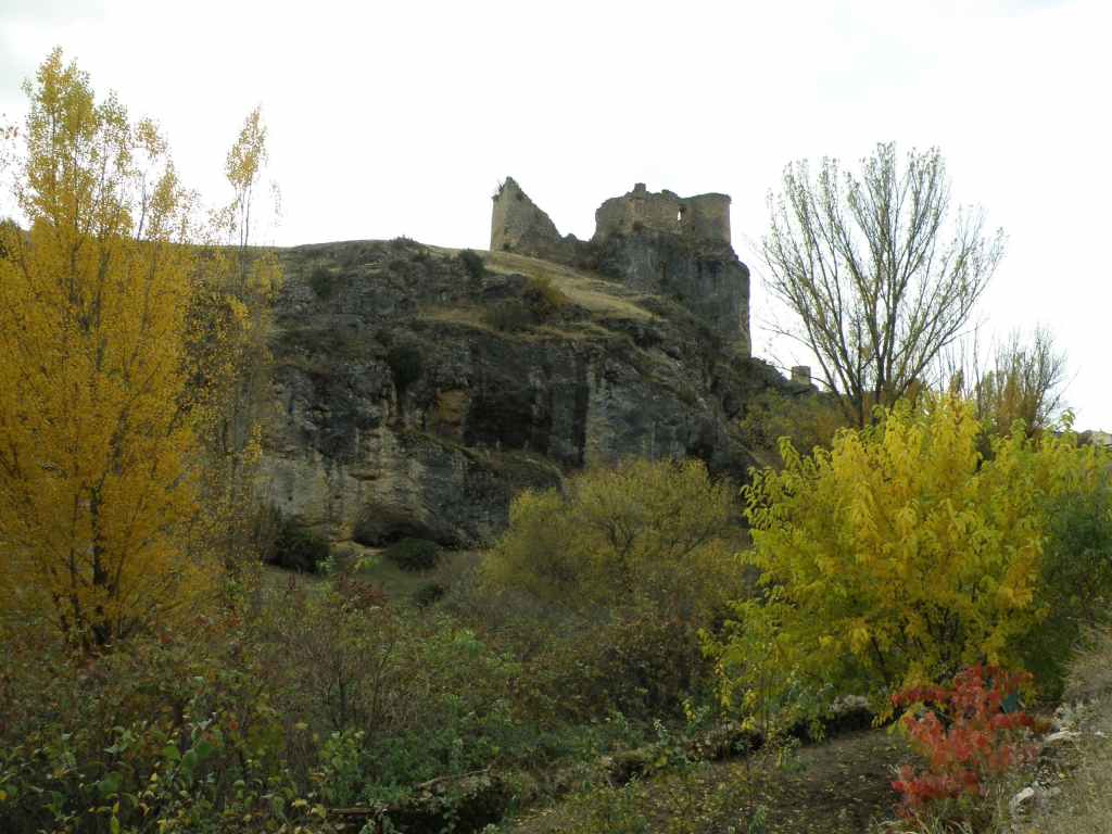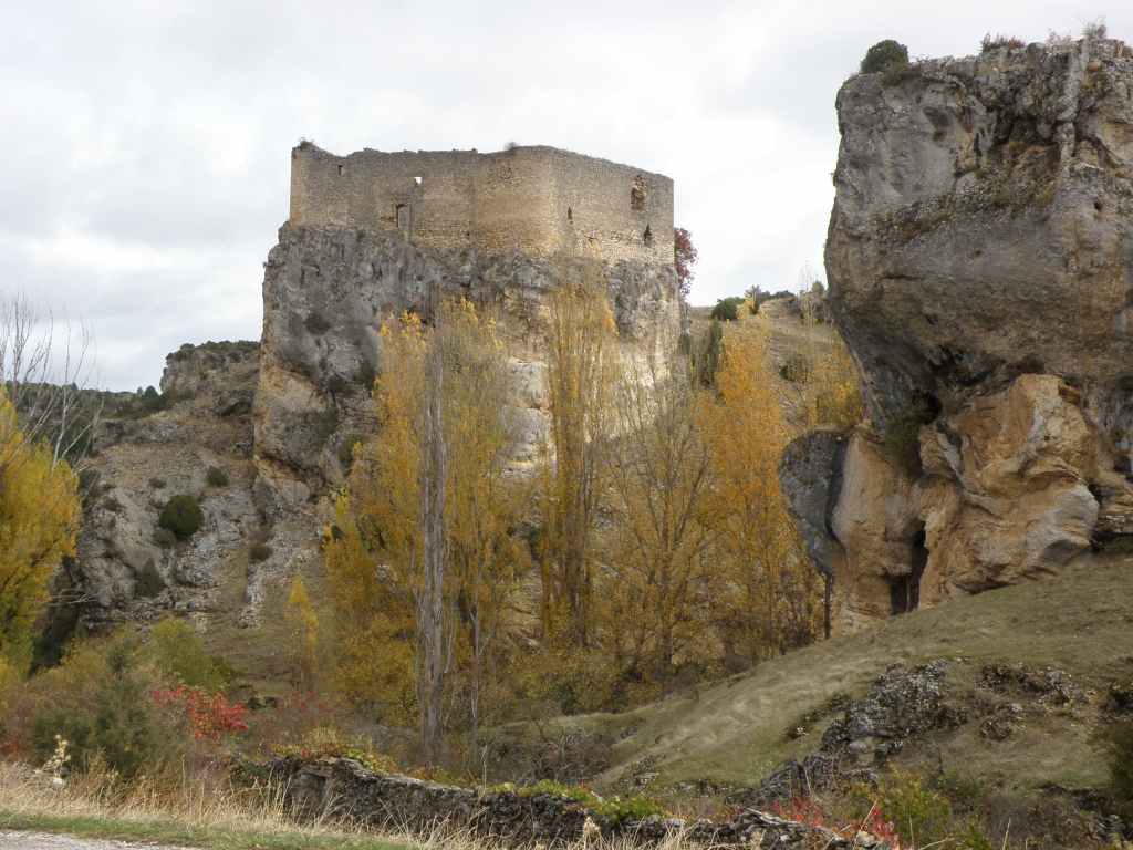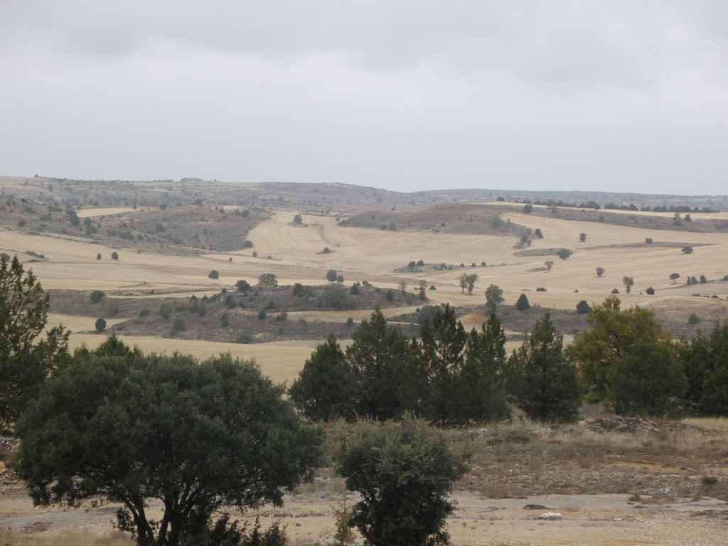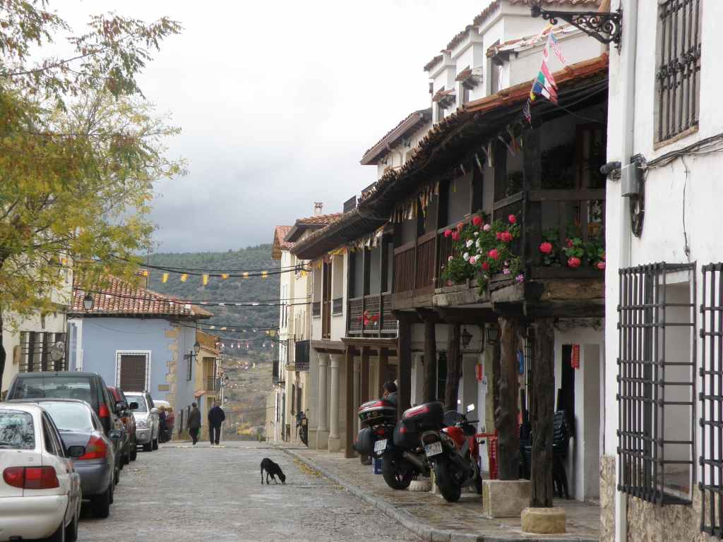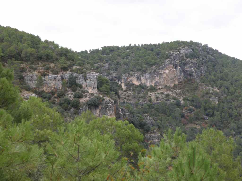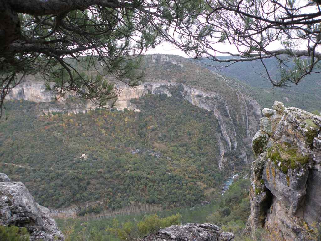 La pluie s’est calmée mais le ciel reste chargé toute la matinée. Nous avons prévu une excursion en voiture dans les montagnes à l’est de Sacedon : la Serrania de Cuenca. Le sommet culmine à 1839 m, mais nous n’irons pas jusque-là. Au pied de ce sommet nait le Tage (Tajo), un des plus gros fleuves d’Espagne. Nous faisons une petite halte dans le bourg de Priego puis empruntons les gorges d’Hoz de Beteta.