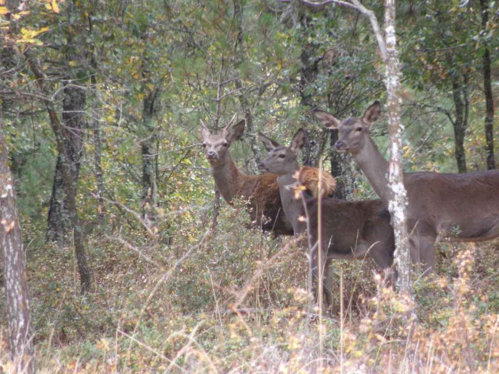 Petite visite du joli village de Beteta. Les heures tournent et impossible de trouver un petit resto. C’est très isolé et les quelques restos qui existent sont tous fermés. On décide donc de rejoindre la ville de Cuenca. En cours de route, on aperçoit 2 cerfs en contre-bas de la route. Je fais demi-tour pour essayer de les photographier, mais ils sont déjà partis. Mais en allant faire demi-tour un peu plus loin, il y a 3 biches qui nous observent.