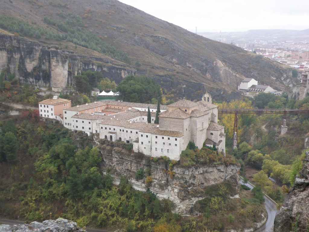 Beaucoup de vieilles demeures, un vieux château, un monastère en contre-bas et le rio Jucar qui contourne le rocher où est posé la vieille ville… et une bonne pluie pour arroser tout ça !