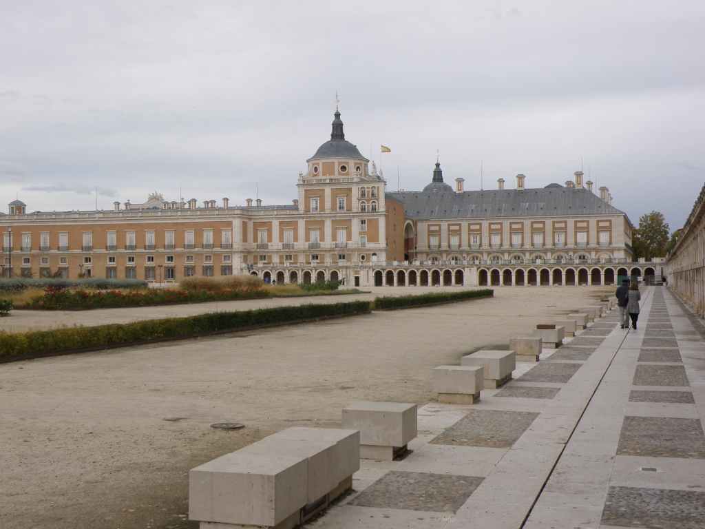 Après avoir consulté la météo, on décide d’aller au sud-ouest de Madrid, visiter Aranjuez et Toledo (Tolède). On décide de prendre des petites routes afin de découvrir plus de paysages. Les routes sont tellement petites que l’une d’elles se transforme en piste plus ou moins boueuse. La Polo change de couleur !!! On arrive enfin à Aranjuez. On visite d’abord un grand parc où trône une annexe du château et on finit par trouver le château à quelques centaines de mètres. C’est un peu une réplique de Versailles, en moins grandiose.