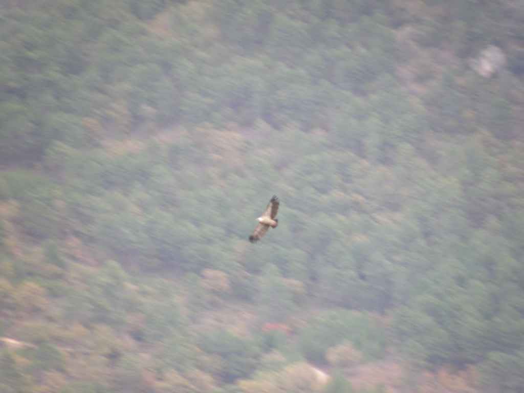 C’est ici le domaine des vautours, nombreux à planer dans les gorges. la température est frisquette : 6-7 °C avec un peu de vent, mais on est souvent à l’abri des pins.