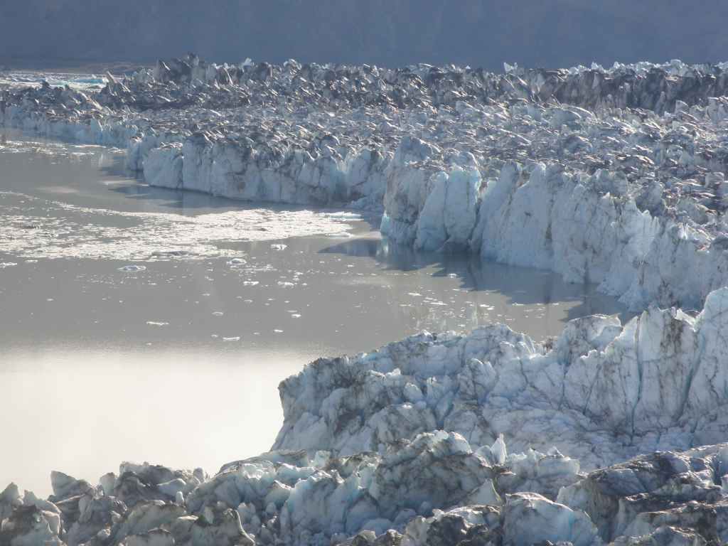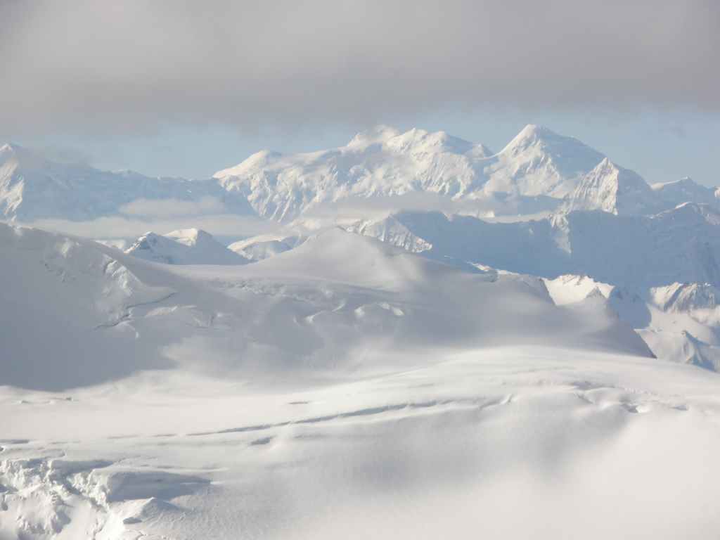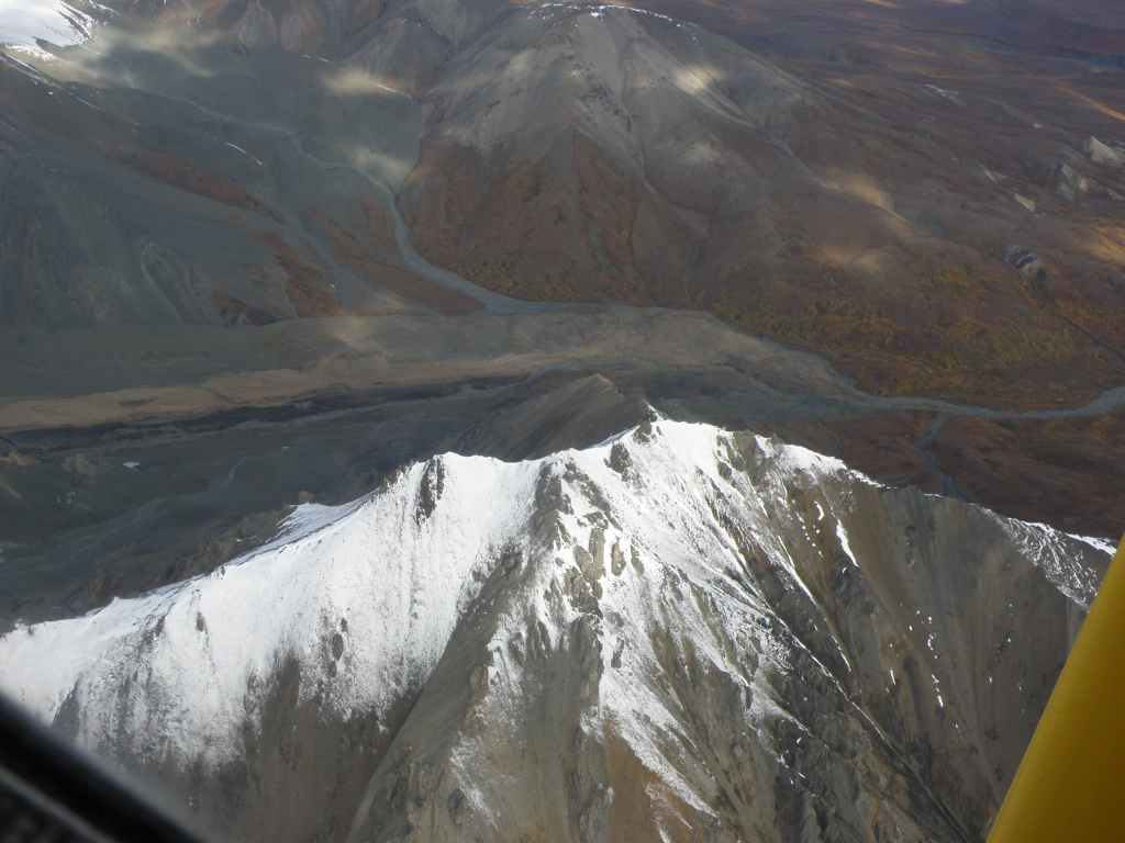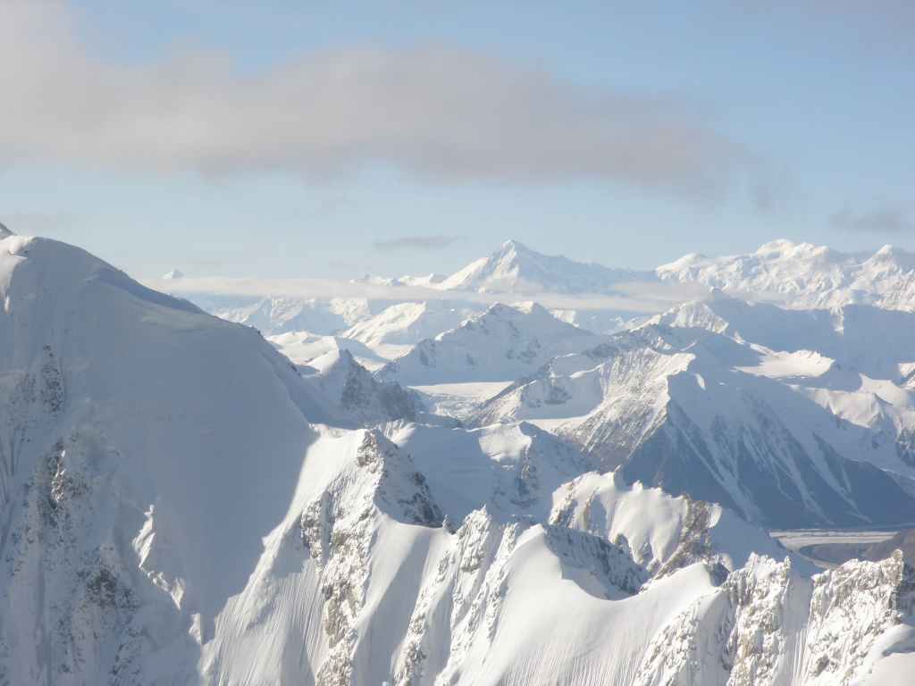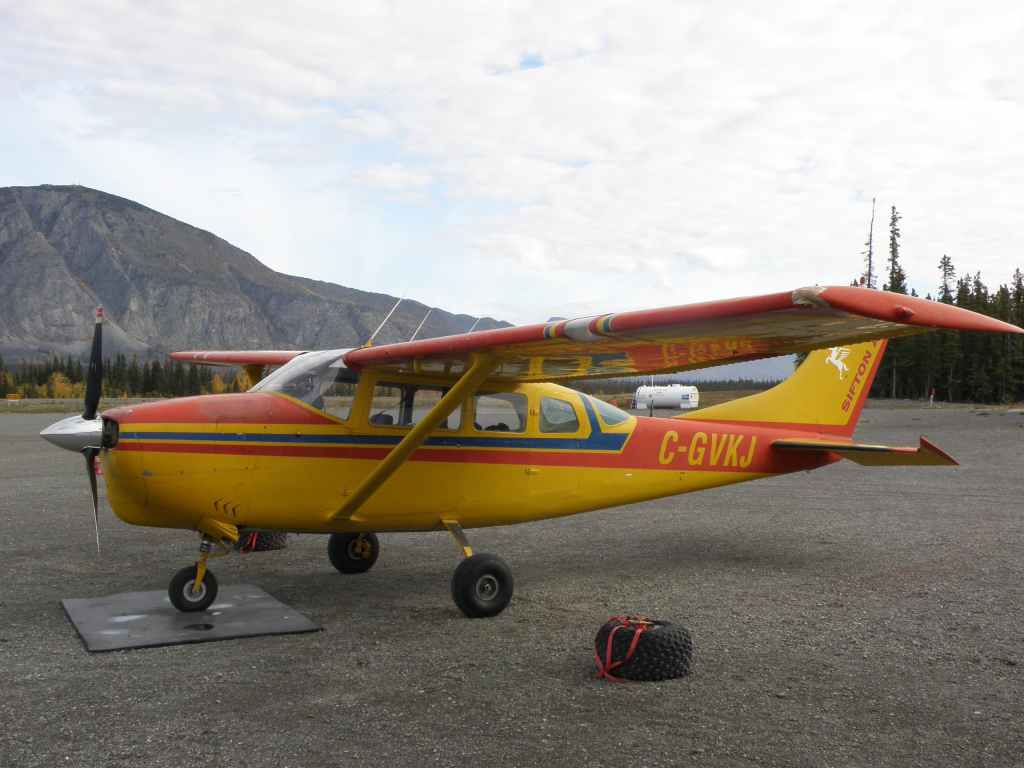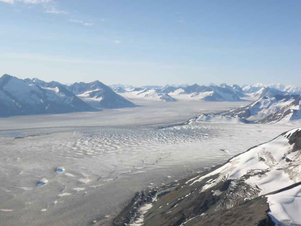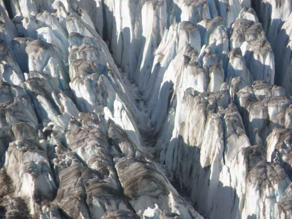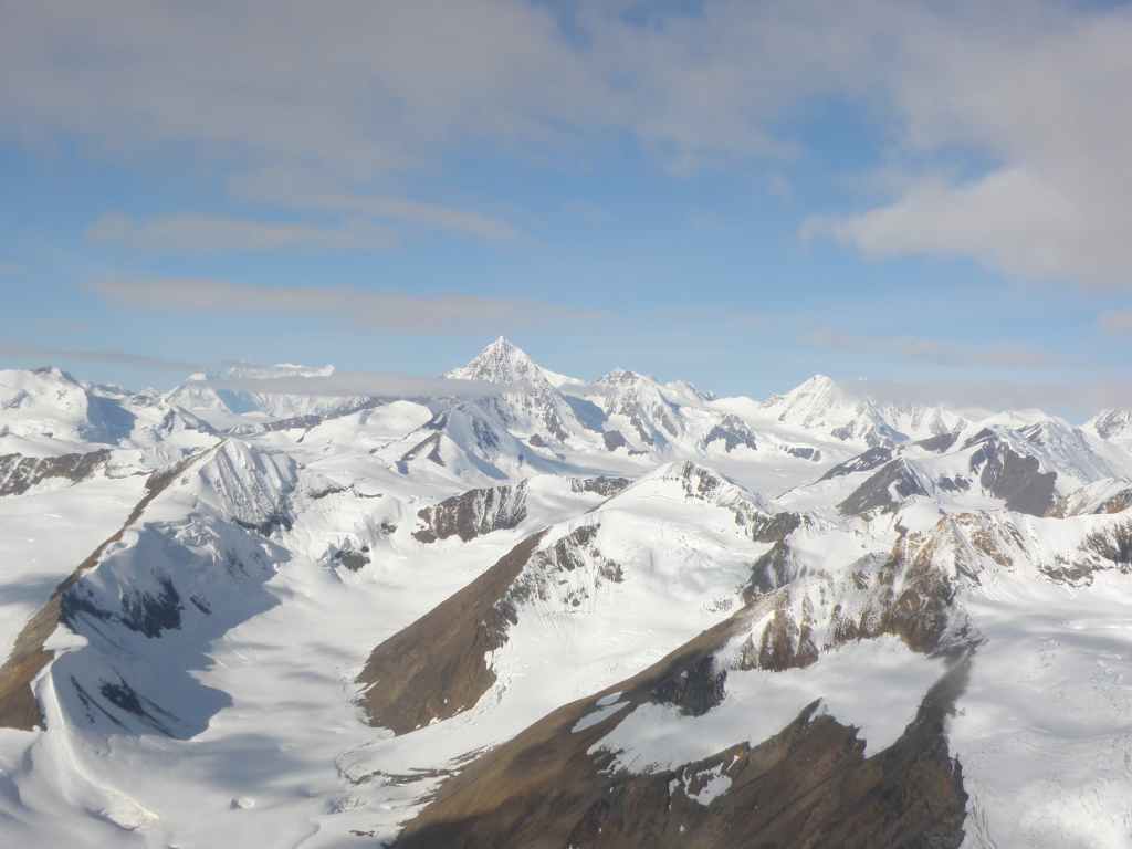 Nous nous rendons à l’aérodrome sous un ciel couvert malgré quelques éclaircies au loin. Nous ne sommes pas sûrs de prendre l’air mais le pilote est confiant et nous invite à monter dans son petit coucou. C’est notre premier vol dans ce type d’avion et je stresse un peu… Décollage et, et… peu de mots existent pour décrire ce que nous voyons. C’est grandiose, fantastique, exceptionnel !!! Nous survolons la plus grande surface glaciaire au monde, si on excepte les 2 pôles, sous un soleil éclatant. On aperçoit au loin le mont Logan et ses 5985 m. On fait du rase-motte au-dessus des crevasses des glaciers… c’est quelque chose ! 1 heure c’est trop court…