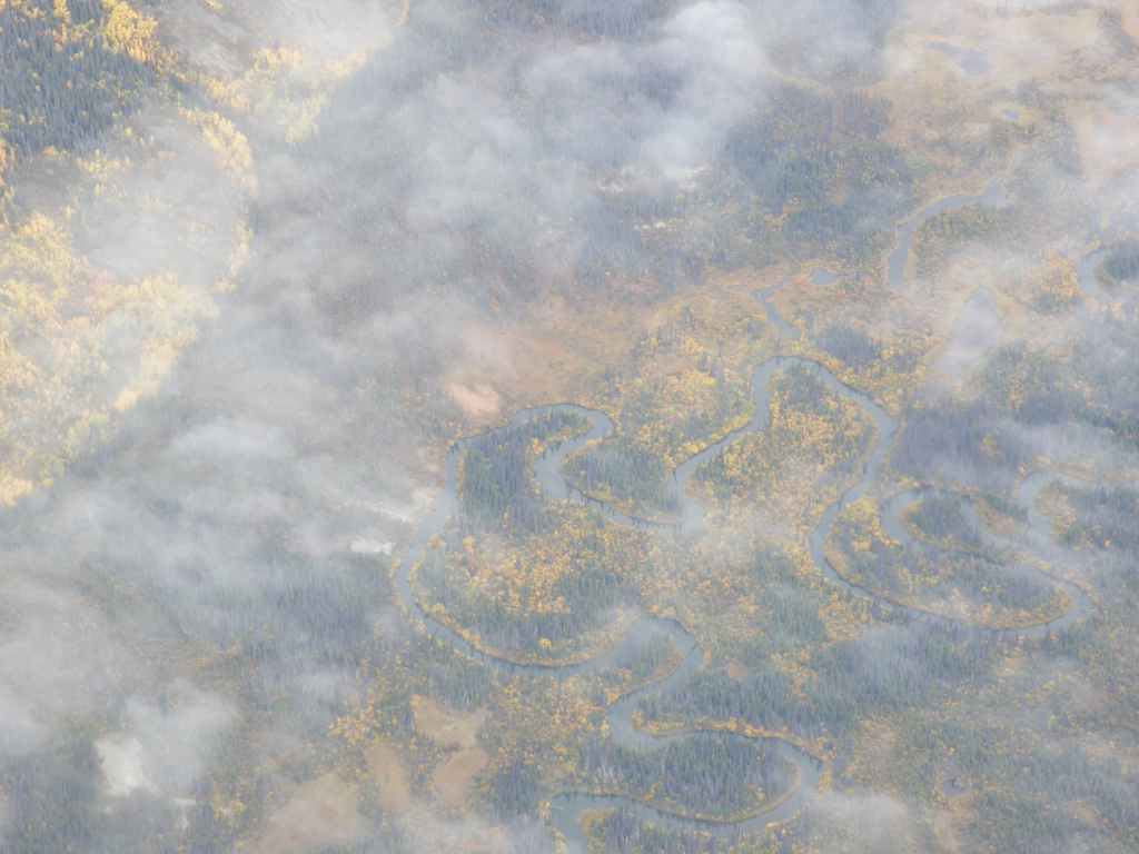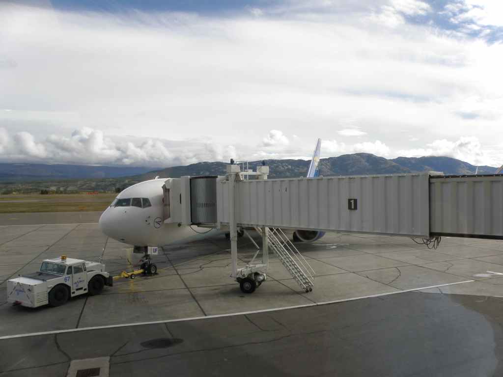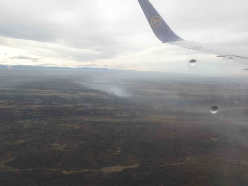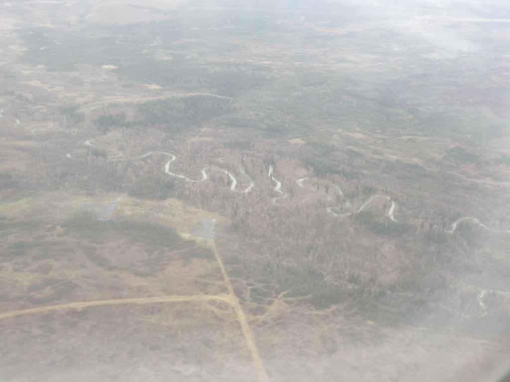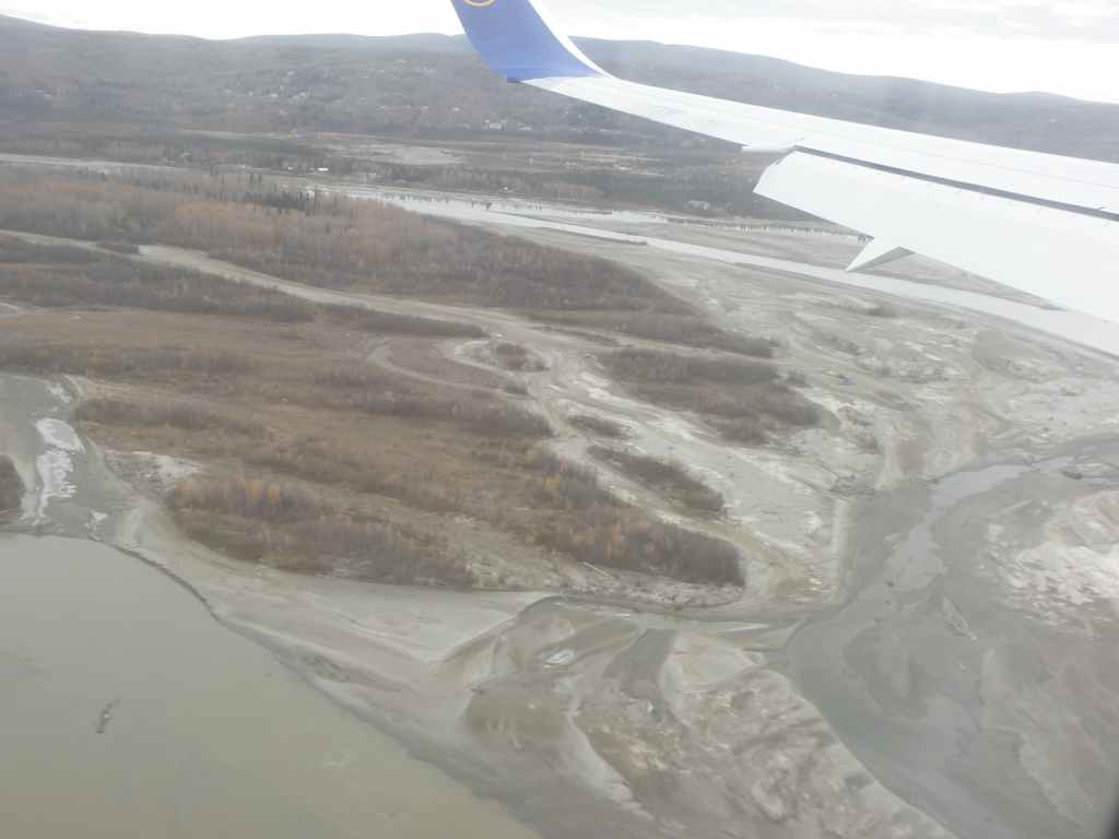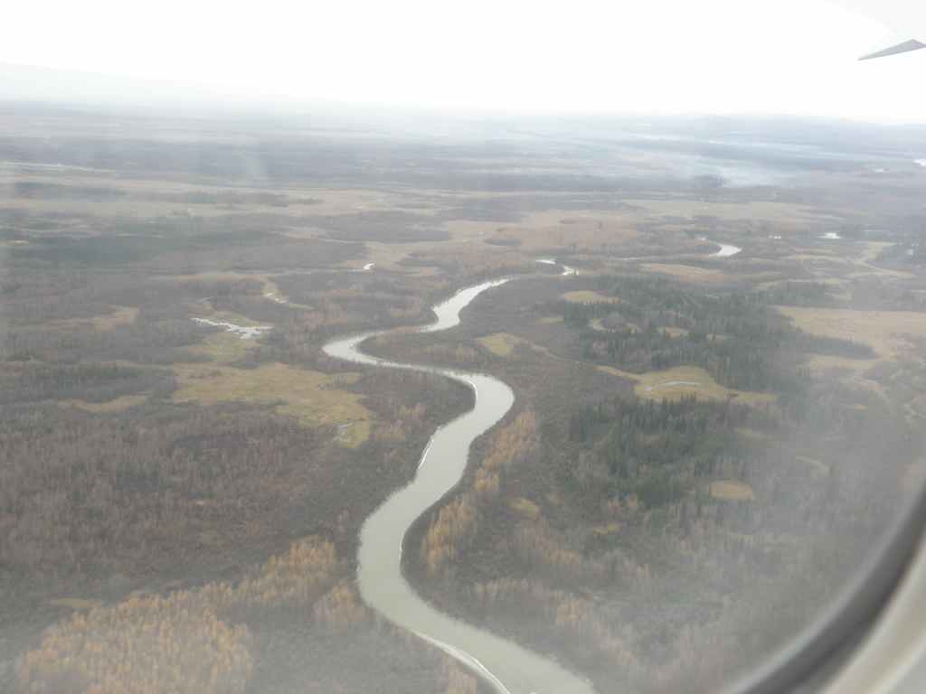 Réveil à 7 h pour boucler les valises, finir le ménage et vidanger les réservoirs. On arrive à l’agence à 9h45. Leur navette nous emmène à l’aéroport pour 10h30. Enregistrement des bagages. Passage des contrôles et puis décollage en direction de l’Alaska à 13h15 avec 20 mn de retard. On survole une zone de forêt encore en feu puis on arrive à Fairbanks à 14h30.
