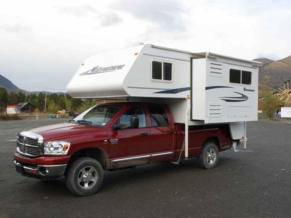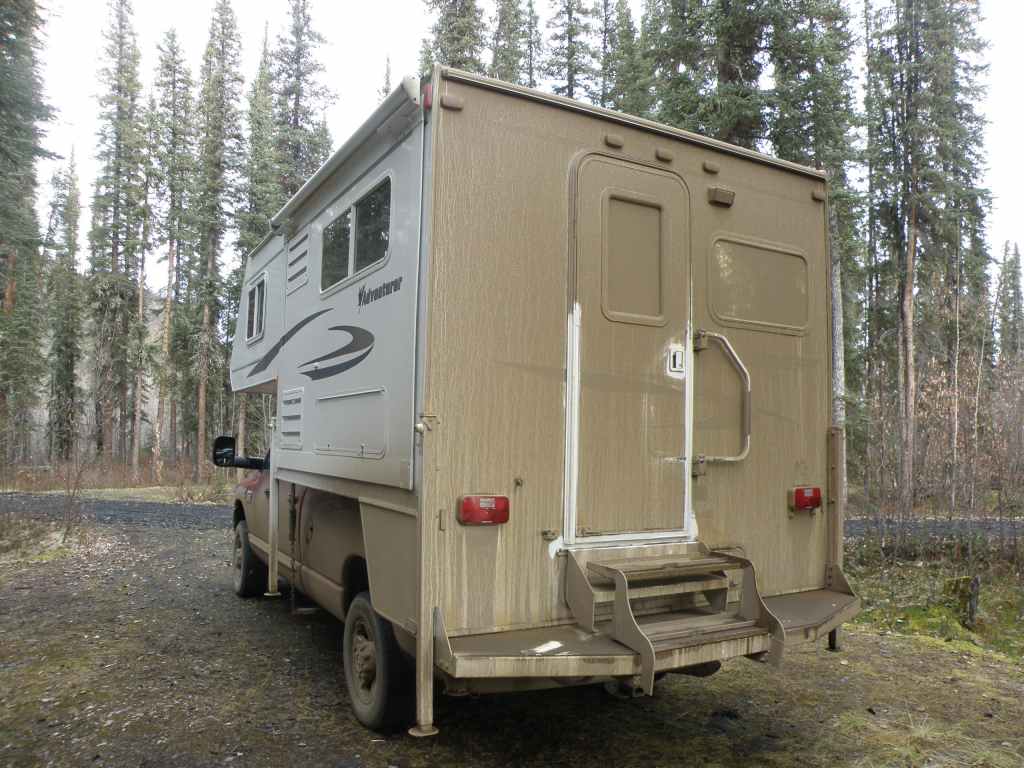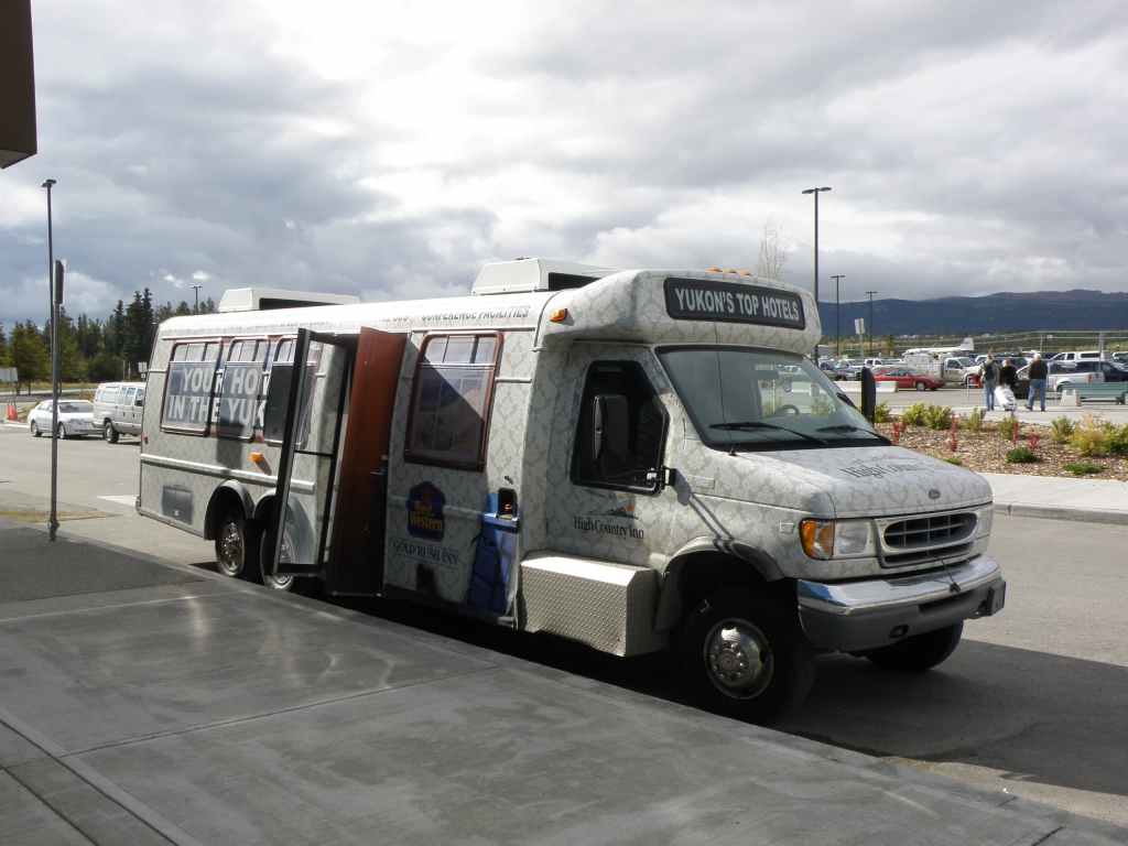 Nous arrivons à 11h40 locale dans la capitale du Territoire du Yukon. Il y a 9h00 de décalage horaire. La navette du loueur Fraserway passe nous chercher comme prévu et à 13h00, nous repartons avec notre Truckcamper Dodge, un monstre de 6,50 m de long et 3,50 mètres de hauteur et pesant 4,5 tonnes. Nous avons été surclassé puisqu’on nous fournit une cellule avec une extension qui n’était pas prévue…