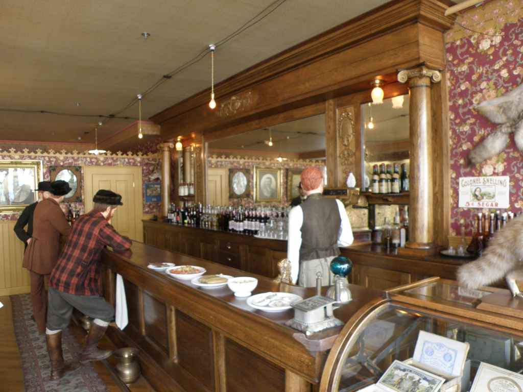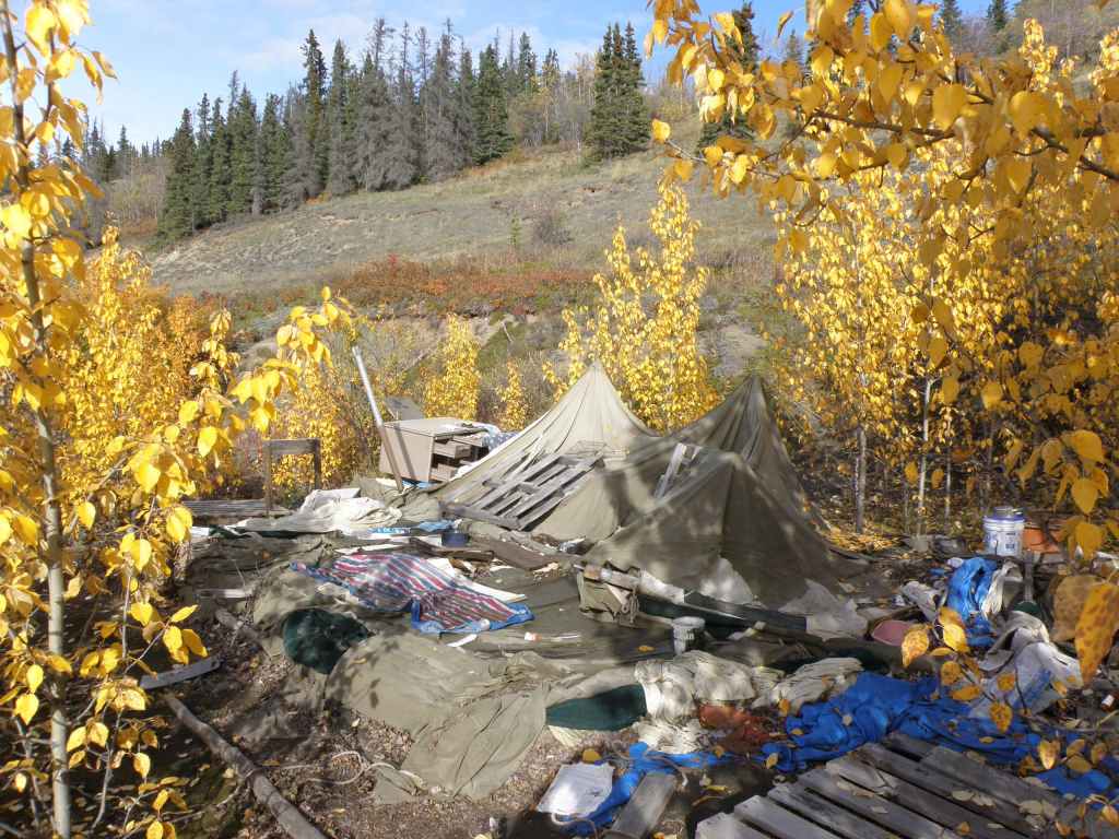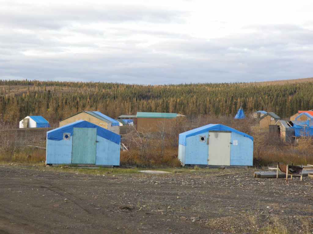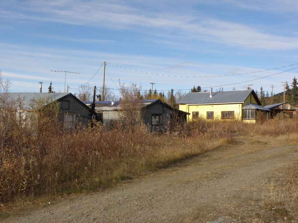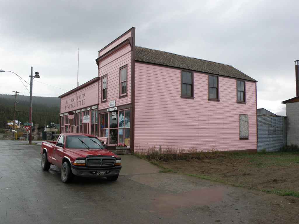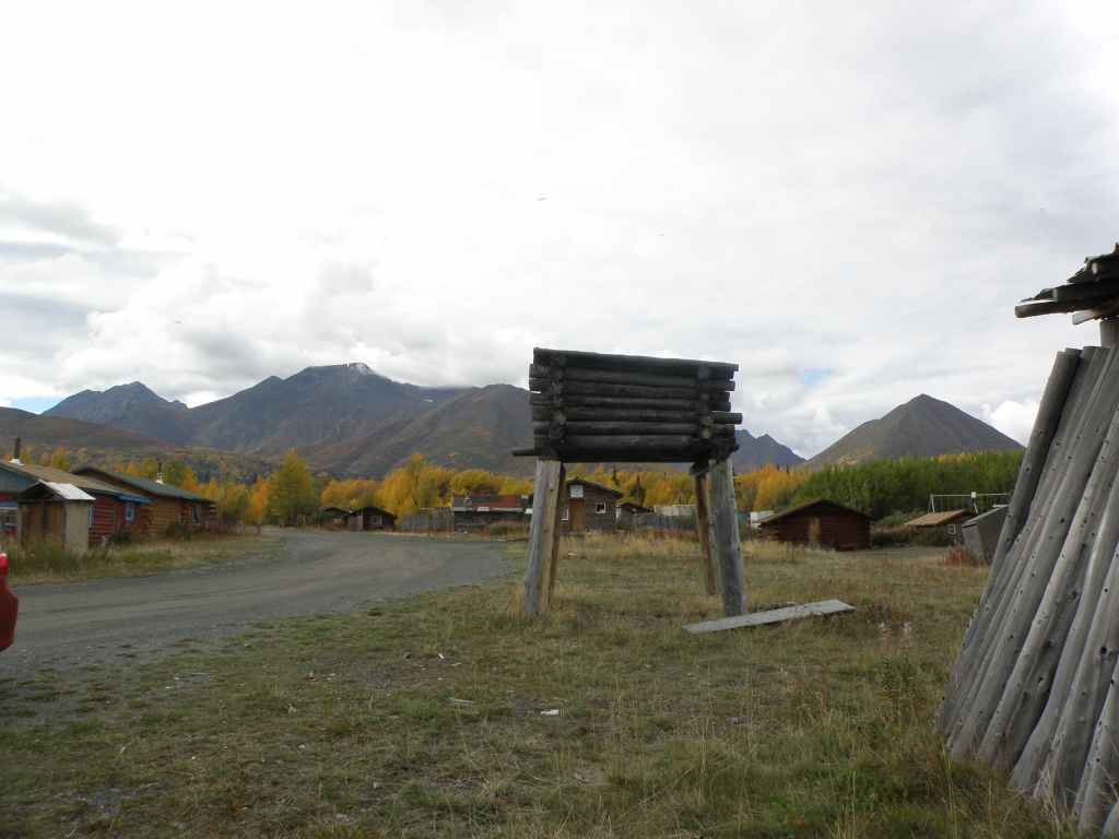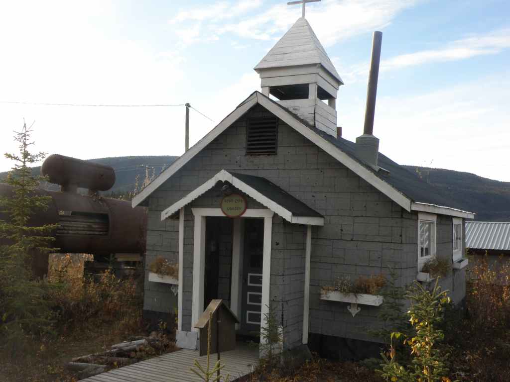 Les éclaircies sont aujourd’hui plus nombreuses mais les températures sont hivernales : – 4°c le matin et -2°C en journée. Nous partons en direction de Mayo où nous ravitaillons, lessivons, vidangeons et faisons réparer le pneu crevé chez un garagiste plutôt original… puis nous rejoignons la « ville » minière de Keno City, en fait un village avec ses vieilles maisons de bois plus ou moins abandonnées. Nous faisons une petite visite l’après-midi du village et décidons d’aller prendre un verre dans le café du coin.