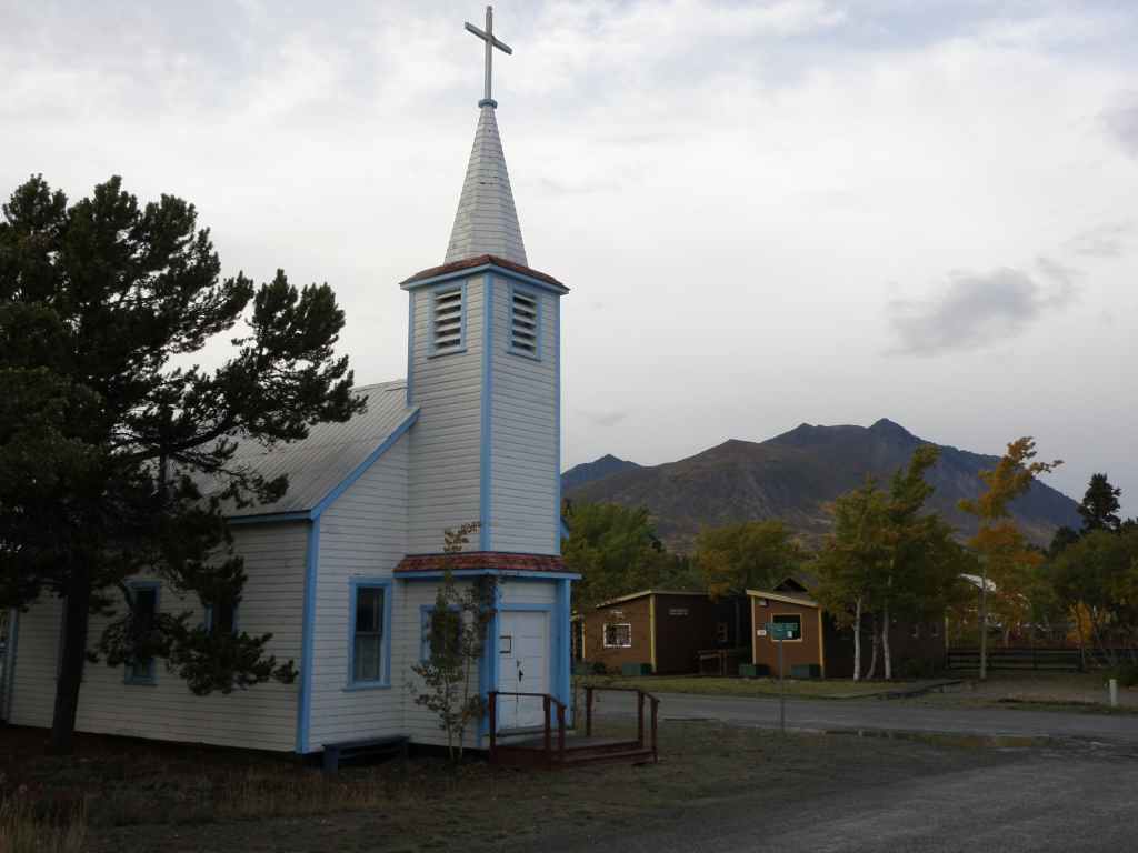 Il s’agit d’un 4×4 de 310 cv, ce qui nous sera bien utile parfois ! La météo est incertaine mais la température est relativement douce (environ 10°C). Nous partons plein sud et faisons étape à Carcross. Notre but est de rejoindre Skagway en Alaska le lendemain et de revenir sur Whitehorse. Nous dormons sur une place du village.