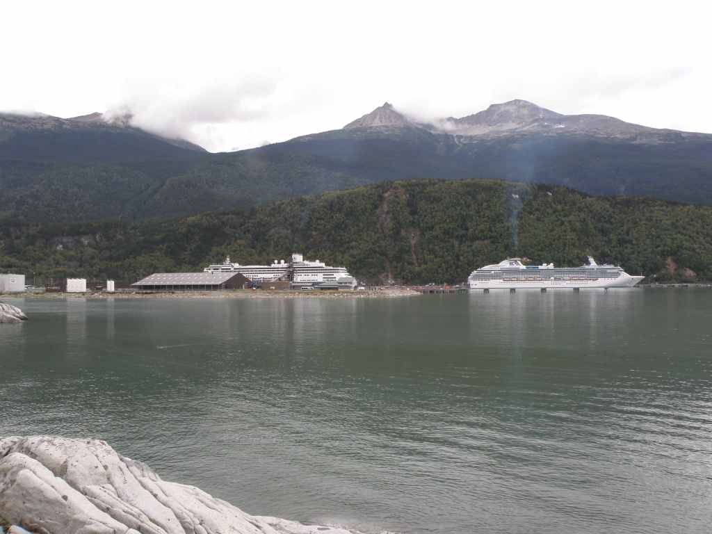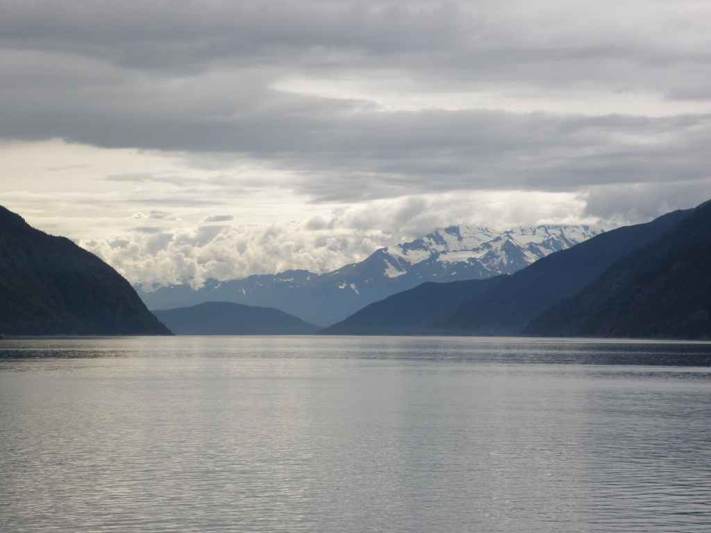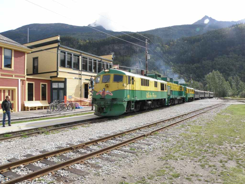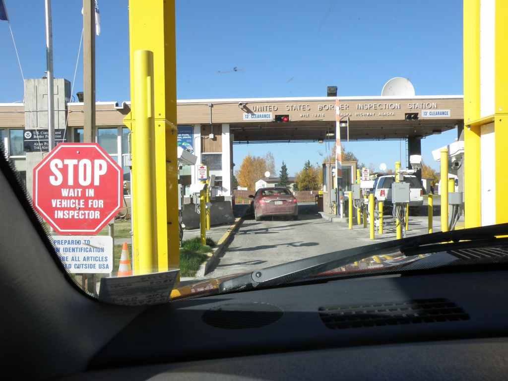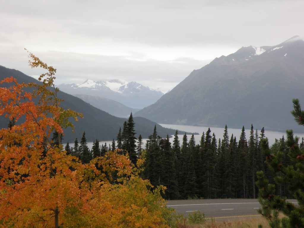 Petits soucis dans le camping-car comme une fuite d’eau qui mouille la moquette et un chauffage à soufflerie très bruyant qui nous oblige à mettre des bouchons d’oreille et ce jusqu’à la fin du voyage. Dommage car dehors c’est le silence absolu. Nous passons donc le White Pass, col à la frontière des USA. Le passage est impressionnant. La voiture est filmée de tous côtés, passe dans un portail servant probablement de scanner et nous, on nous scanne les 2 mains et on nous prend en photo. On nous donne un visa provisoire de 3 mois moyennant 6 $US / personne ! Nous continuons notre route en traversant des paysages grandioses pour redescendre à Skagway, ville de l’Alaska et lieu de départ de la ruée vers l’or à la fin du XIXème siècle.