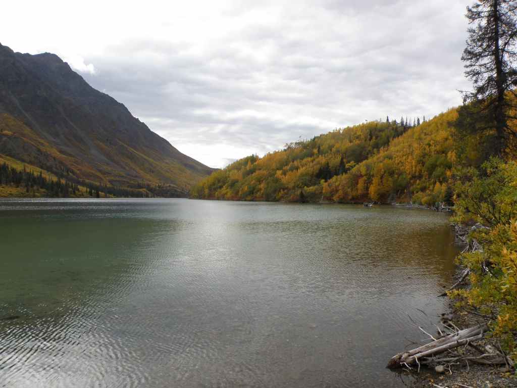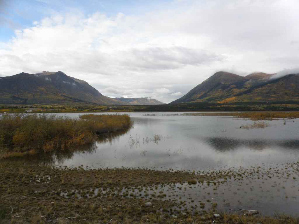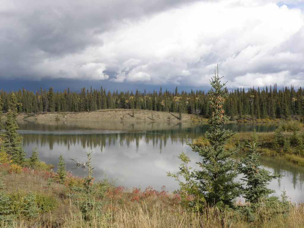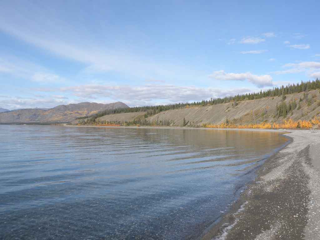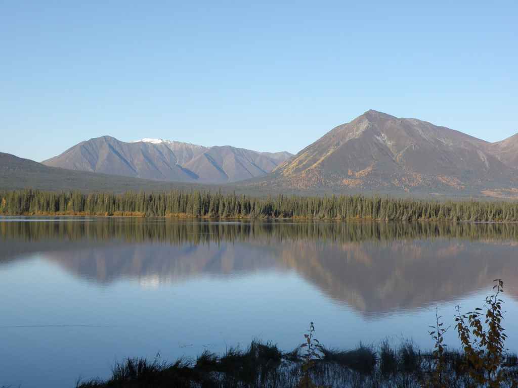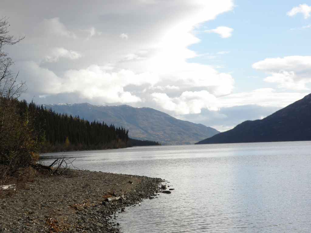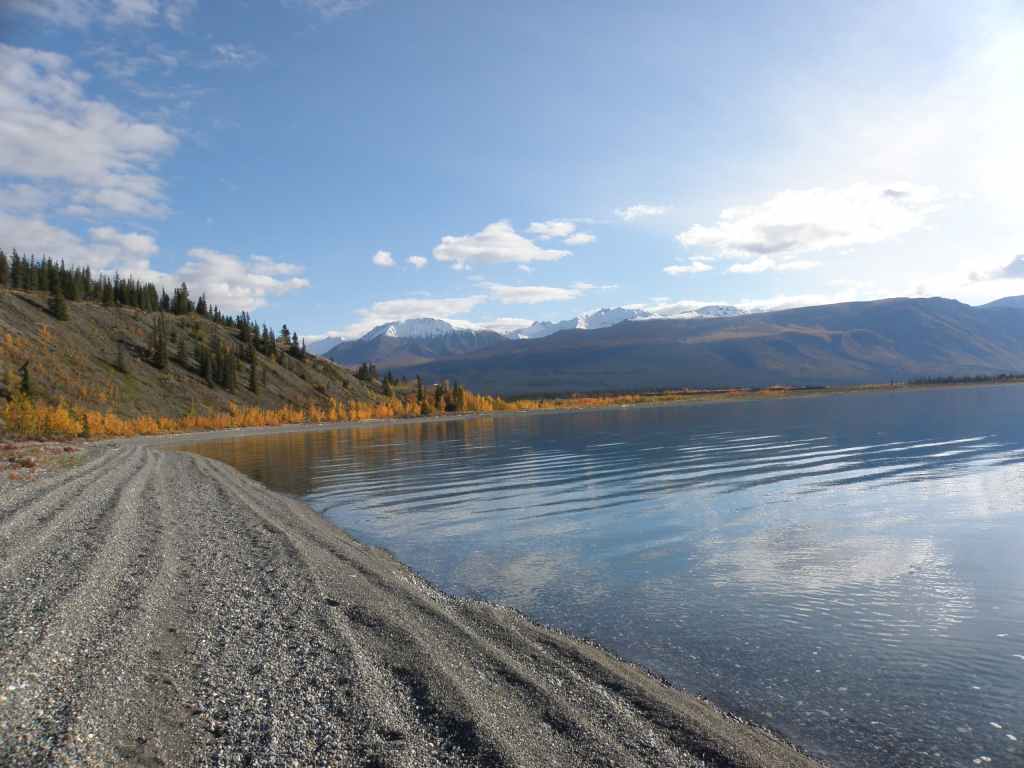 A la descente, on se fait une petite balade en forêt avant de reprendre la route en direction du lac de Kluane, le plus grand du Yukon (3 fois le lac Léman). On « visite » un ancien village de chercheurs d’argent, Silver City, puis sur un petit chemin chaotique, nous rejoignons le lieu de la rando du lendemain…