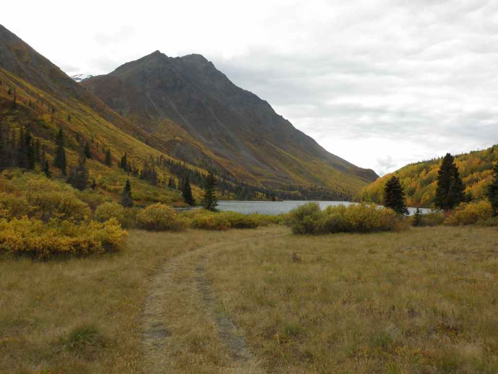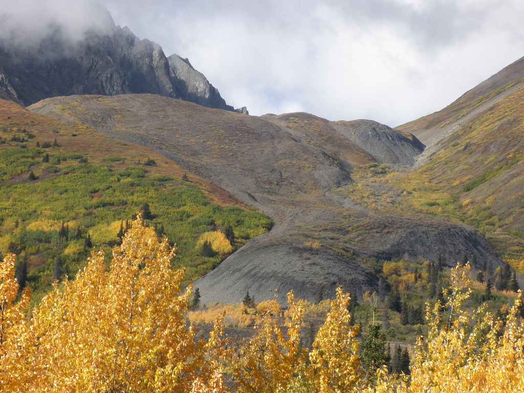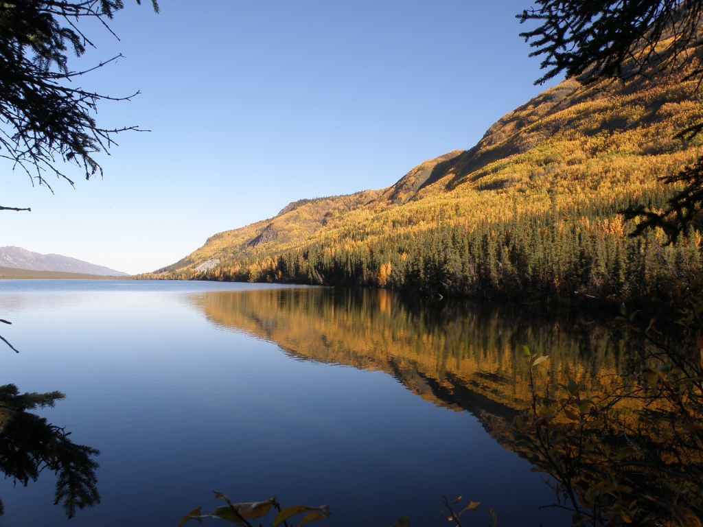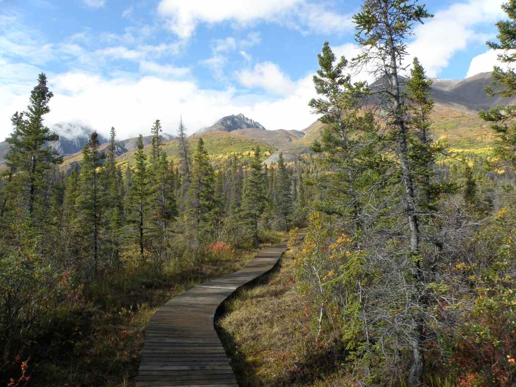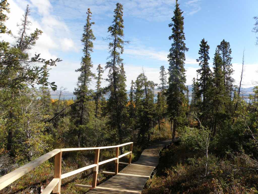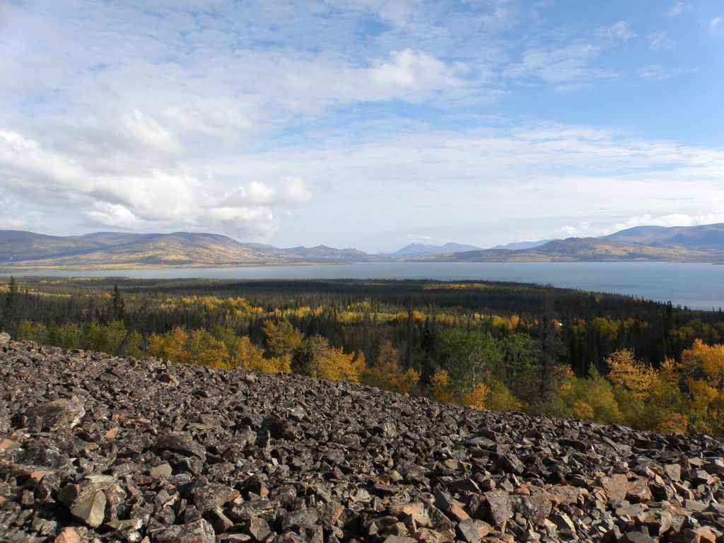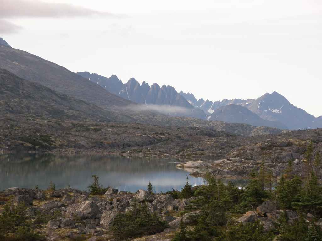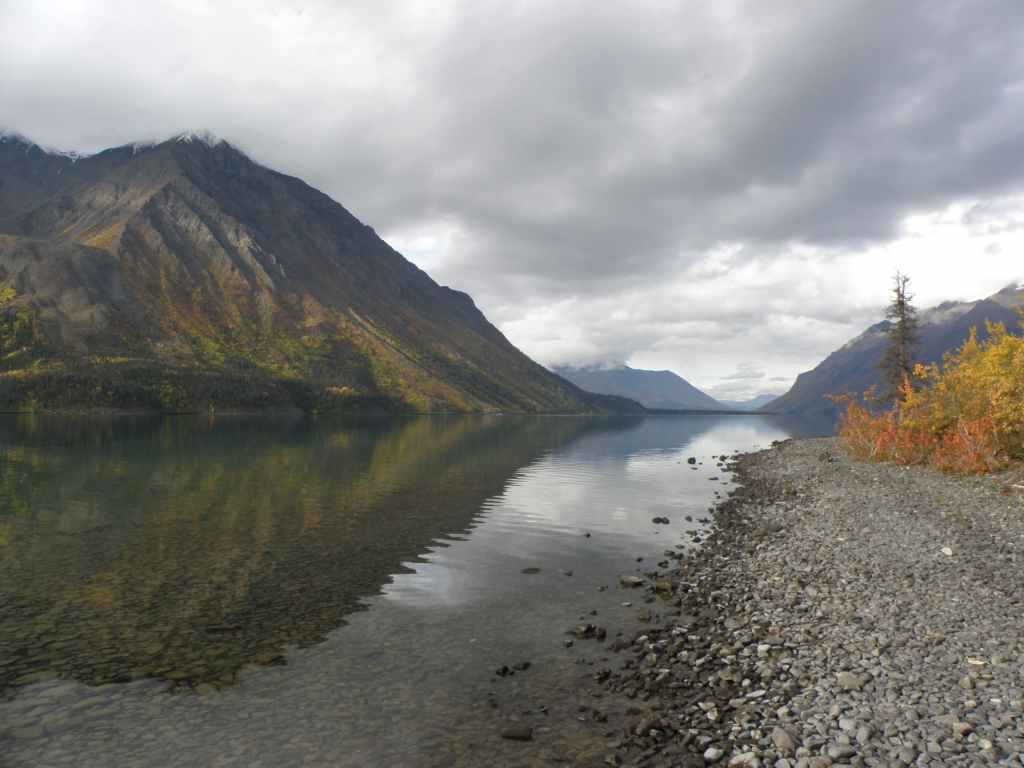 A la descente, on se fait une petite balade en forêt avant de reprendre la route en direction du lac de Kluane, le plus grand du Yukon (3 fois le lac Léman). On « visite » un ancien village de chercheurs d’argent, Silver City, puis sur un petit chemin chaotique, nous rejoignons le lieu de la rando du lendemain…