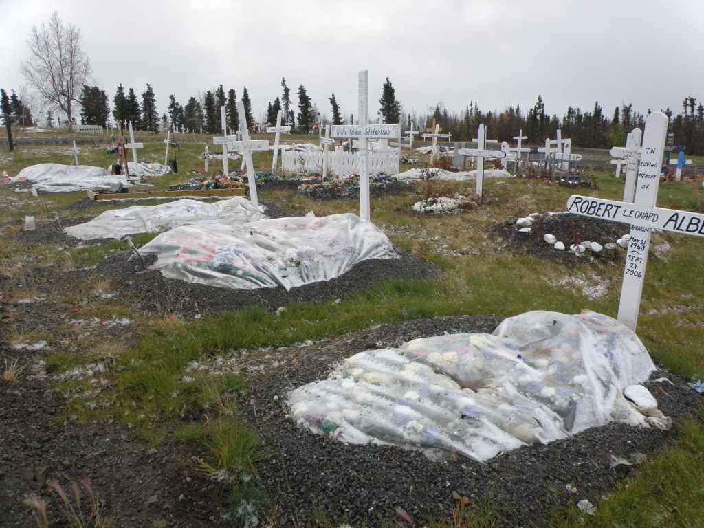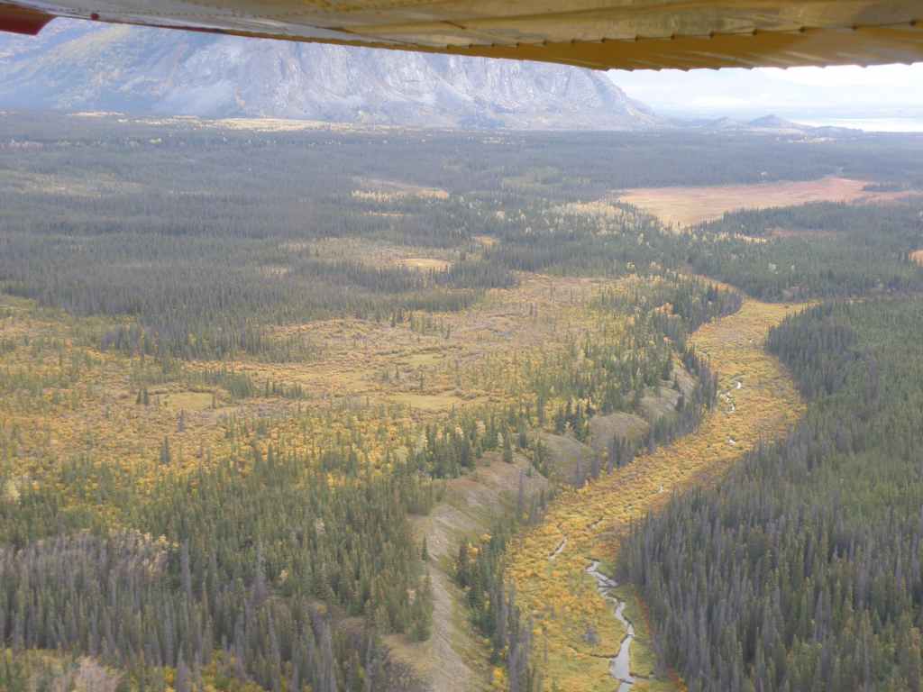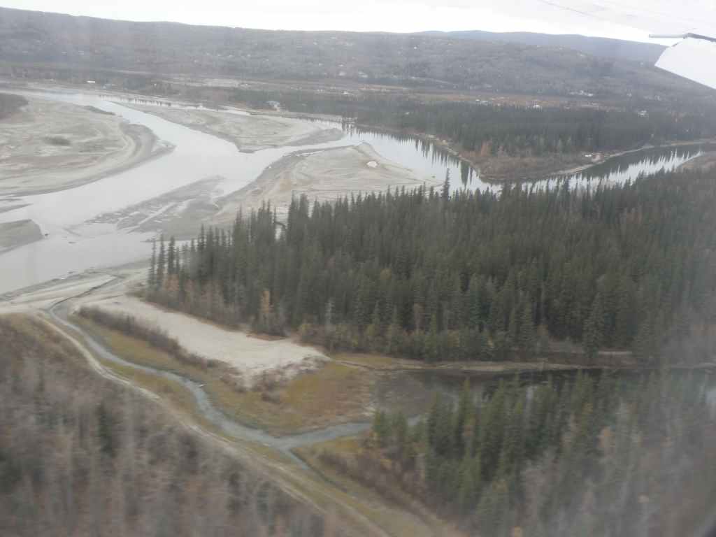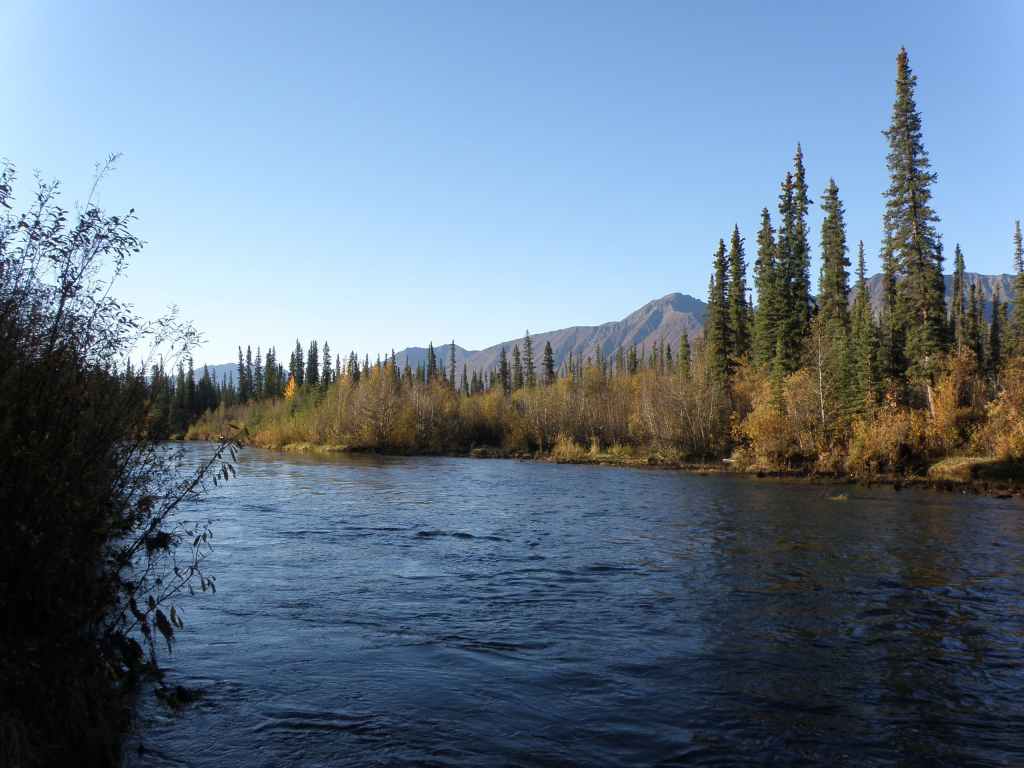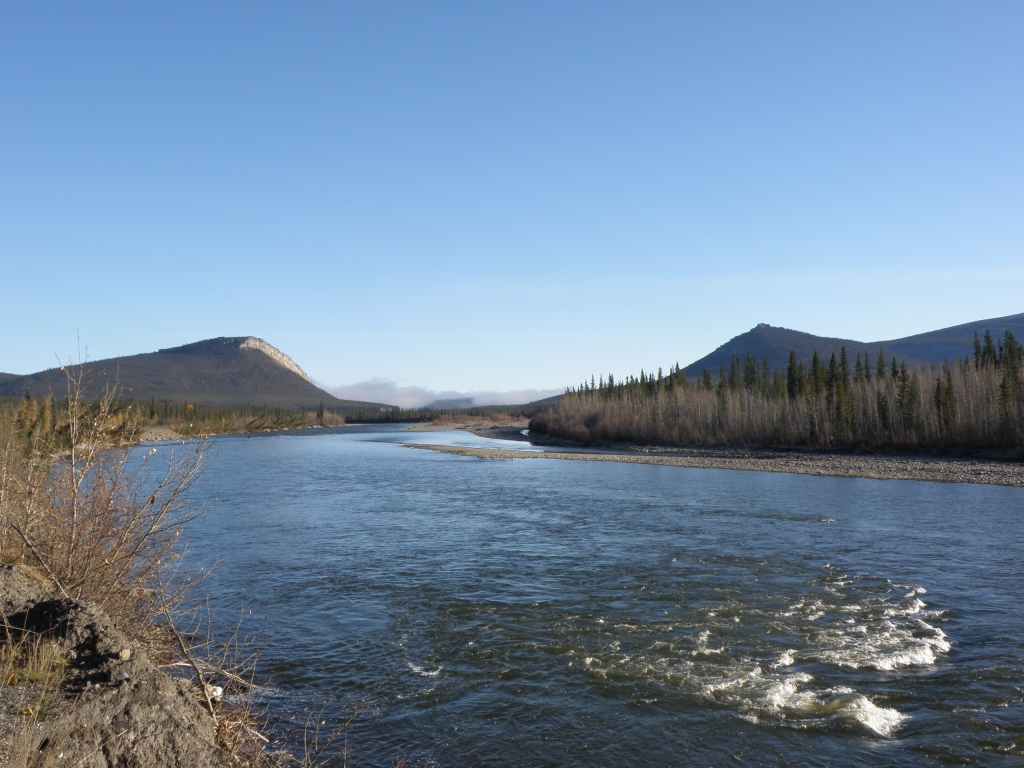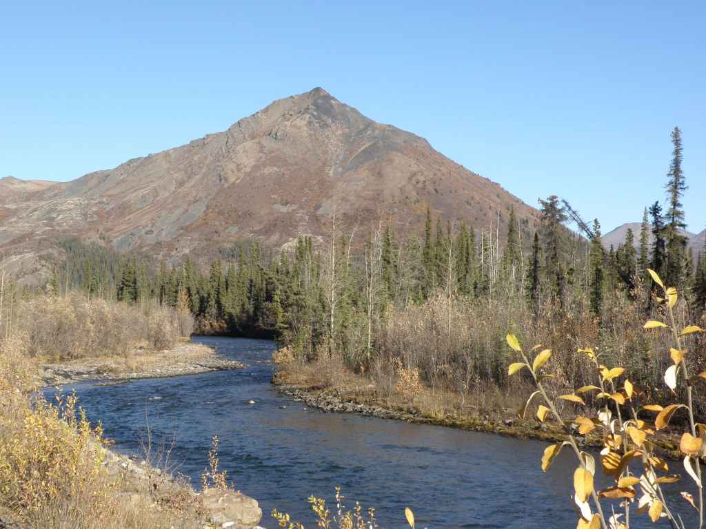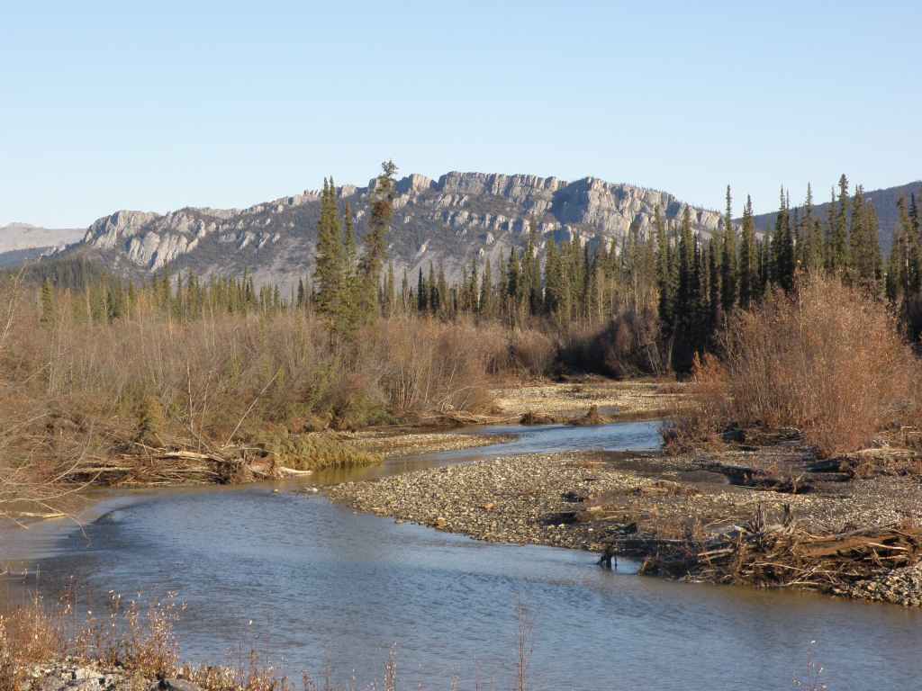 Les rayons du soleil embrasent le Yukon qui coule à côté de nous. 0°c ce matin et 5 cm de neige ! Mais elle disparait petit à petit au fil de la route et la température remonte à 7°C quand nous arrivons à Faro au terme de notre étape. Ici tout est fermé : la station d’essence a disparu ce qui risque de nous poser de sérieux problèmes pour continuer le lendemain. Après renseignement auprès de la police montée royale du village, nous trouvons quand même une petite épicerie ouverte le dimanche où l’on se ravitaille mais c’est le strict minimum…