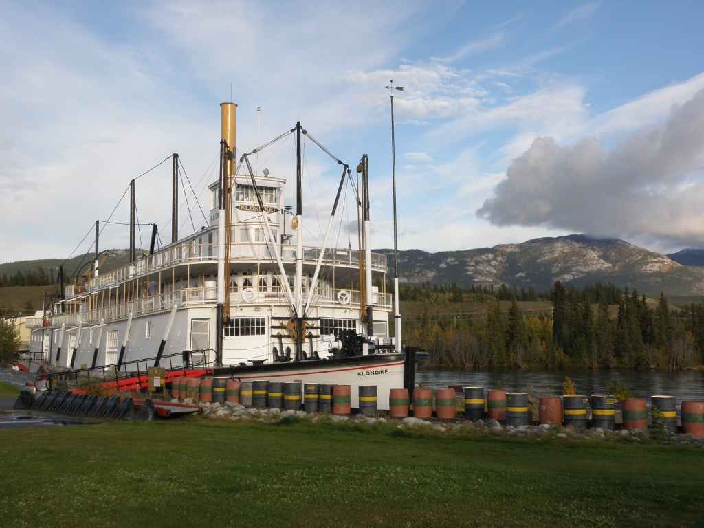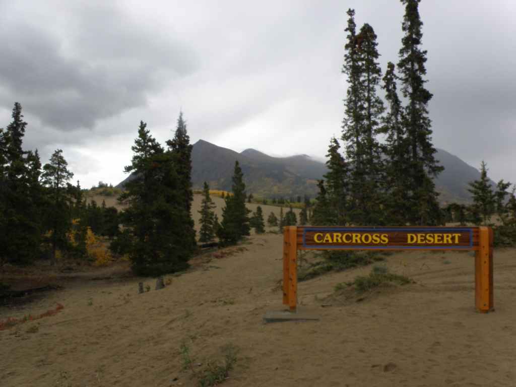 La ville est digne des villes du Far-West avec ses façades et ses trottoirs en bois, mais c’est surfait et très axé tourisme avec ses paquebots qui débarquent des milliers de personnes dans l’unique rue commerçante faite de magasins de souvenirs et de bijoux… Comme la météo n’est pas très favorable, et après une petite balade le long du Pacifique, nous décidons de rentrer sur Whitehorse le jour même en prenant le chemin inverse. Nous faisons un nouvel arrêt à Carcross pour visiter « le plus petit désert du monde ». Nous dormons sur un parking de la ville de Whitehorse.