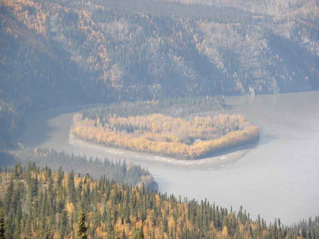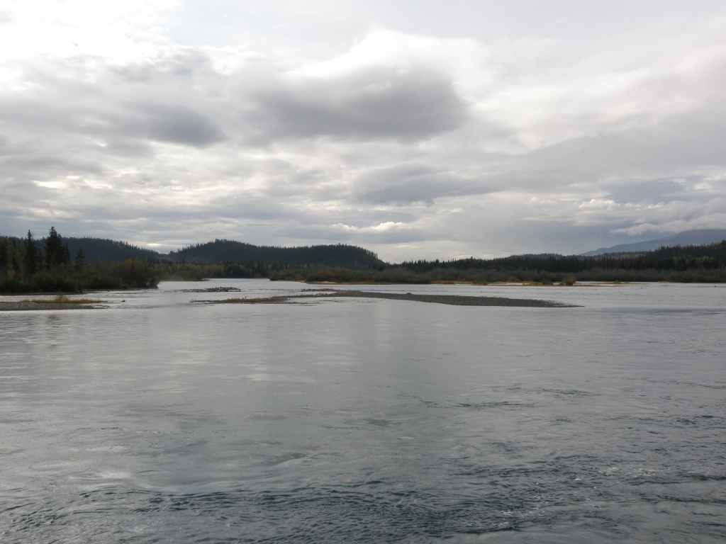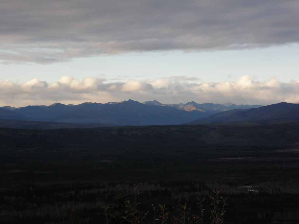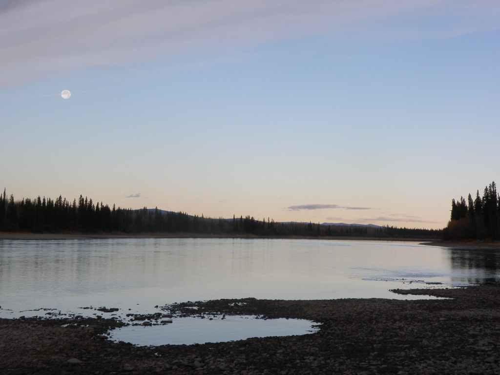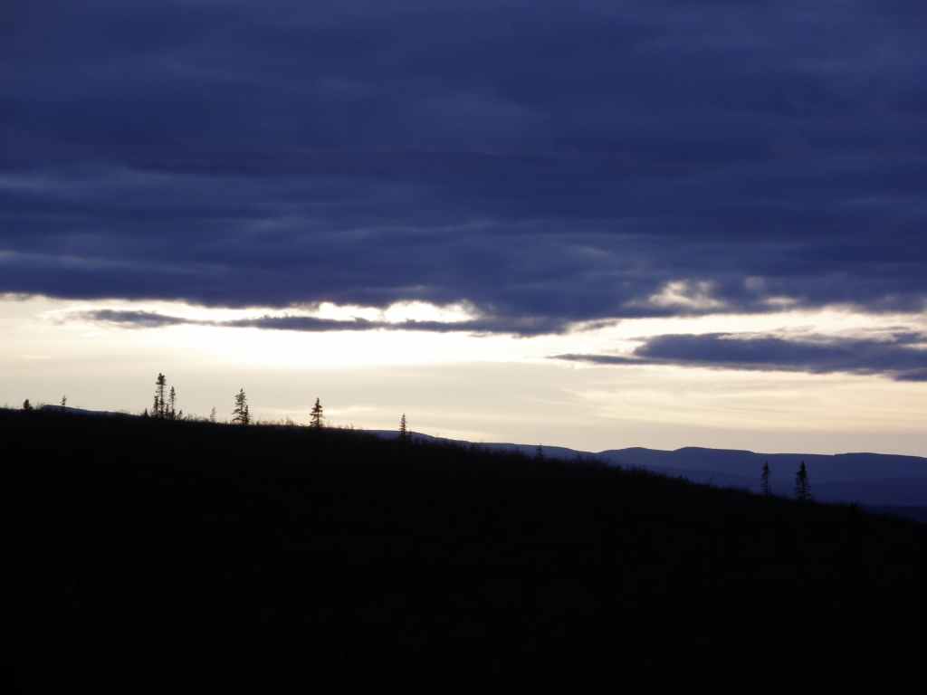 On reprend la Dempster Highway et on en sort vers 17h30. On remet un peu de gas-oil (cher) dans une station puis on reprend cette fois-ci la Klondike Highway vers l’est. Peu de temps après, une jeune femme nous fait de grands signes au bord de la route. Elle est en panne de batterie. Avec ses câbles, nous remettons son moteur en route et continuons notre chemin. Le jour diminue et là au bord de la route, 2 orignaux paissent au bord de la route. Pas le temps de saisir l’appareil photo… ils sont déjà dans la forêt. A la nuit tombante, nous nous installons à l’écart de la route sur un belvédère surplombant la rivière Stewart.
