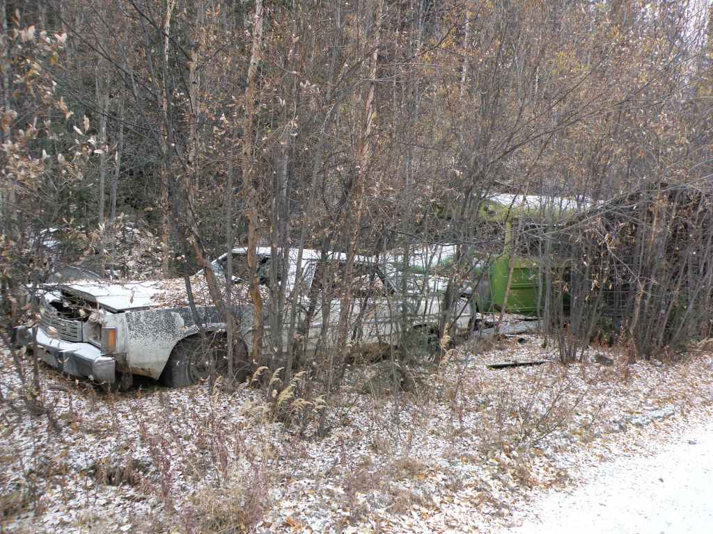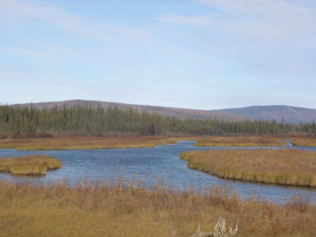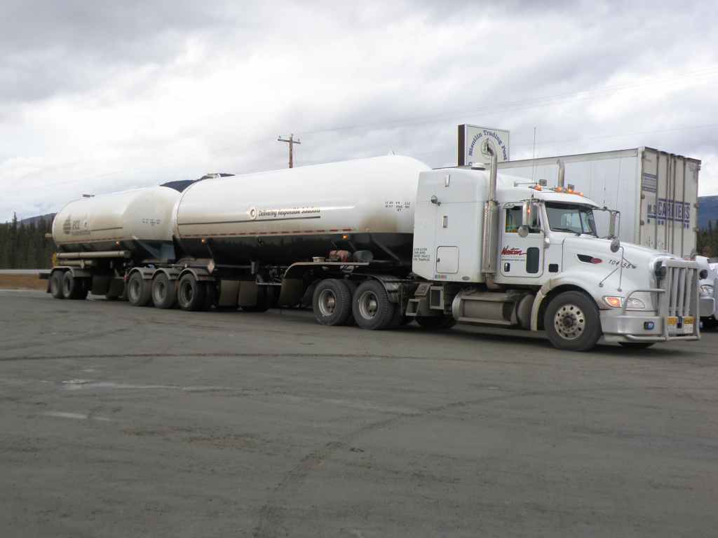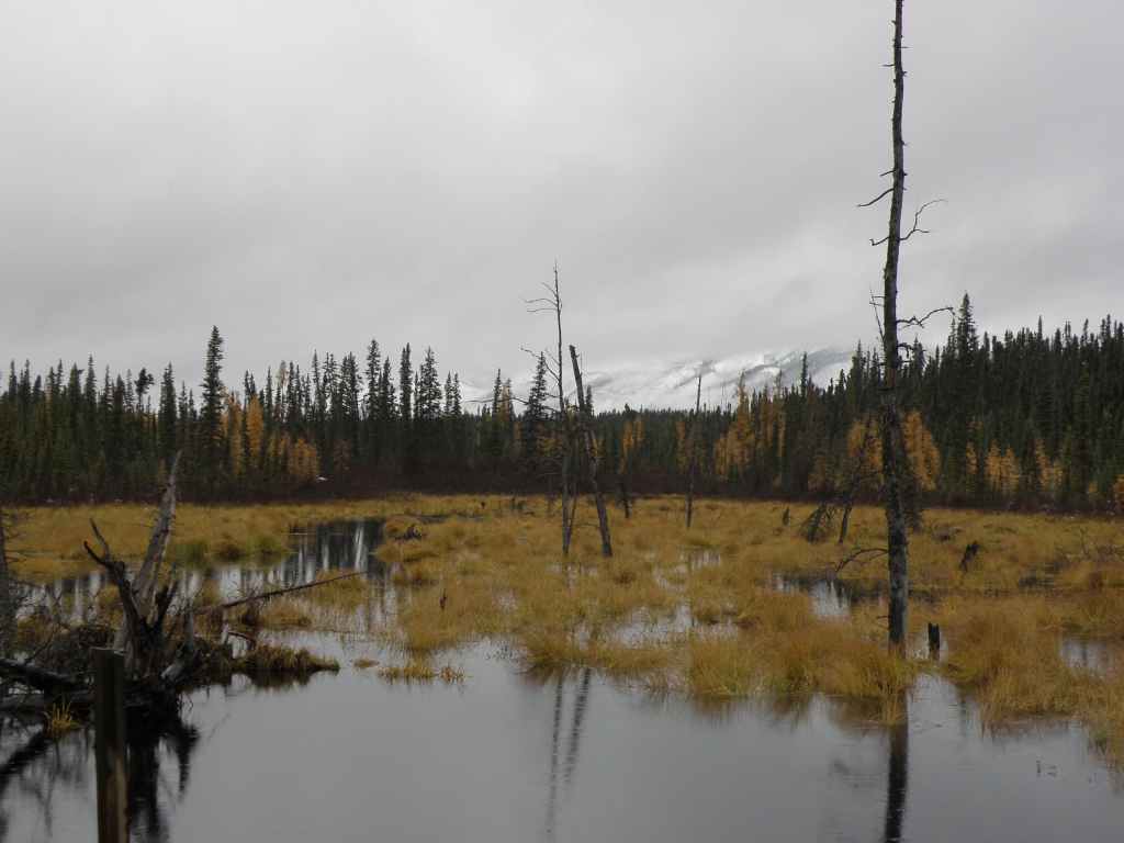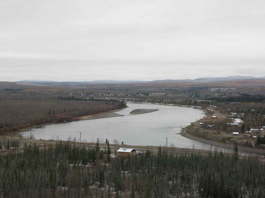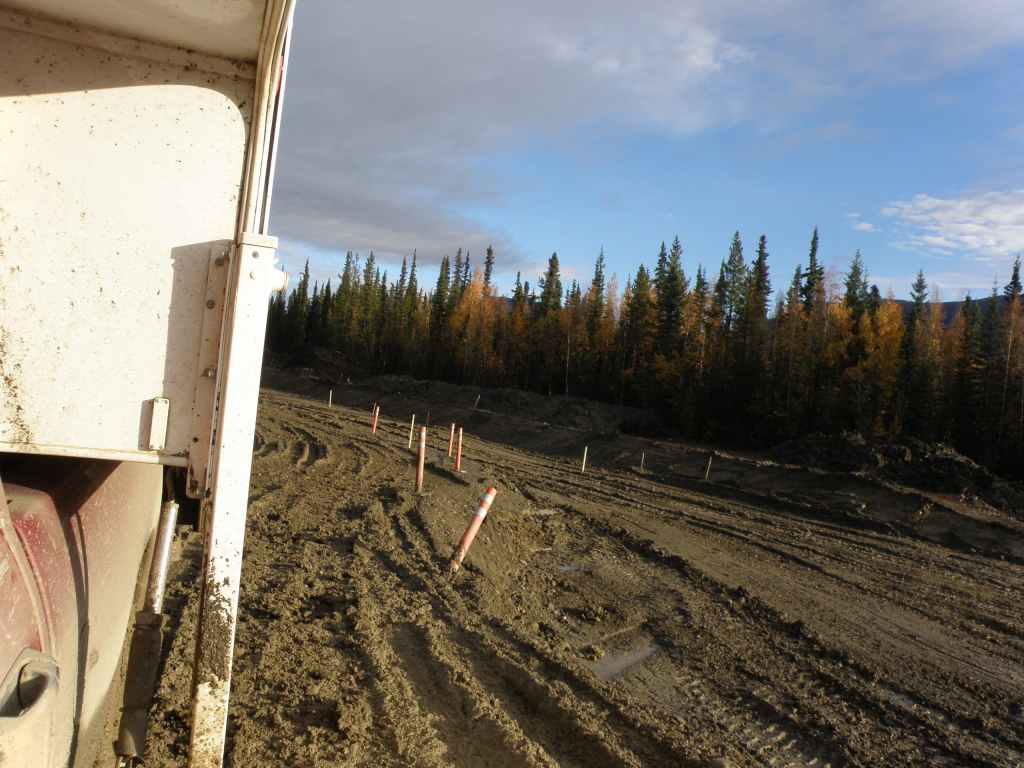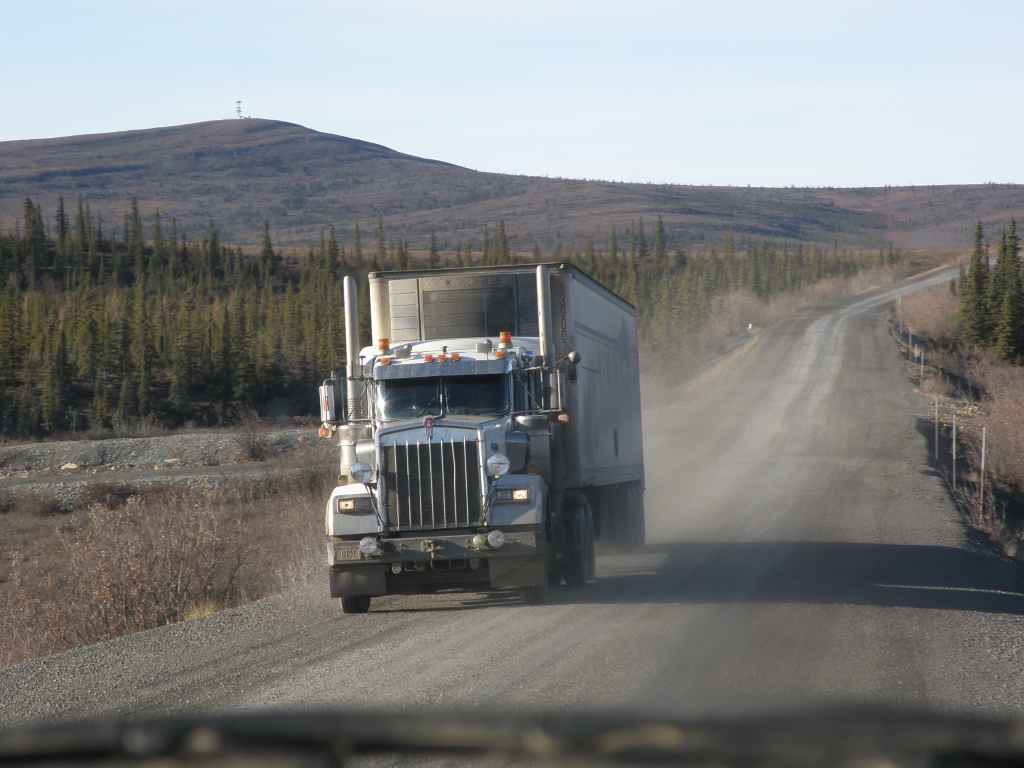 Plus que 20 puis 10 km… on avance toujours et enfin la pancarte du village, mais il nous faut trouver la station… ça y est, on y est !!! On remplit le réservoir avec 130 litres de GO. On peut donc repartir tranquille mais dans quelle direction ? On hésite… le chemin prévu et le plus court passe par la Canol Highway mais celle-ci n’est plus entretenue pour la saison par les services de l’Etat. Elle passe par la montagne et peut être enneigée. De plus la fréquentation est minimum. On tente sur une quinzaine de kilomètre et puis finalement, on rebrousse chemin…