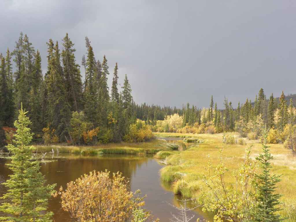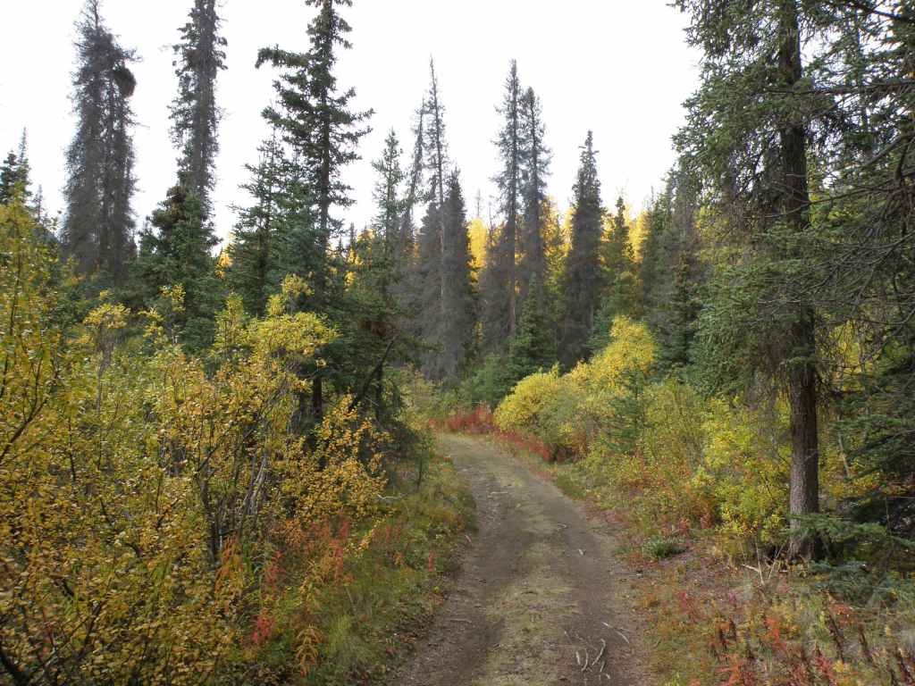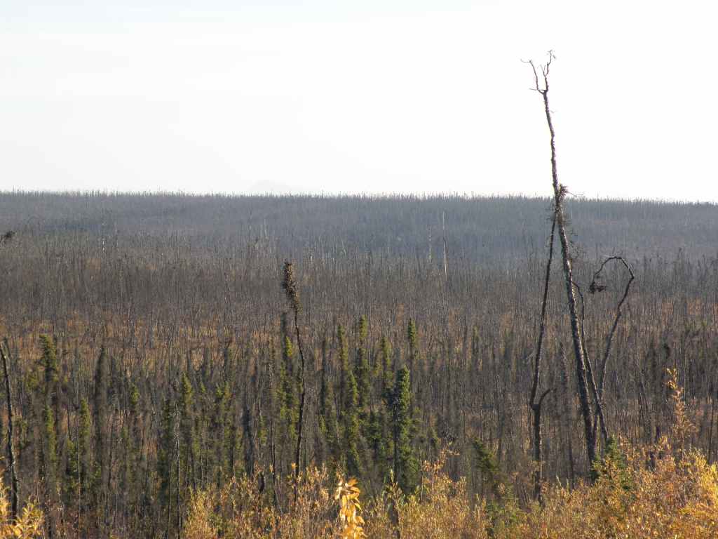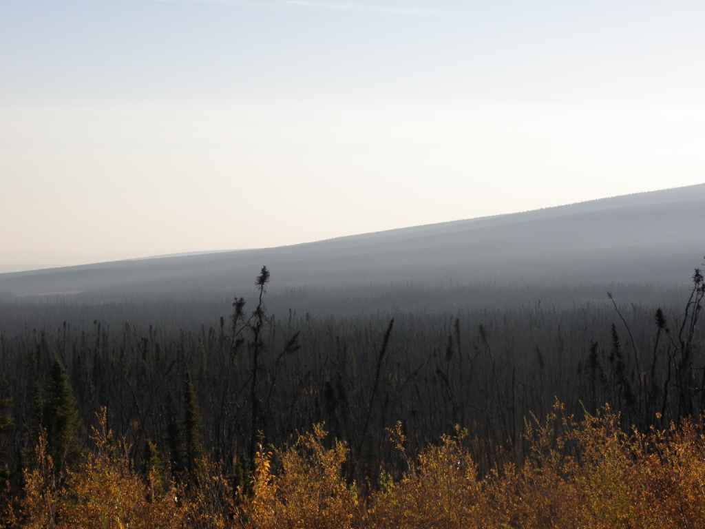 La météo est toujours très bonne malgré les -2°C. Pas d’orignal… Nous reprenons la route de la veille pour rejoindre la Taylor Highway qui nous ramène au Canada. En route, nous voyons beaucoup de chasseurs organisés en camps. Ils sont tous équipés de quads et partent chasser l’orignal et le caribou. Malheureusement, les forêts qui longent la route ont été dévastées par des incendies pour la plupart naturels (foudre). Au détour d’un virage, un joli renard roux nous regarde passer…