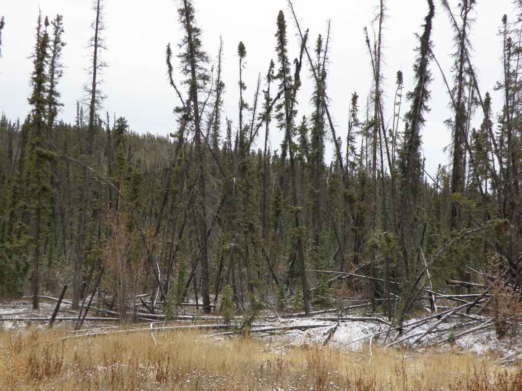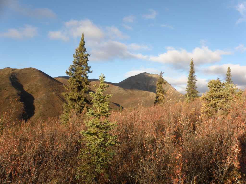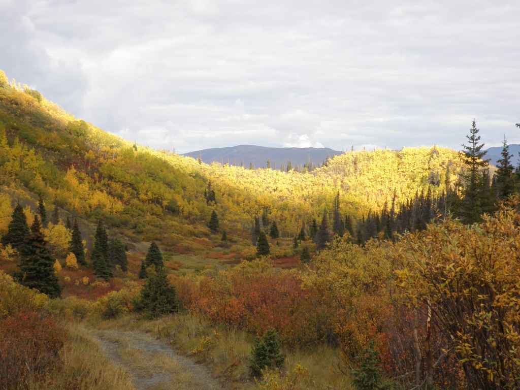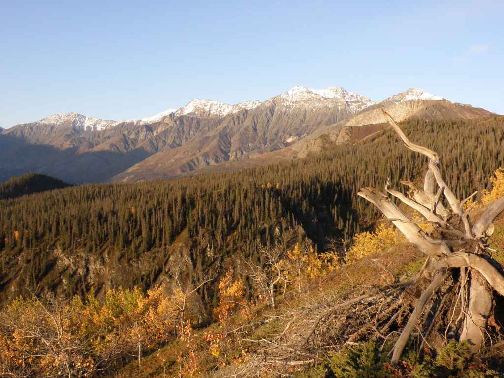La météo est toujours très bonne malgré les -2°C. Pas d’orignal… Nous reprenons la route de la veille pour rejoindre la Taylor Highway qui nous ramène au Canada. En route, nous voyons beaucoup de chasseurs organisés en camps. Ils sont tous équipés de quads et partent chasser l’orignal et le caribou. Malheureusement, les forêts qui longent la route ont été dévastées par des incendies pour la plupart naturels (foudre). Au détour d’un virage, un joli renard roux nous regarde passer…