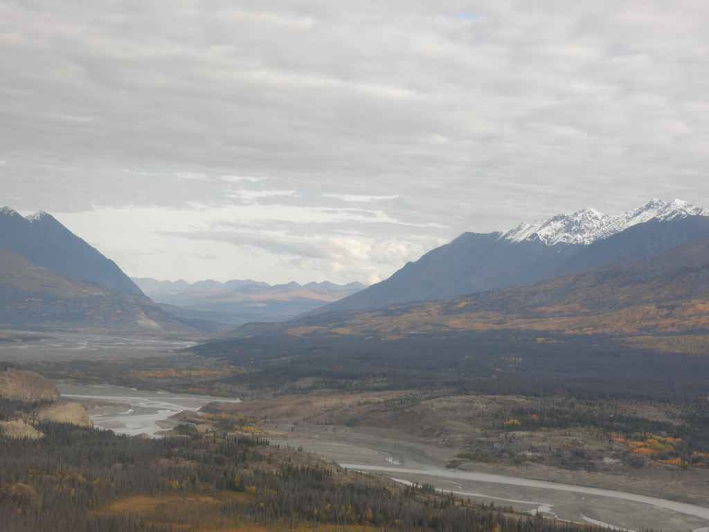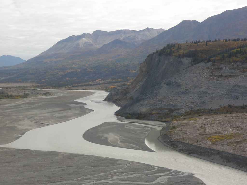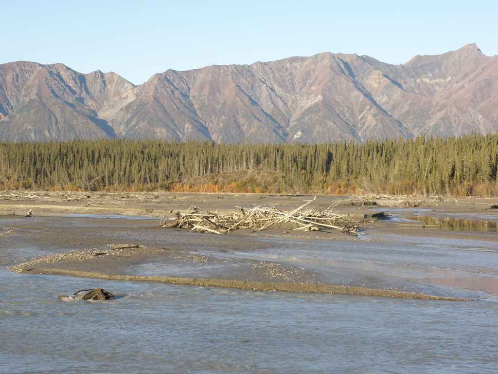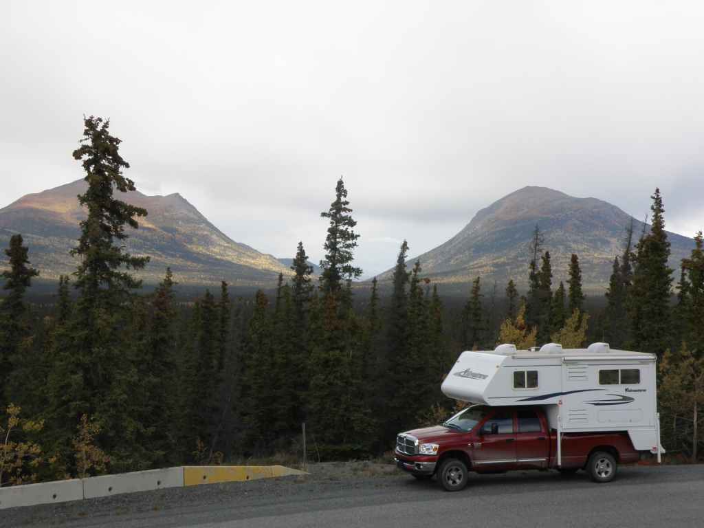 Nous reprenons la route de l’Alaska jusqu’à un belvédère de la rivière Kluane. Nous dormons sur un parking en bord de route, où nous sommes rejoints par un de ces gigantesques camping-car gros comme un bus. Et pour fabriquer son électricité, il fait tourner son moteur toute la soirée… super !