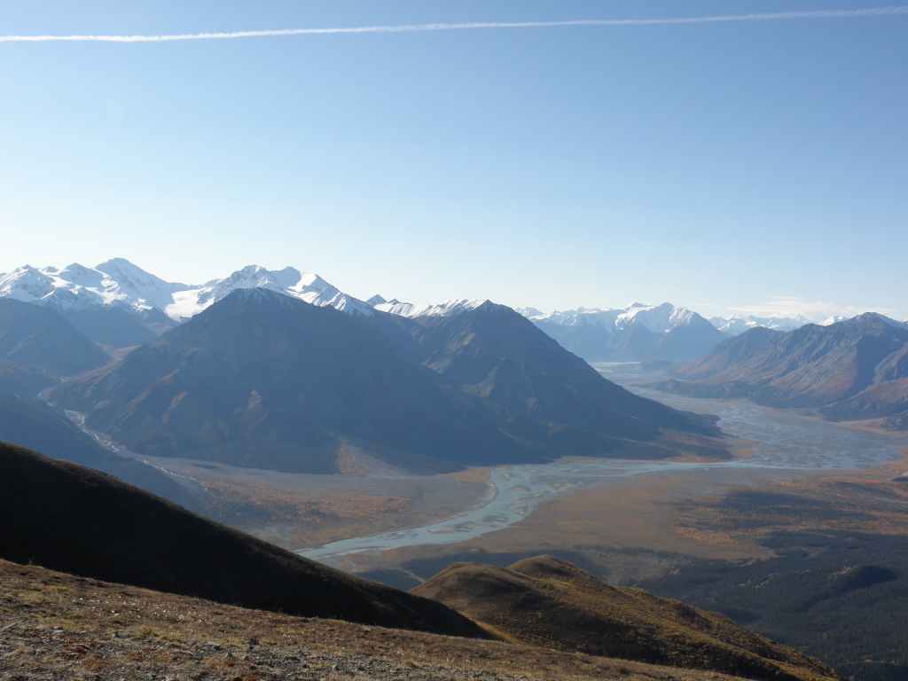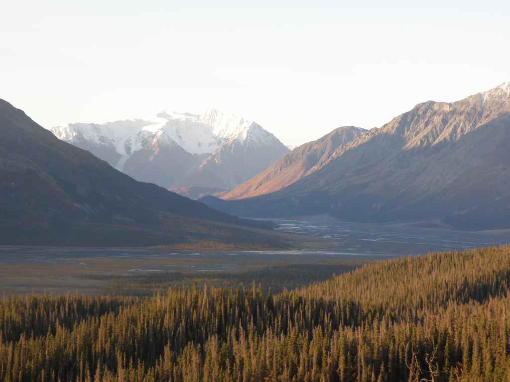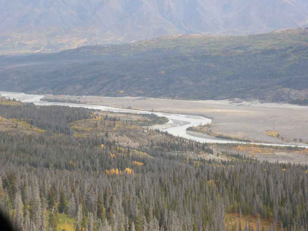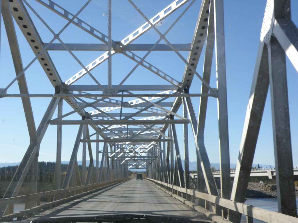 Nous reprenons la route de l’Alaska jusqu’à un belvédère de la rivière Kluane. Nous dormons sur un parking en bord de route, où nous sommes rejoints par un de ces gigantesques camping-car gros comme un bus. Et pour fabriquer son électricité, il fait tourner son moteur toute la soirée… super !