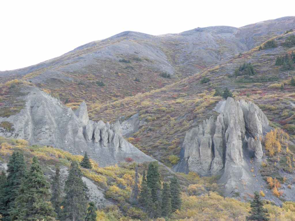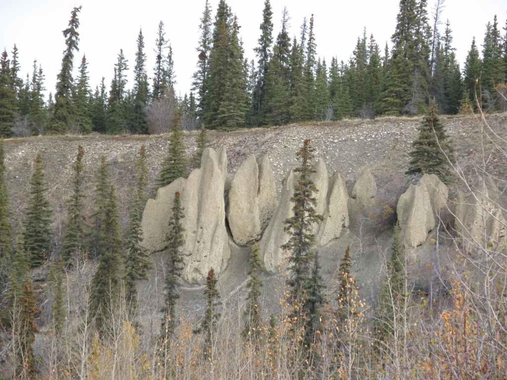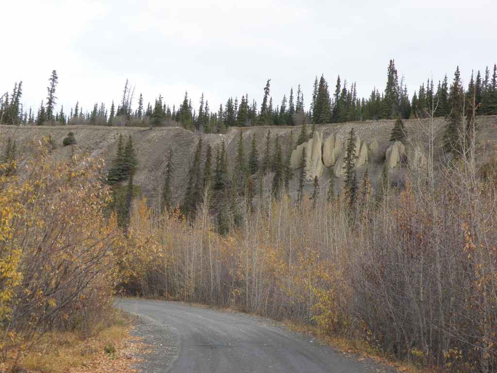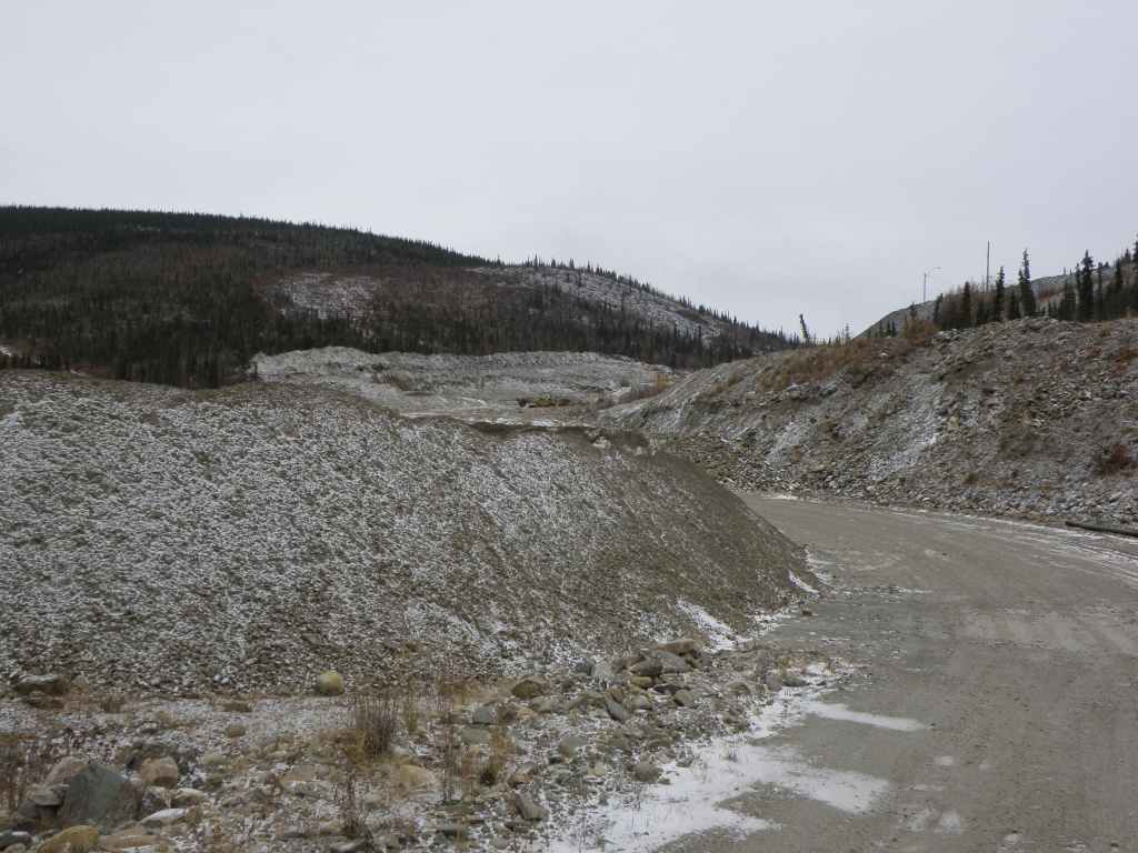 Temps hivernal avec -6°C le matin et -4°C l’après-midi. Petite balade en direction de mines puis nous repassons à Mayo pour rejoindre la Klondike Highway. Entre-temps un orignal femelle nous coupe la route puis c’est au tour d’un porc-épic…