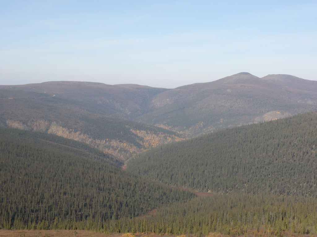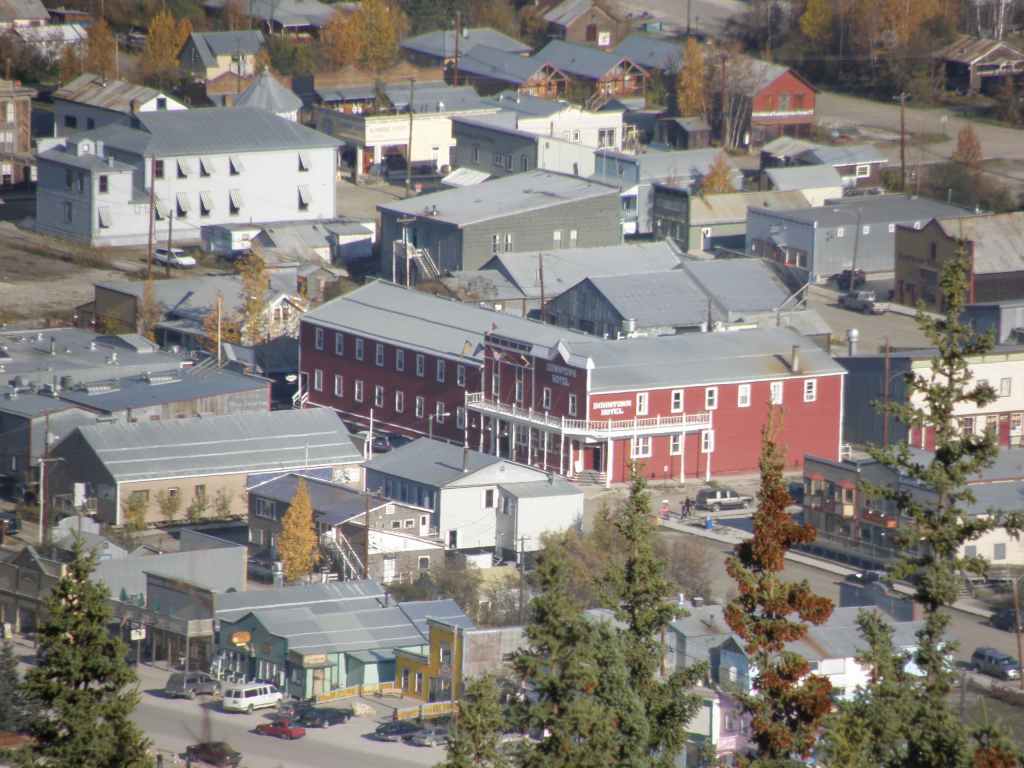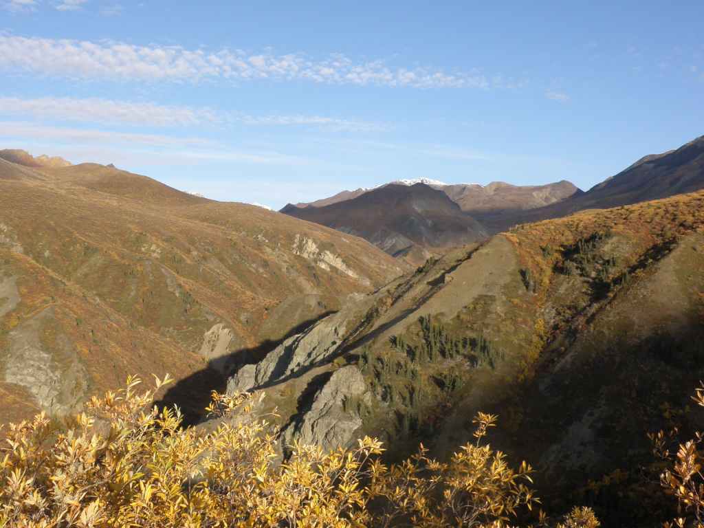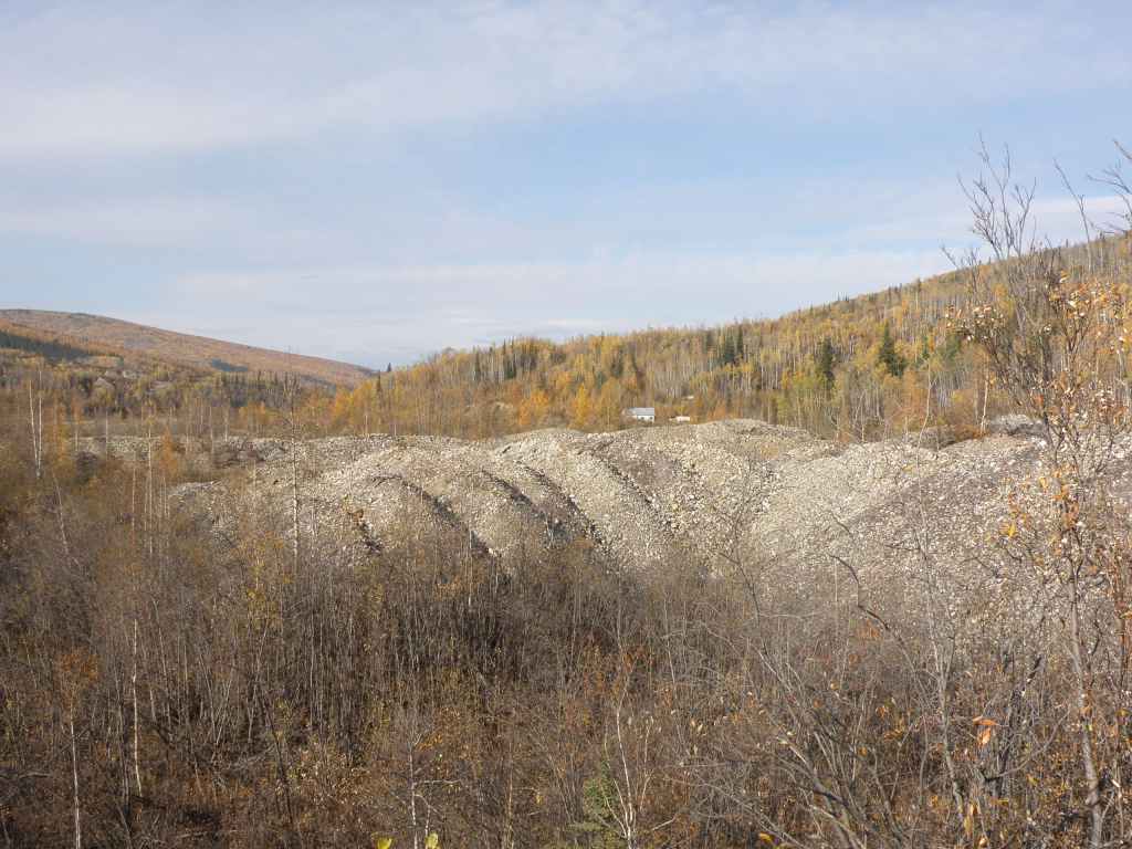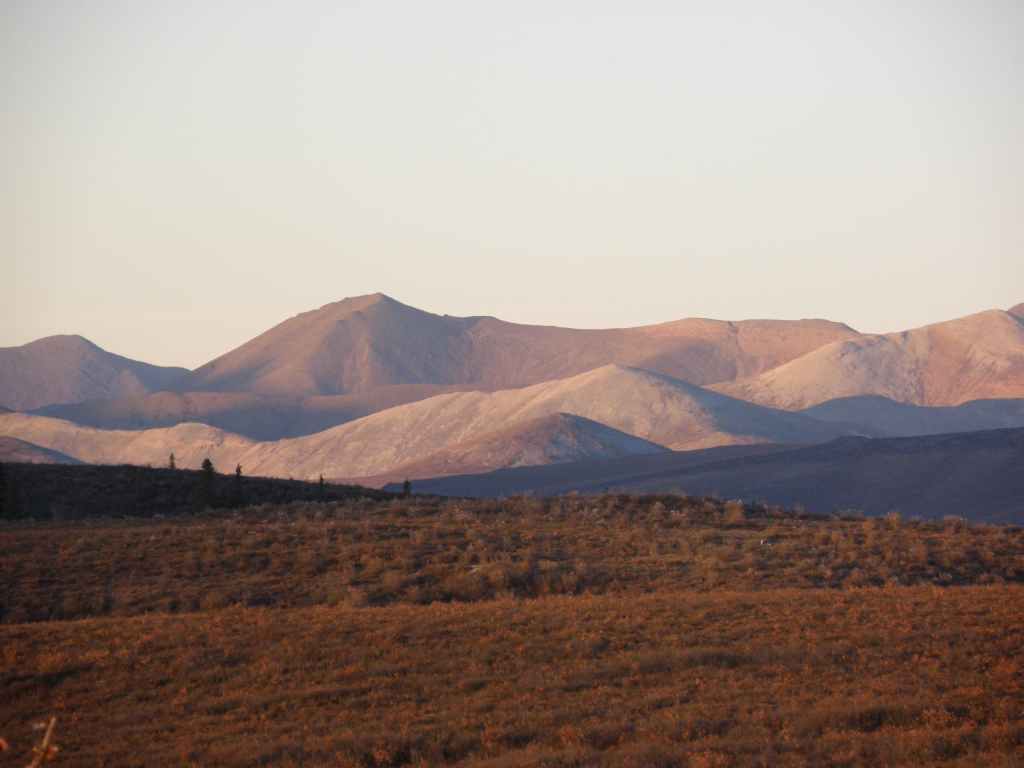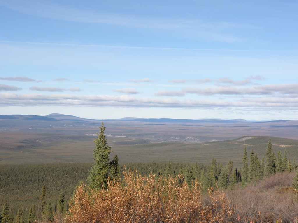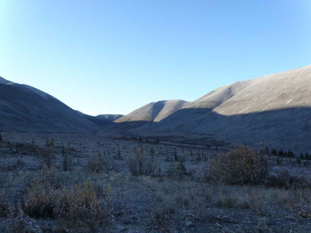 Pas de gel ce matin (1°C) mais toujours un soleil radieux. Après une visite de la ville en matinée (beaucoup plus authentique que Skagway) et quelques courses, nous partons voir la drague n°4. Celle-ci a détruit la vallée du ruisseau Bonanza afin de récupérer l’or qui s’y trouvait. La vallée offre un spectacle de désolation… Enfin, nous arrivons au croisement de la Dempster Highway.