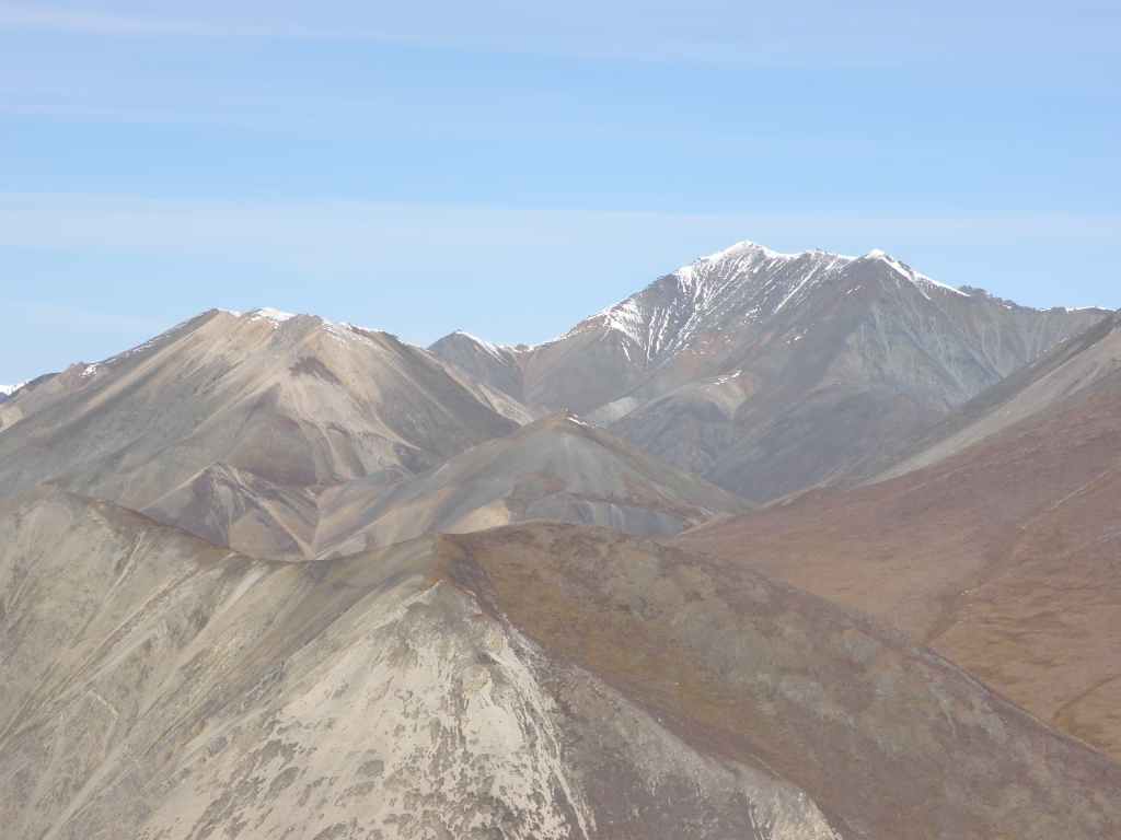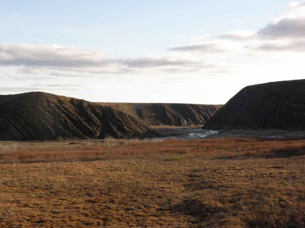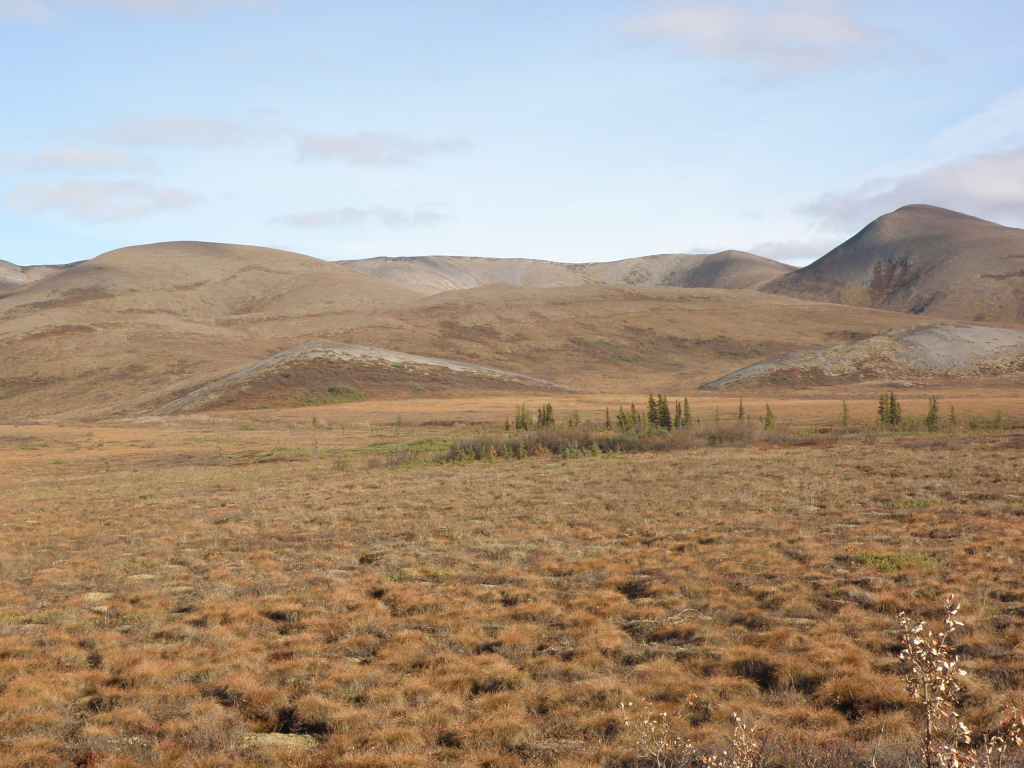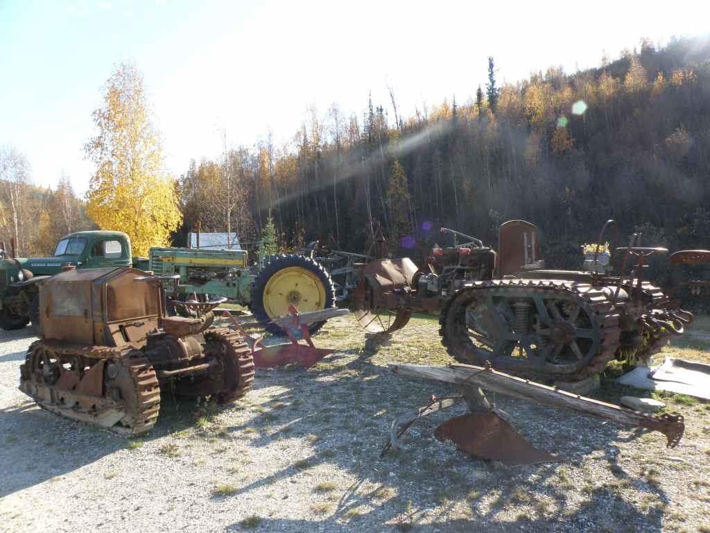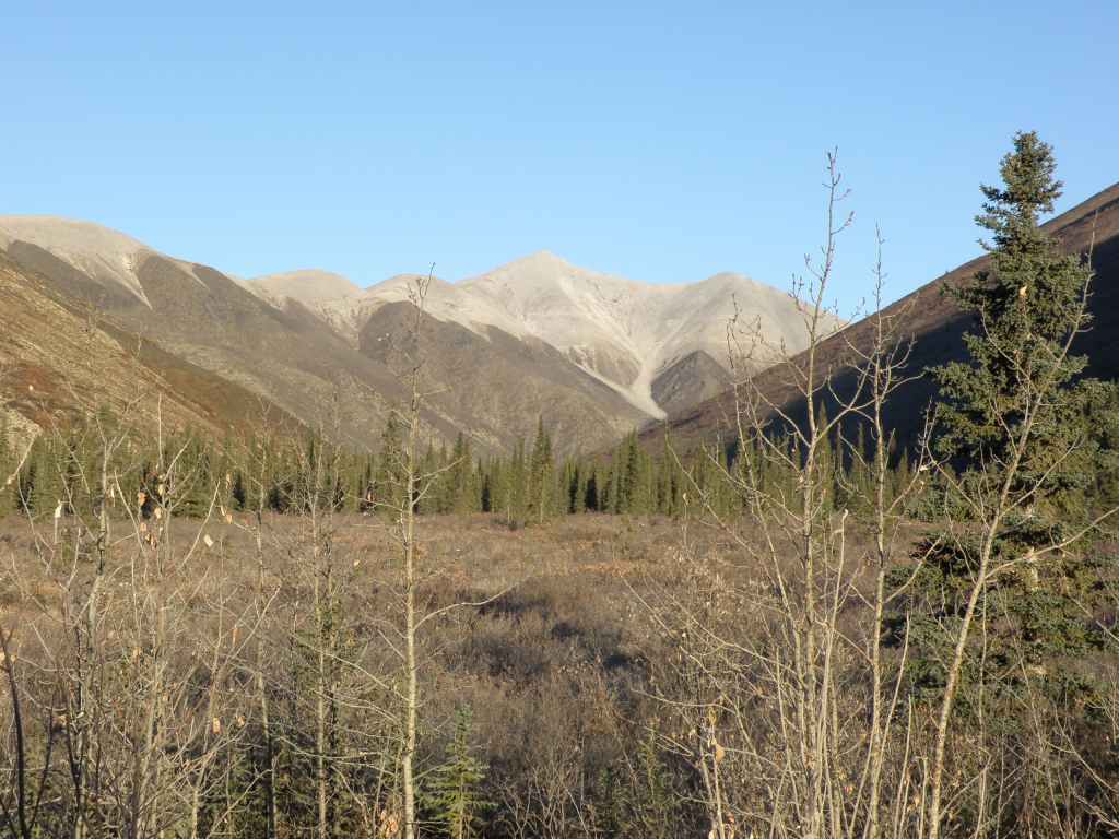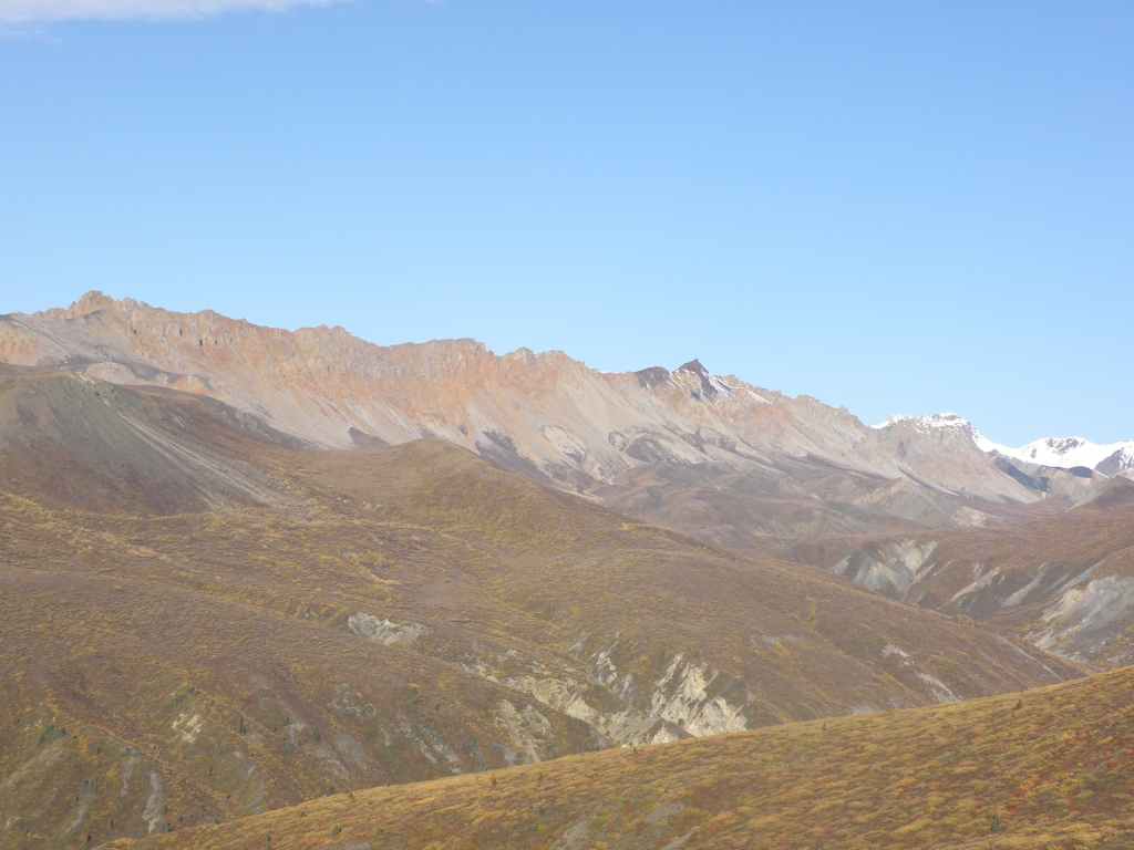 Pas de gel ce matin (1°C) mais toujours un soleil radieux. Après une visite de la ville en matinée (beaucoup plus authentique que Skagway) et quelques courses, nous partons voir la drague n°4. Celle-ci a détruit la vallée du ruisseau Bonanza afin de récupérer l’or qui s’y trouvait. La vallée offre un spectacle de désolation… Enfin, nous arrivons au croisement de la Dempster Highway.