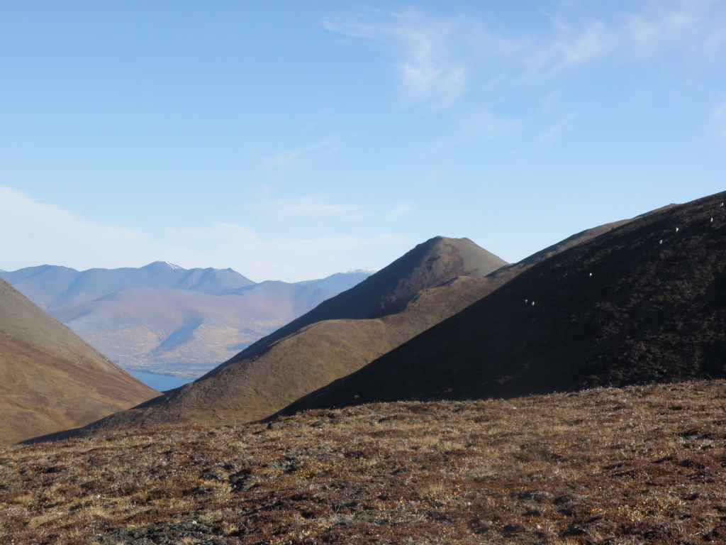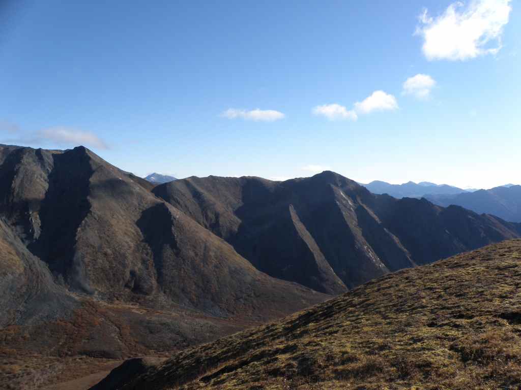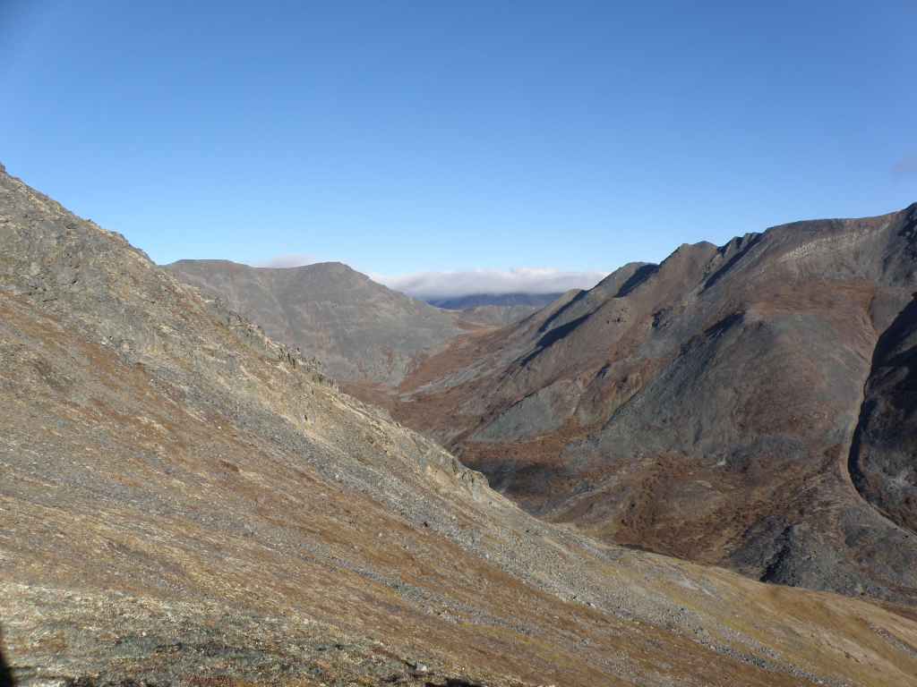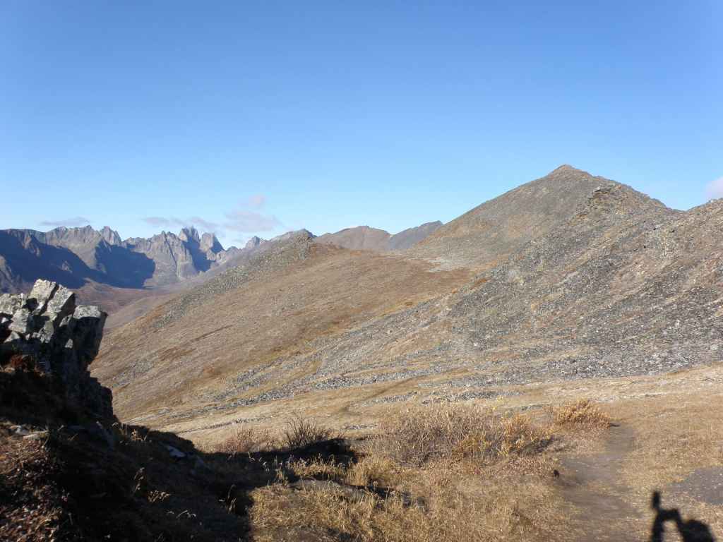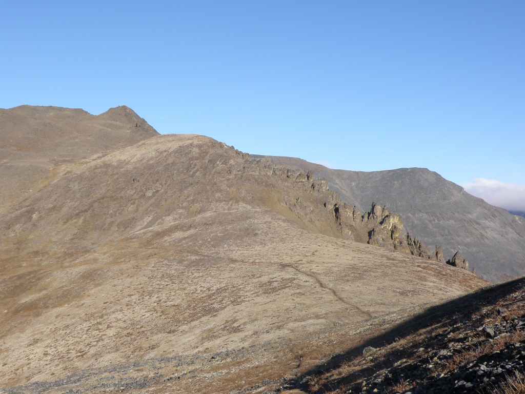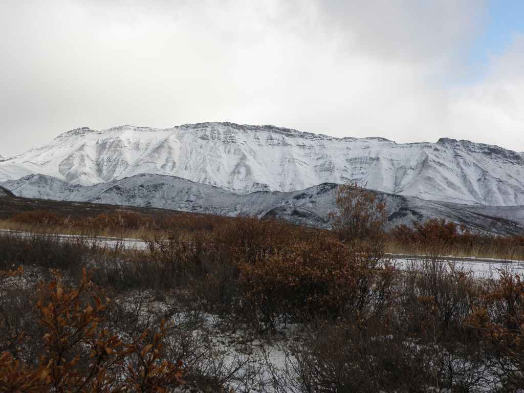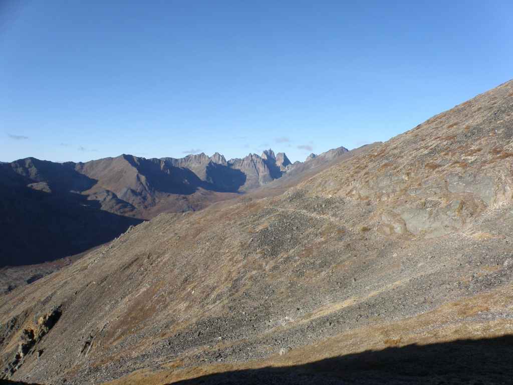 C’est toujours la douceur avec 1°C et le soleil est bien présent. La rando doit nous emmener en direction du lac Grizzly (pas très rassurant !). Grosse et longue montée sur une crête ronde et large. Les paysages sont sublimes et à 12h, nous stoppons car le lac est encore loin. Il est niché au milieu de pics acérés. Nous sommes de retour à 16h00.
