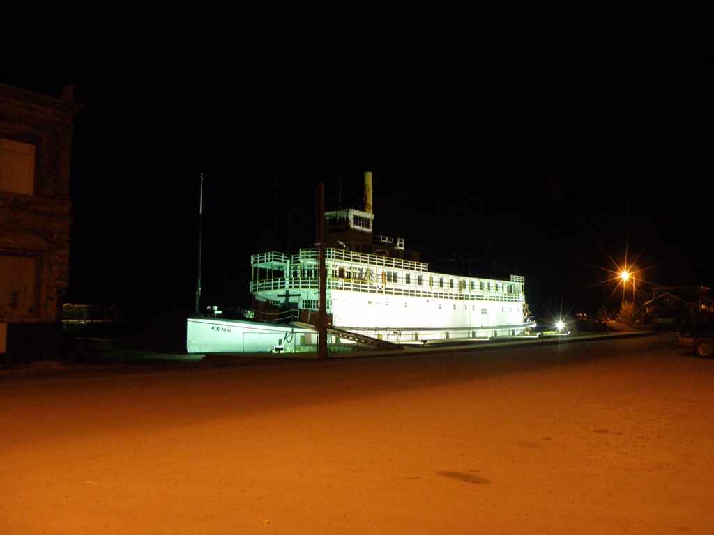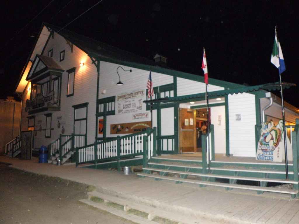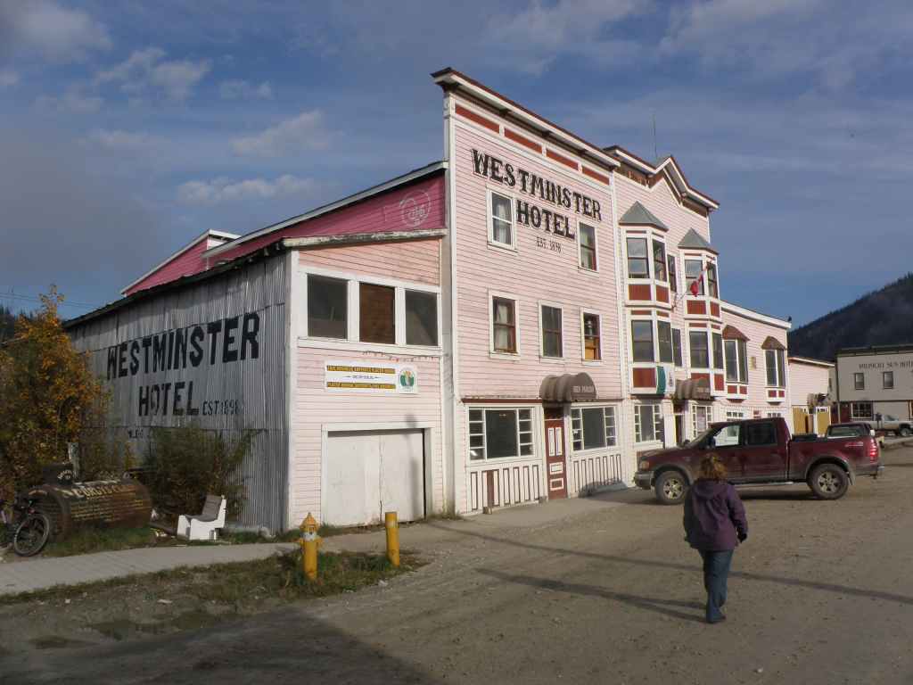 Cette longue piste nous permet de rejoindre le fleuve Yukon, que nous traversons avec un traversier, et la petite ville de Dawson City, probablement la plus jolie du Yukon. Petit repas dans un resto de l’époque de la ruée vers l’or, puis soirée spectacle au casino ! On rentre tardivement dans notre mini maison où nous avons mis notre lessive du jour à sécher…
