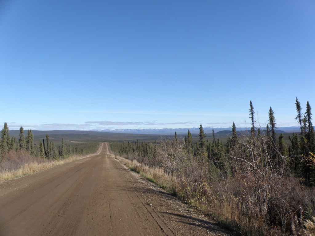 Cette piste de 1500 km aller / retour constitue un voyage à part entière. D’ailleurs les locaux nous disent : « have a nice trip » soit « faites un bon voyage ! ». Elle mène à Inuvik, ville des Territoires du Nord-Ouest qui se situe au-delà du cercle arctique et à 200 km au sud de l’océan Arctique. Elle traverse une variété de paysages tous aussi grandioses que sauvages et la neige peut y être présente à cette époque. Nous avons du ravitaillement pour 4 jours.