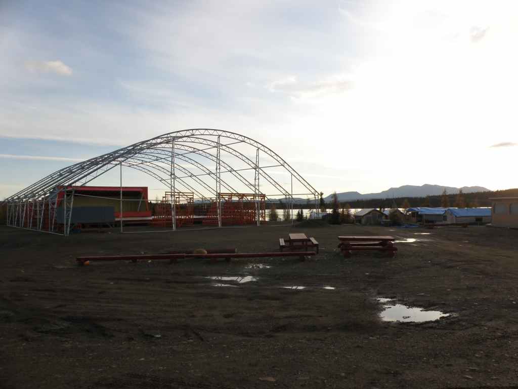 Tous les campings et offices de tourisme sont fermés. Nous sommes dans l’impossibilité de ravitailler le véhicule en eau et vidanger les réservoirs d’eaux sales. Nous nous renseignons dans une station essence et un client nous invite à le suivre jusqu’à une « dump station » pour vidanger. Il nous dit de le suivre jusque chez lui pour ravitailler en eau. Il est propriétaire d’un lodge et nous propose de s’installer sur son terrain… moyennant finance… C’est Olaf, un norvégien marié à une suissesse allemande. Ils ont du personnel québécois, irlandais et australien pour s’occuper d’une cinquantaine de chiens de traineau.