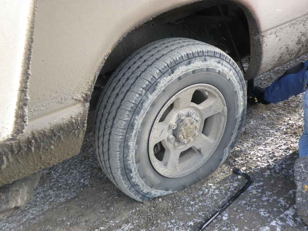 Et miracle, la voiture ne pose plus de problème, c’est une belle journée qui s’annonce ! Ça ne dure qu’un temps puisque vers 11h, un bruit bizarre apparait… crevaison à l’arrière droit. Alors on cherche le cric quelques temps avant d’essayer de l’installer sous la voiture. Mais ce n’est pas comme chez nous. Je le place sous le châssis mais il ne lève pas assez haut et la roue touche toujours le sol. Alors on trouve un caillou plat que l’on place sous le cric et c’est reparti mais toujours pas assez haut ! Et enfin une voiture s’arrête : il s’agit de touristes allemands. Et c’est la fille du couple qui trouve la solution pour que le cric fonctionne… la honte pour les mecs !